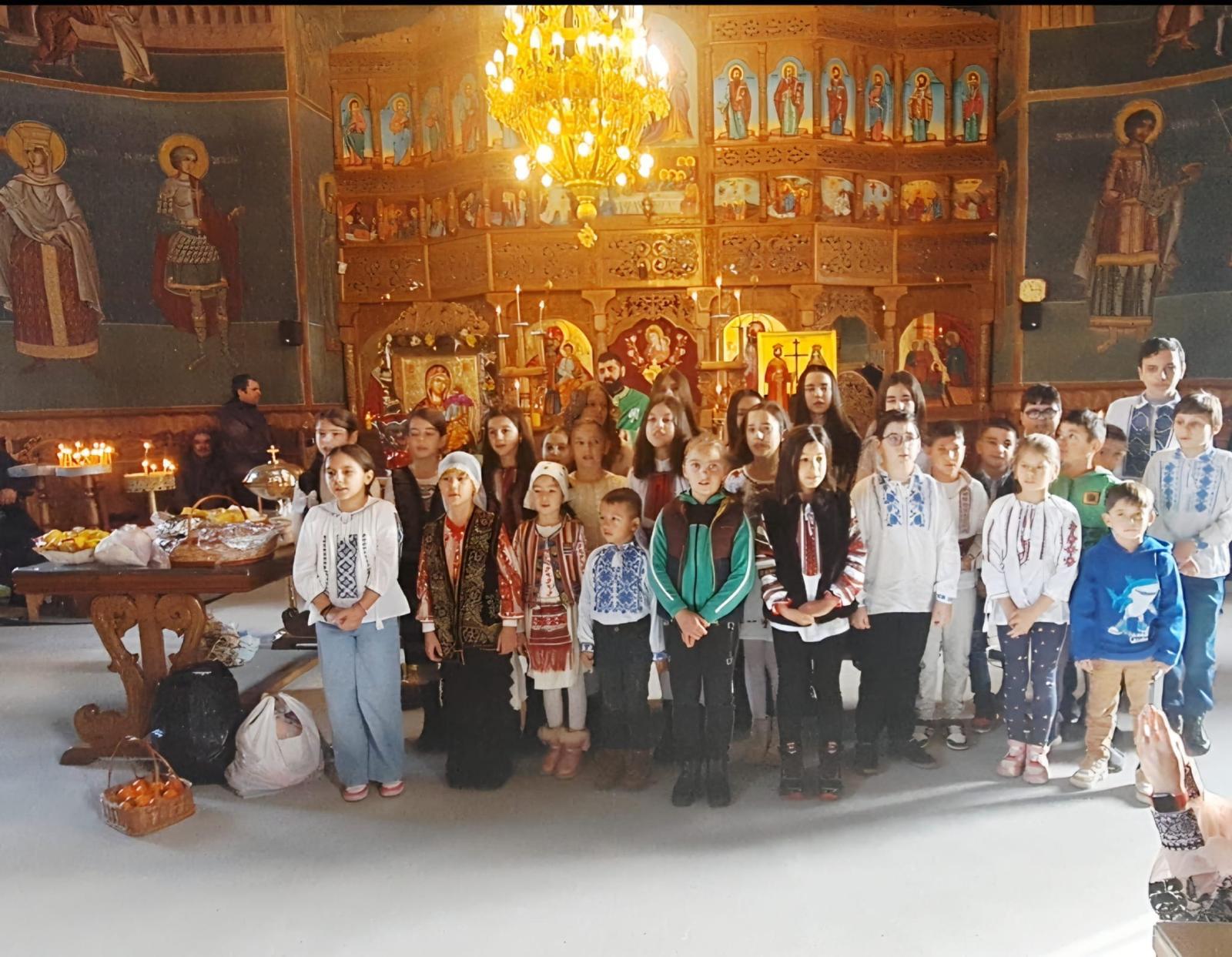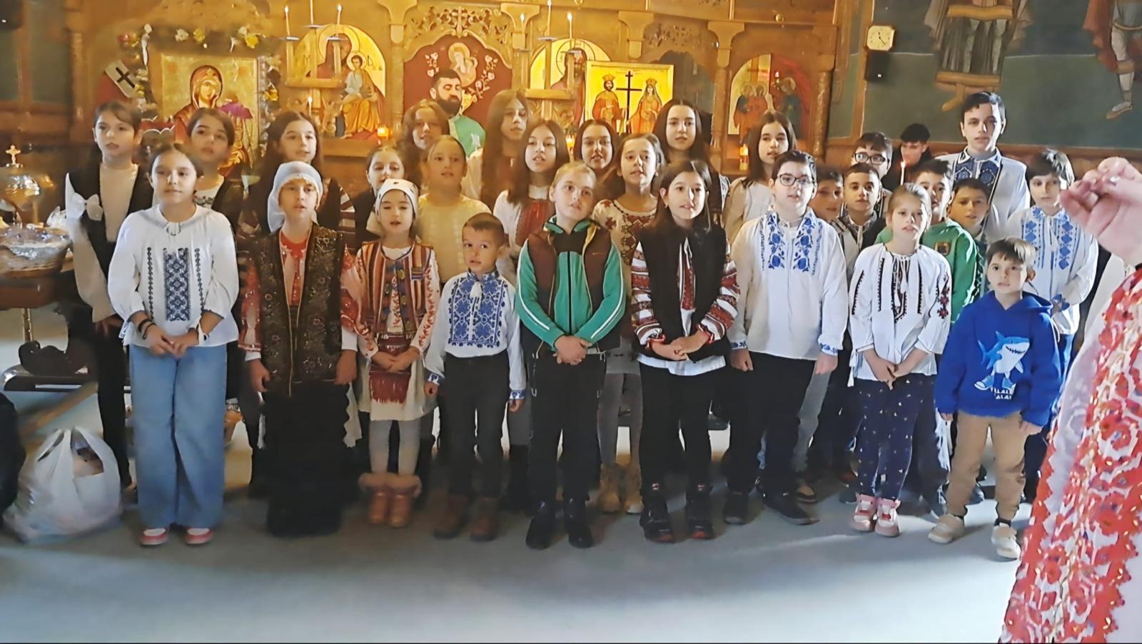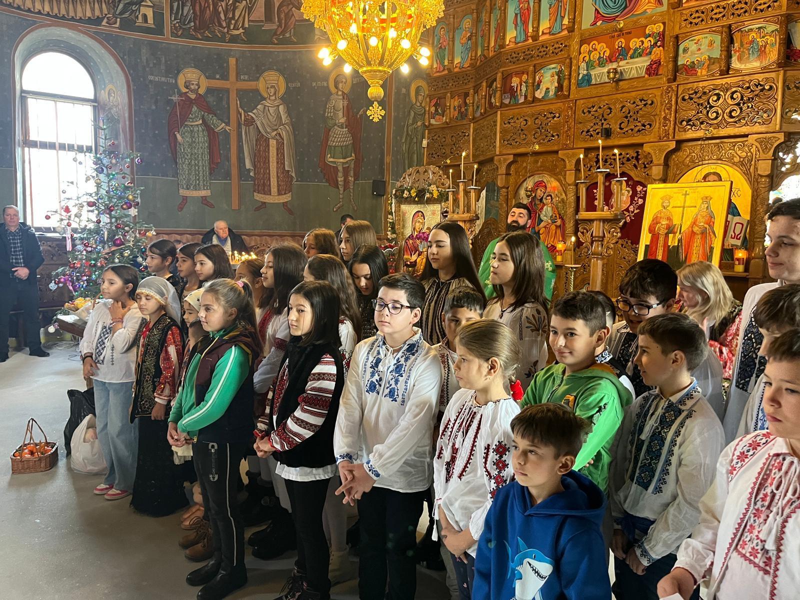 Grupuri de colindători au vestit Nașterea Domnului, iar părintele slujitor Drăgușin Iustinian a mulțumit pentru frumoasele colinde, în final fiind oferite colindețe, după datina străbună.