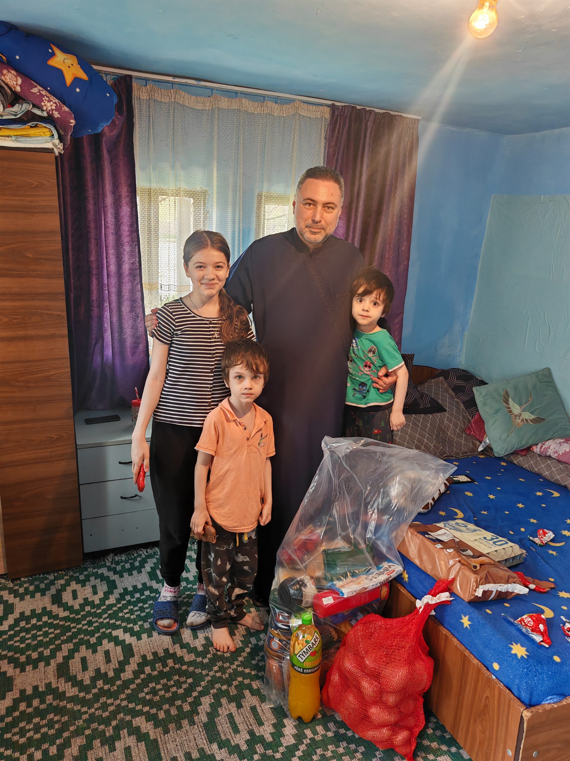 Părintele slujitor Ovidiu Marian Vlăsceanu de la parohia Domnești de Sus, protoieria Curtea de Argeș, a dăruit alimente și dulciuri pentru o familie monoparentală, cu mulți copii.