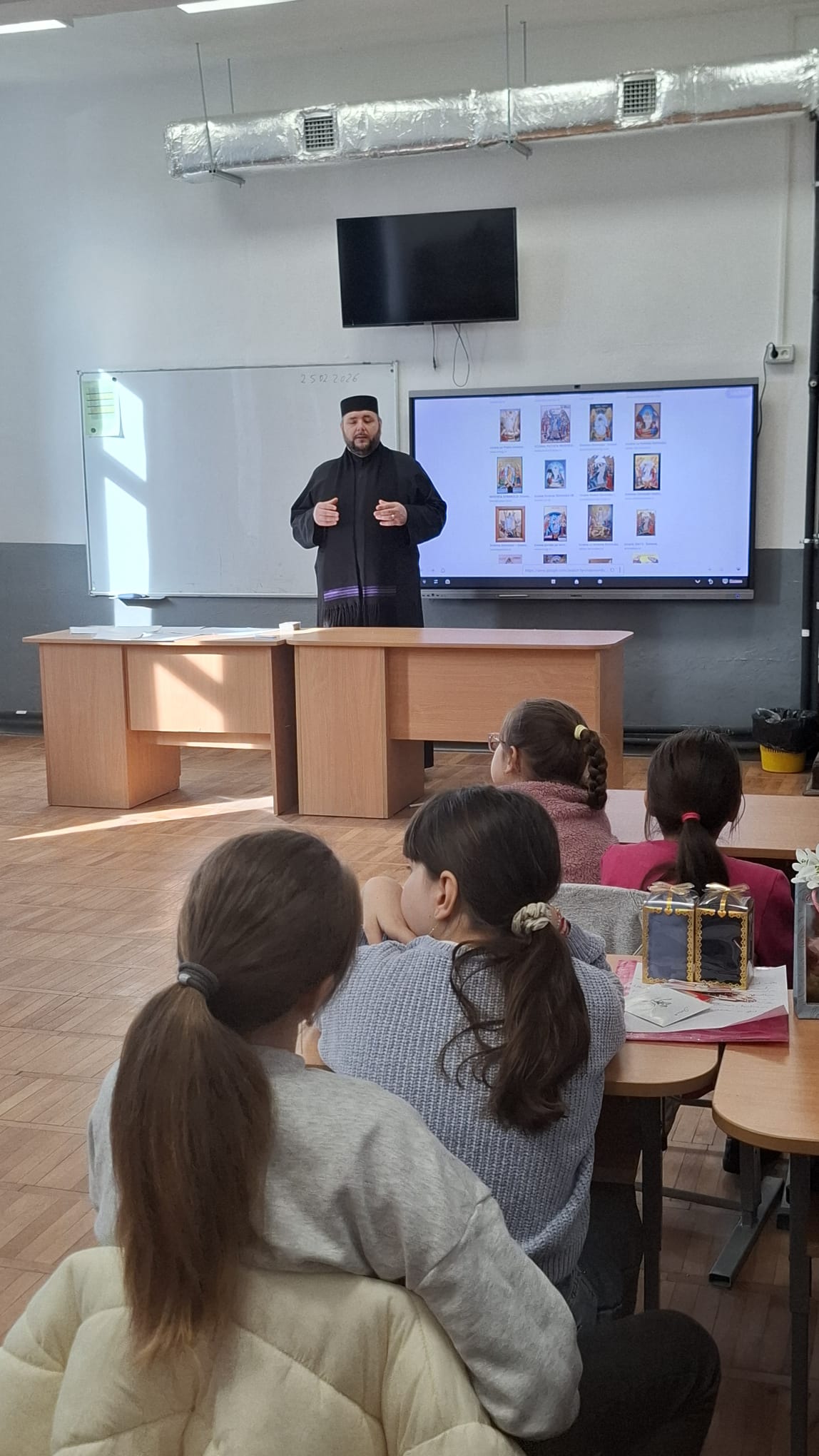 Părintele slujitor Popa Gabriel Ciprian de la parohia Săpata a vorbit elevilor despre faptul că Duminica Ortodoxiei este sărbătoarea credinței dreptmăritoare, prin cuvânt și faptă, a celor care păstrează și mărturisesc în­vățătura de credință care stă la temelia adevăratei trăiri creș­tine și a lucrării lui Hristos în lume prin Biserică. Ea ne cheamă la unitate și comuniune cu Dumnezeu și cu semenii, prin fapte de milostenie creștină.