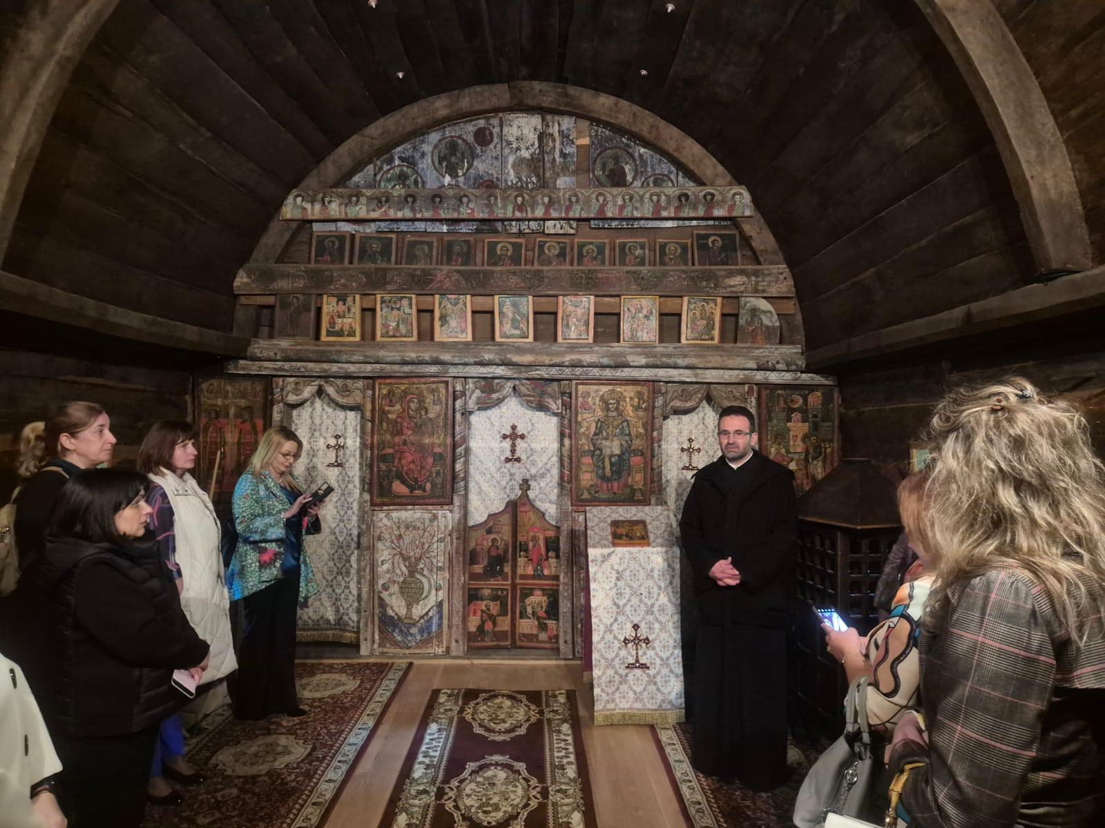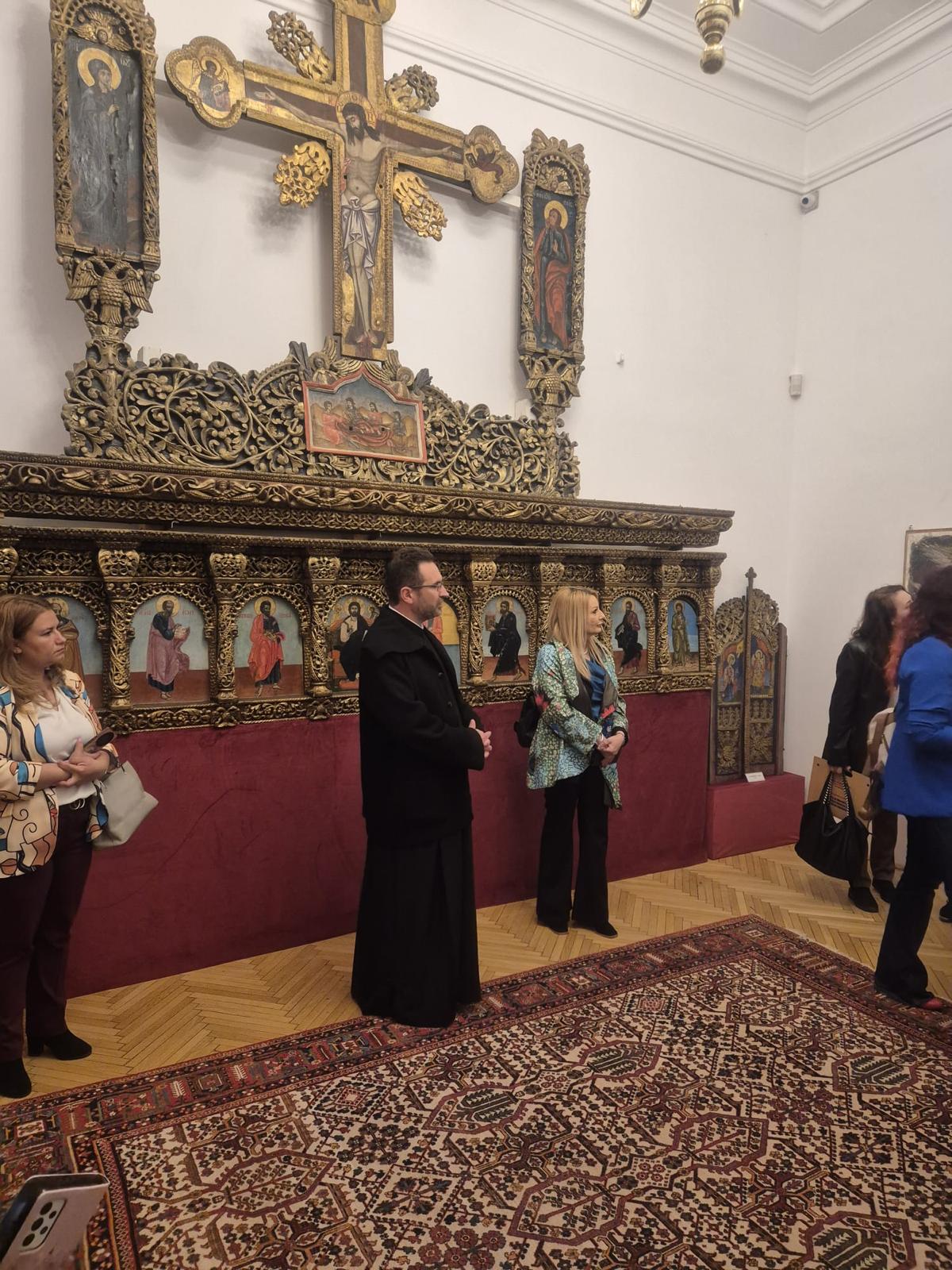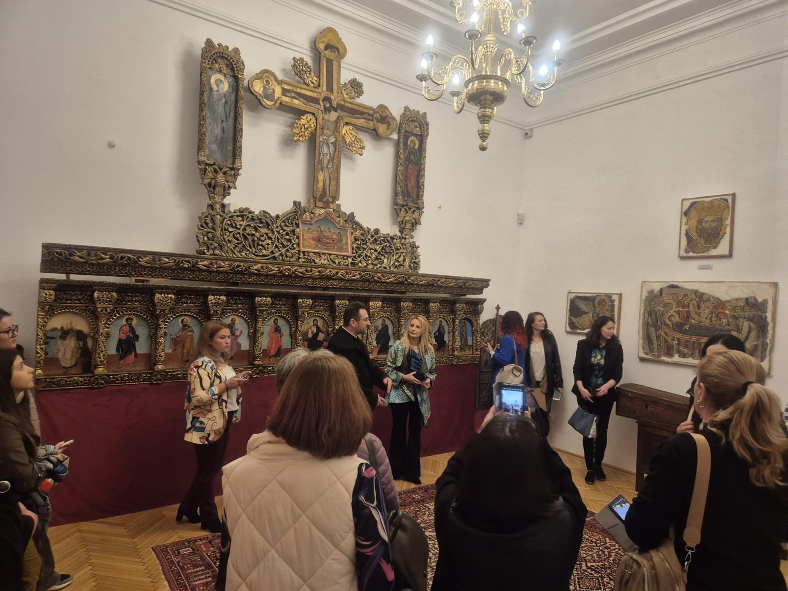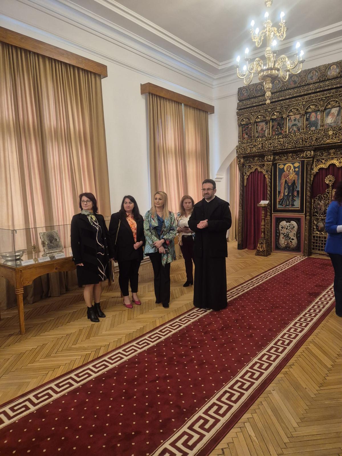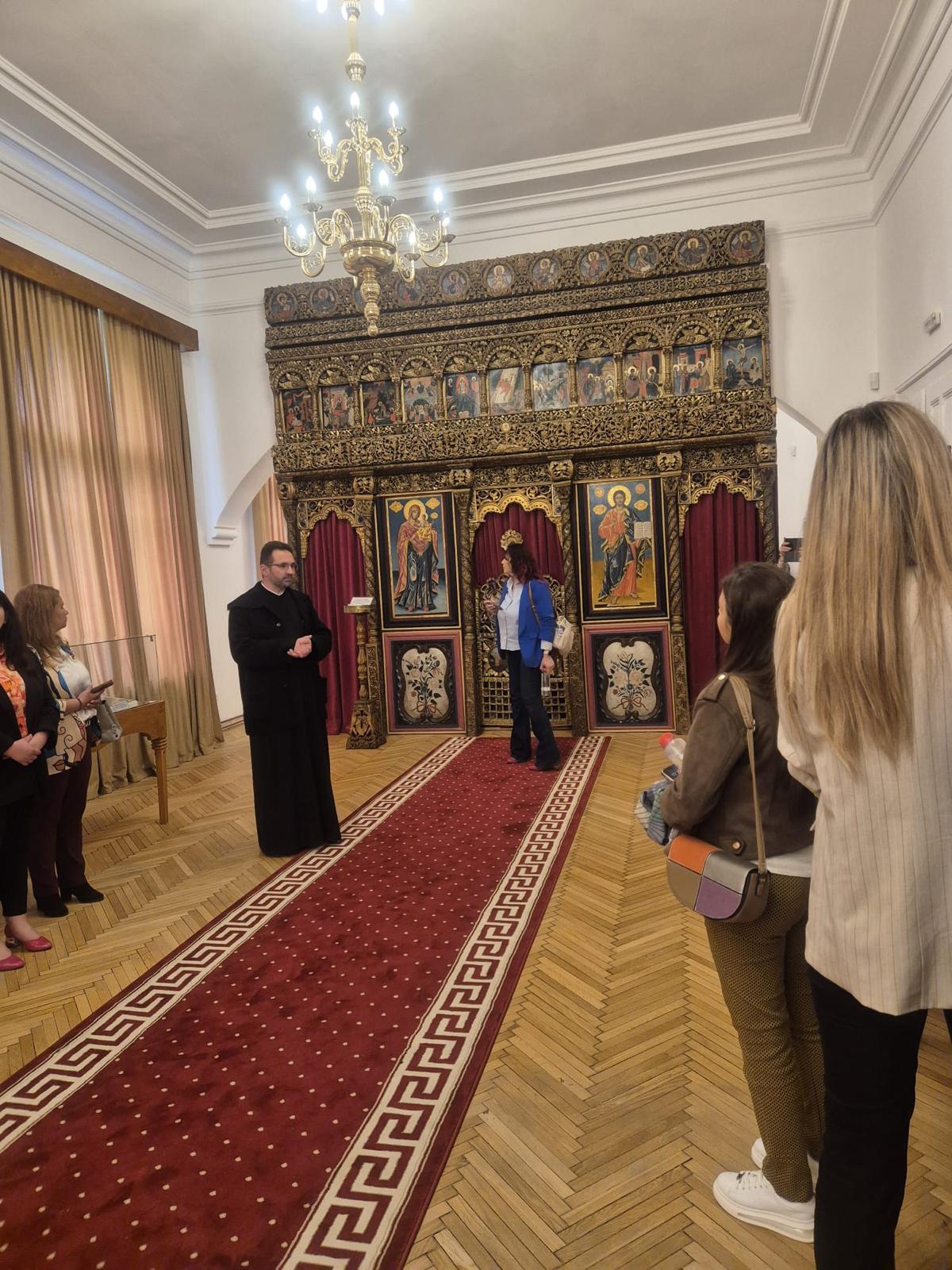 Vizita a continuat în Palatul Arhiepiscopal unde le-a fost prezentată Sala Manole, pe pereții căreia este expusă în pictură Legenda Meșterului Manole, Paraclisul Arhiepiscopal în care moaștele Sfintei Mucenițe au stat câteva decenii, Muzeul care deține o impresionantă si inestimabilă colecție de obiecte de patrimoniu, demisolul ce adăpostește fragmente de piatră sculptată din zidurile Catedralei Sfântului Neagoe Basarab înlocuite la restaurarea din perioada 1875-1886, expoziție de grafică, metaloplastie și porțelan. În program a fost cuprinsă și Biserica de lemn din parcul Mănăstirii.