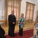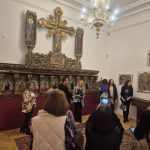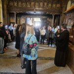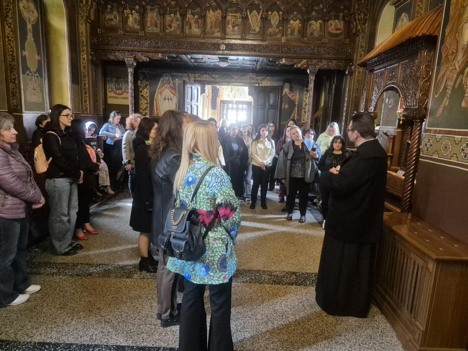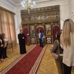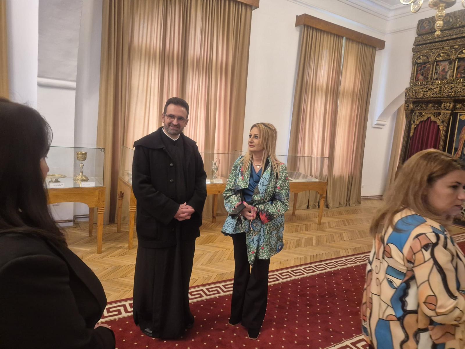 Părintele Adrian Enache a întâmpinat membrii delegației în fața Catedralei istorice, ctitoria Sfântului Voievod Neagoe Basarab, unde le-a prezentat aspecte din istoria quicentenară a sfântului lăcaș.