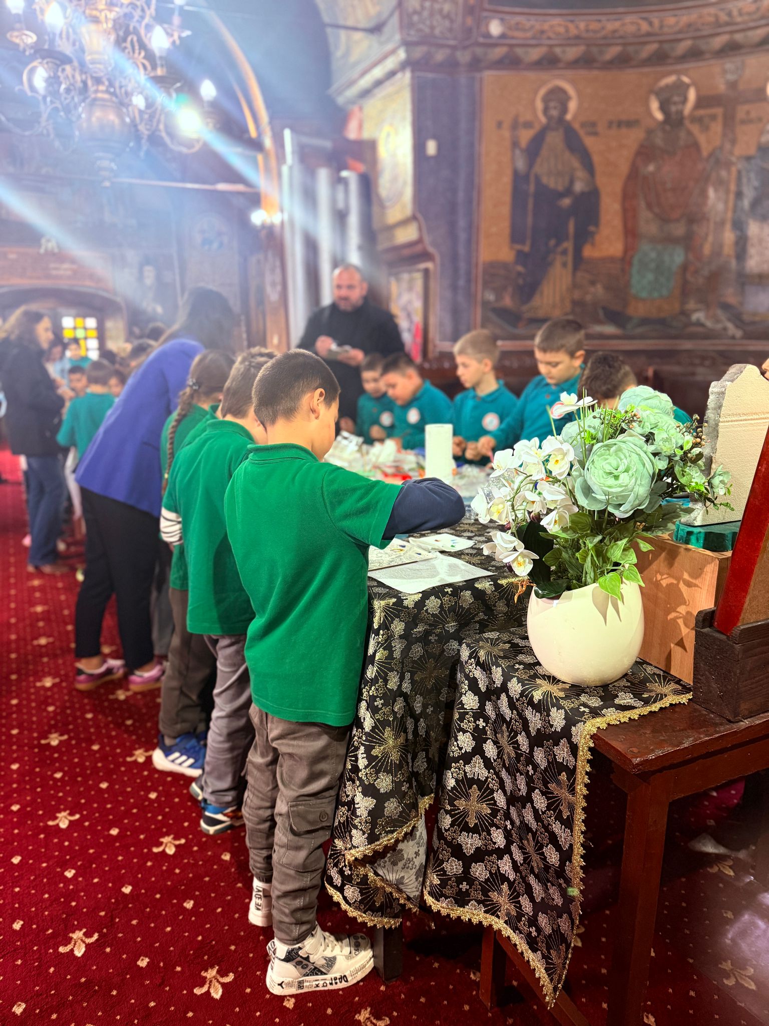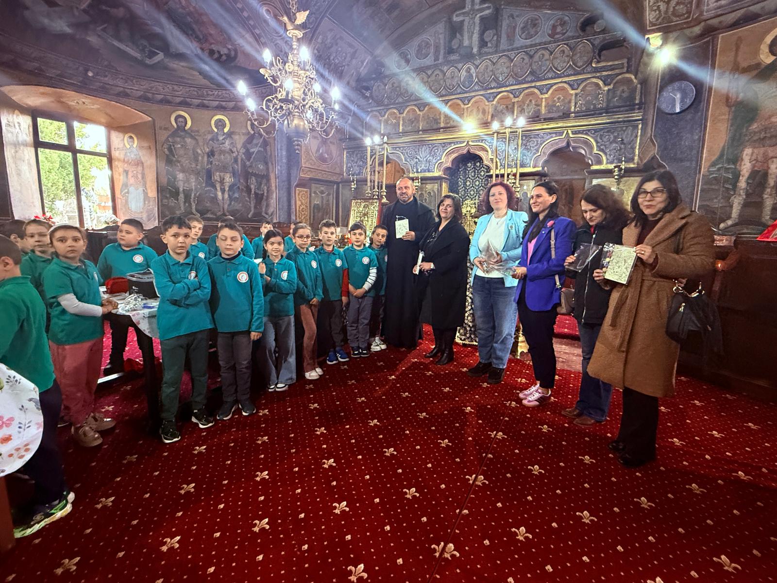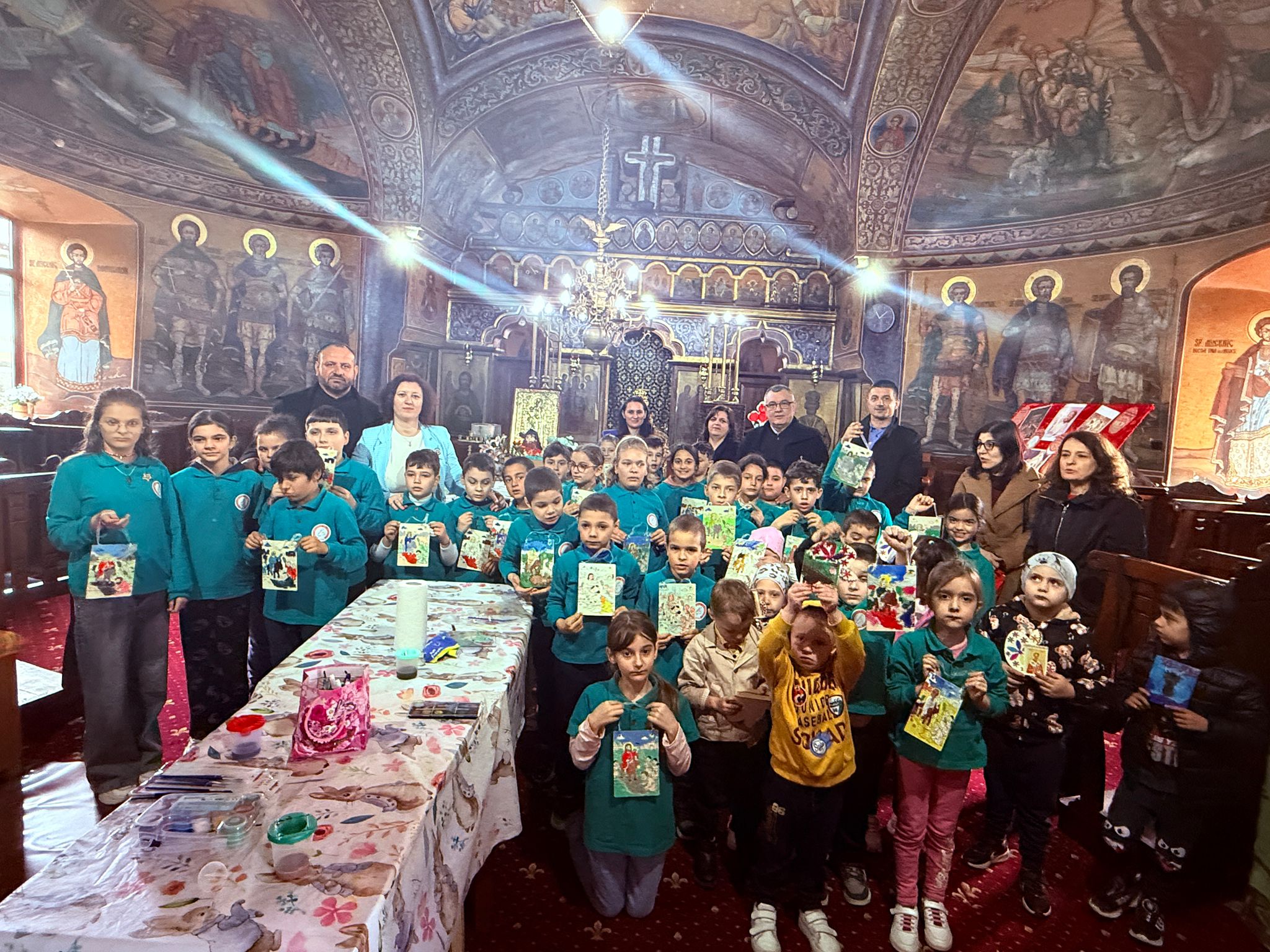 Preoții slujitori Tuță Vasile și Iordache Constantin alături de cadrele didactice au coordonat elevii care au fost prezenți în sfânta biserică, iar la final au fost oferite daruri.