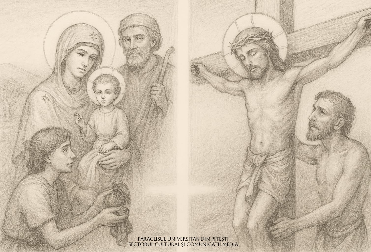 Cei doi tâlhari sunt icoana întregii omeniri: amândoi Îl văd pe Hristos, amândoi suferă aceeași moarte, dar unul se împietrește și-L hulește, iar celălalt, cu inimă zdrobită, Îl mărturisește Împărat al veșniciei. Și noi, asemenea lor, suntem păcătoși, tâlhari ai propriei noastre vieți. În fața Crucii însă, fiecare alege: împietrirea sau pocăința.