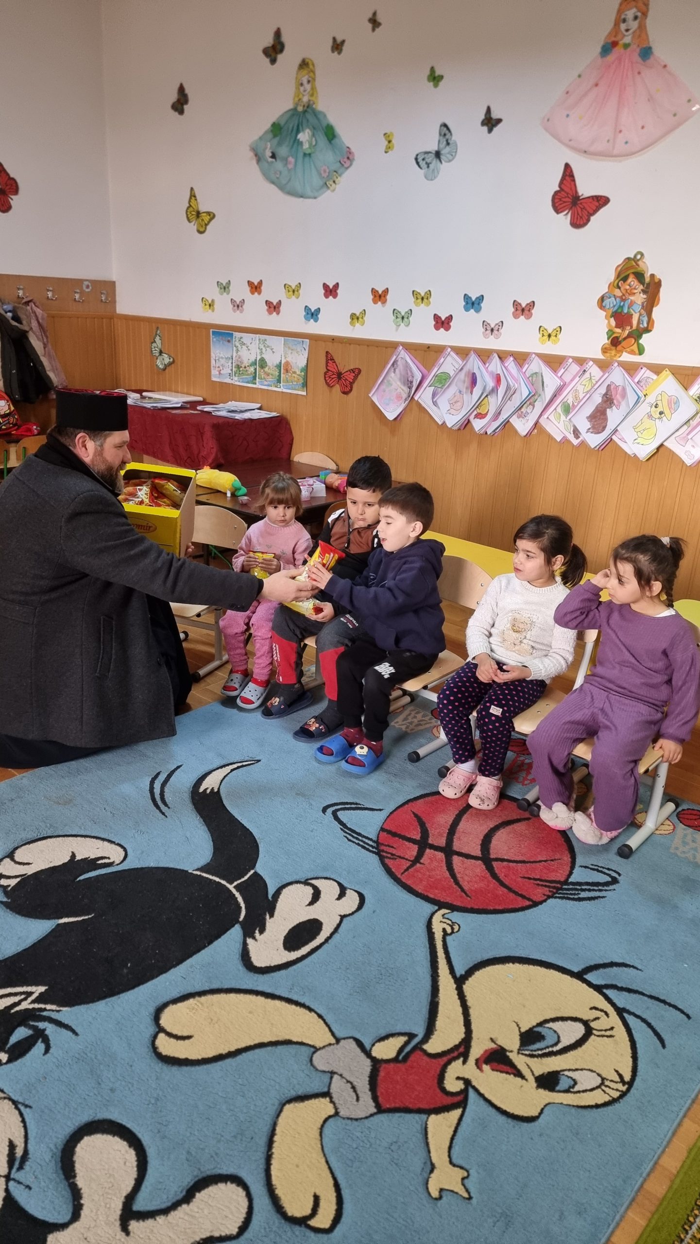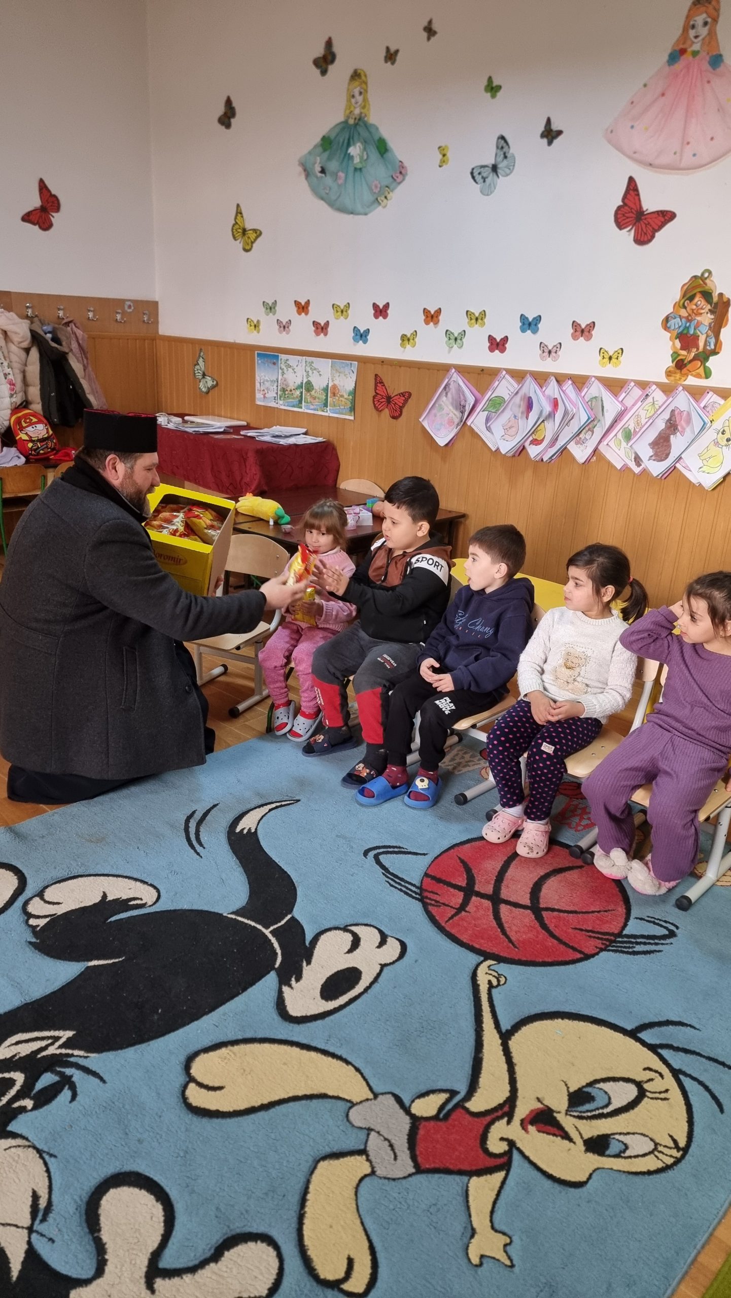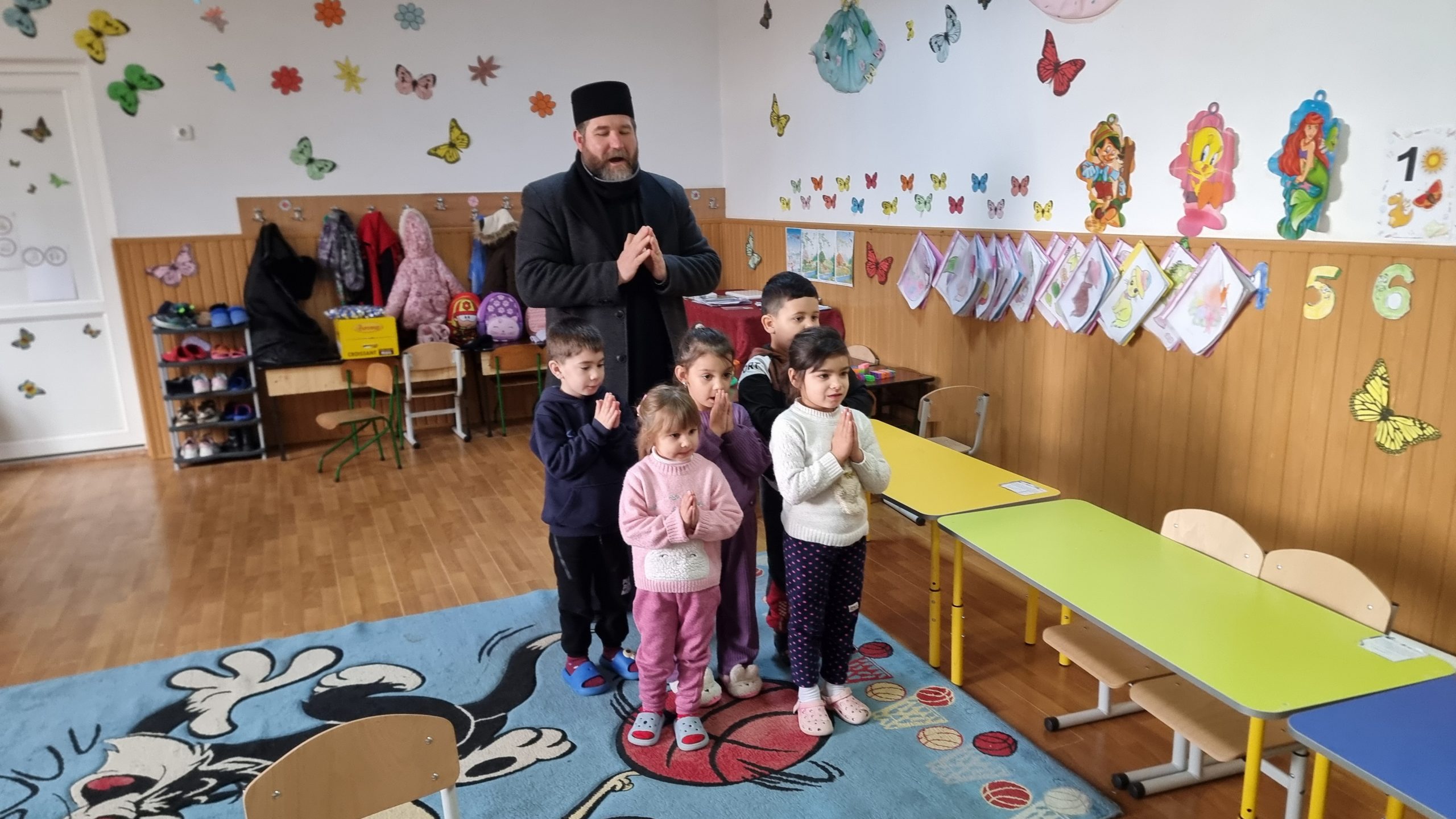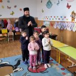 Părintele slujitor Dan Stancu de la parohia Glavacioc, protoieria Costești, a fost în mijlocul copiilor de la grădinița din localitate, unde a rostit un cuvânt de cateheză, iar la final a oferit daruri participanților.