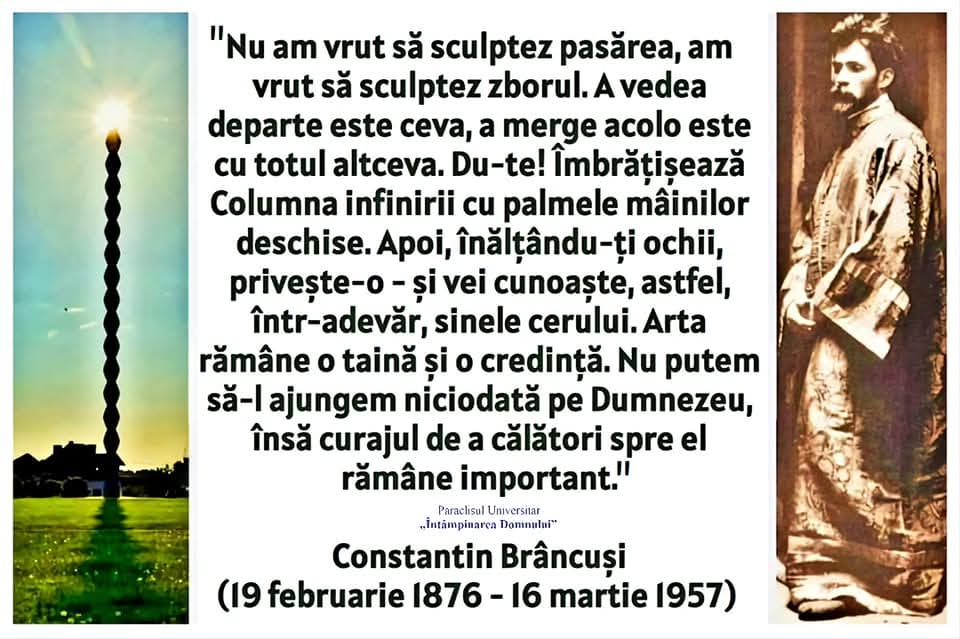 În Scriptură, omul este creat „după chip”. Brâncuși pare să fi căutat mereu acest chip interior, nu fizionomia, ci forma spirituală a realității. Opera lui nu explică, nu moralizează, nu descrie. Ea invită. Invită la tăcere. Invită la contemplație. Invită la urcuș.