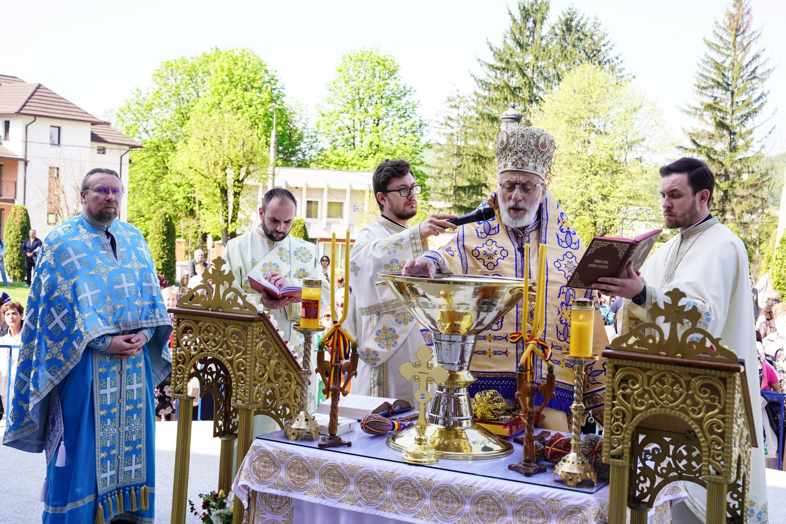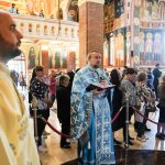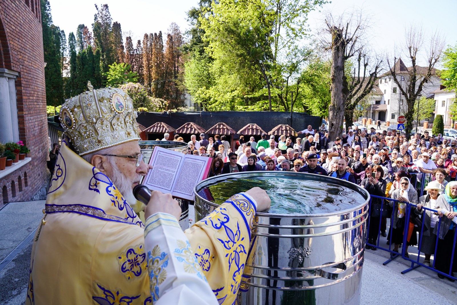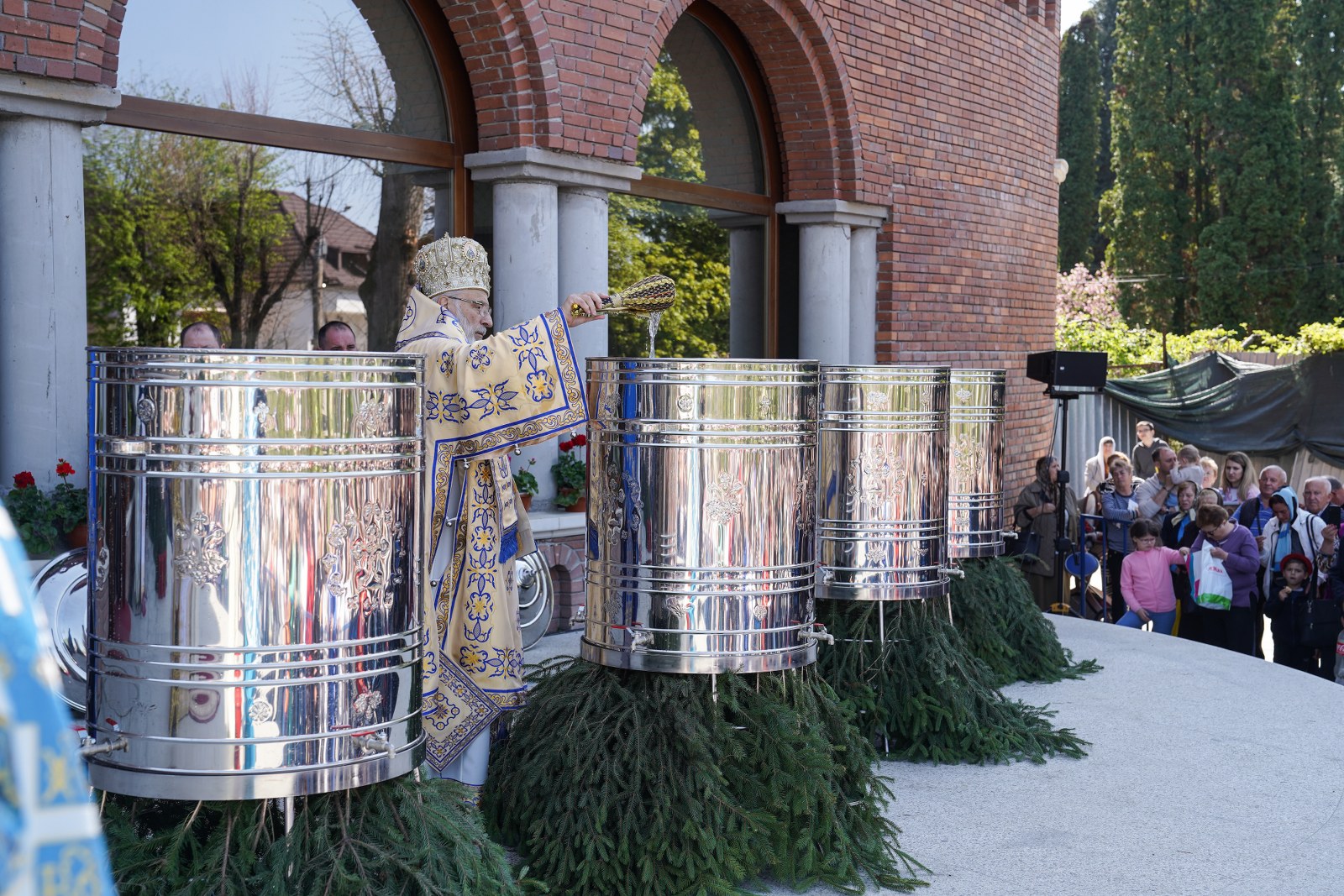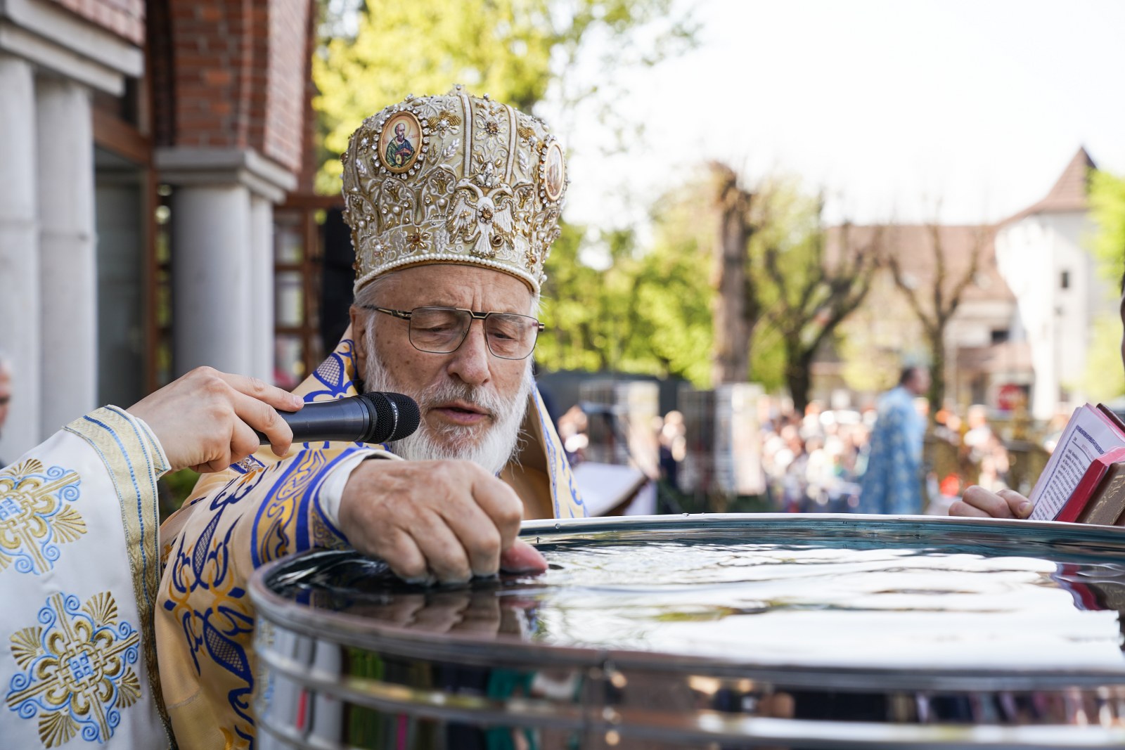 După oficierea Sfintei Liturghii, Chiriarhul Eparhiei a săvârșit slujba de sfinţire a apei pe esplanada din fața Catedralei Arhiepiscopale. Credincioșii prezenți au luat din apa sfințită, având încredere că Maica Domnului este grabnic ajutătoare pentru toți cei aflați în suferință.