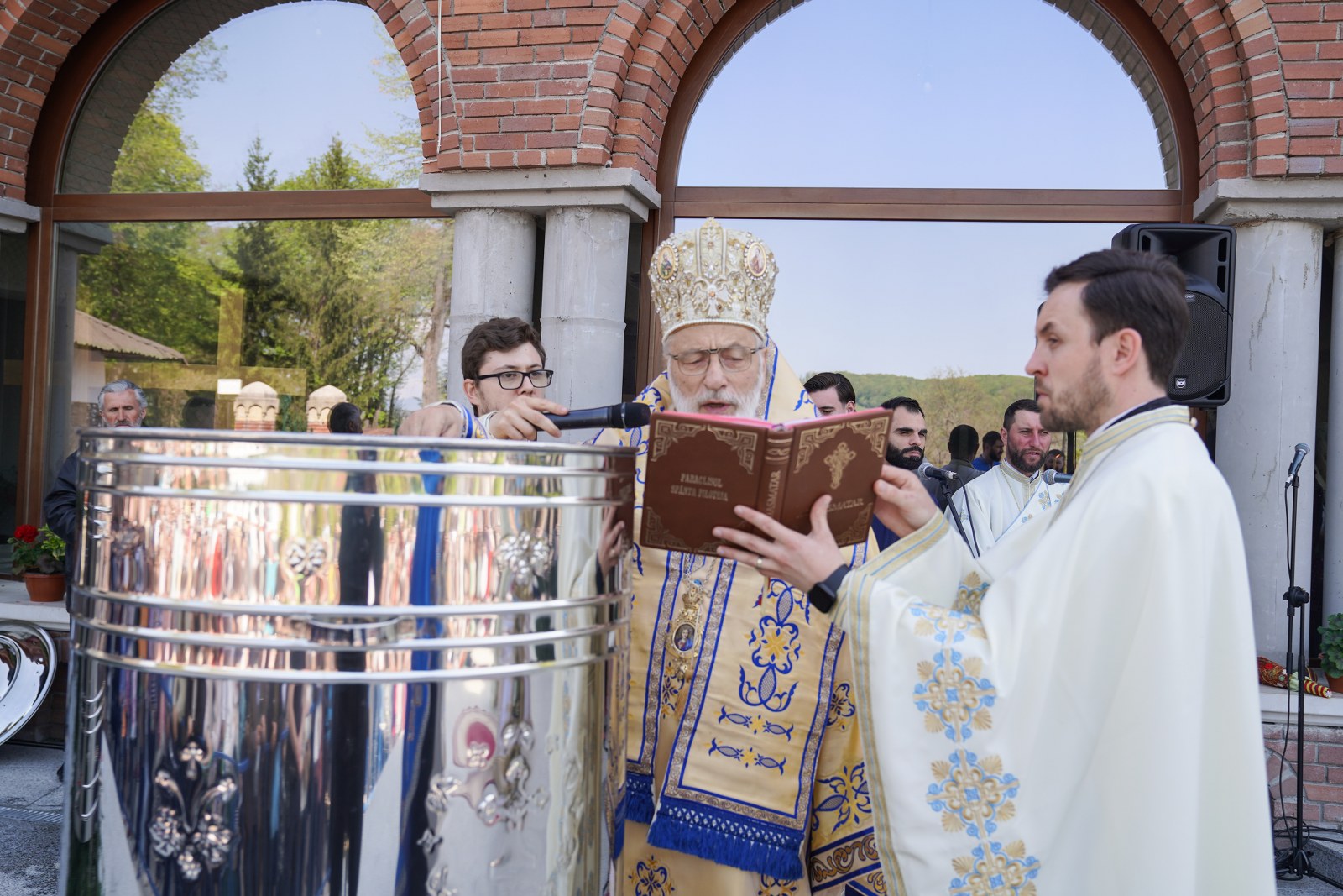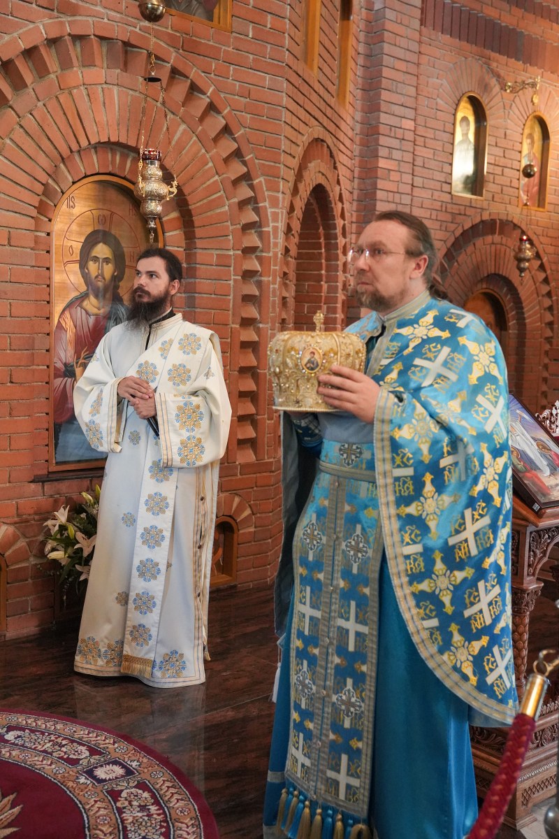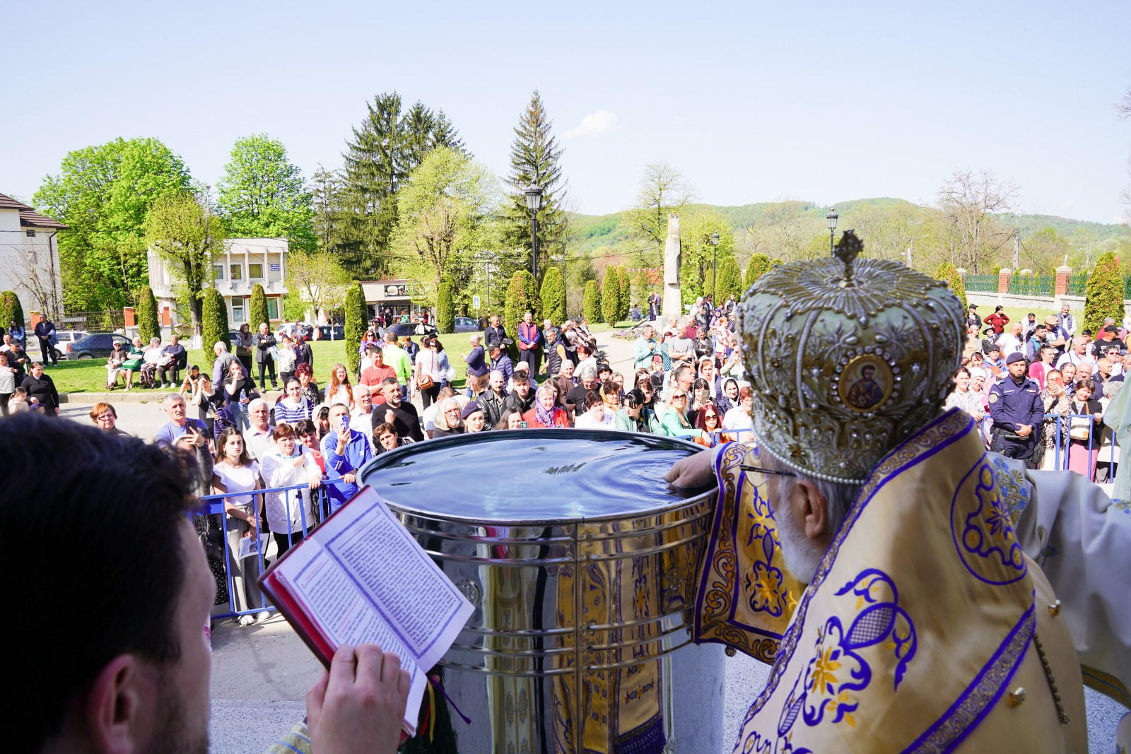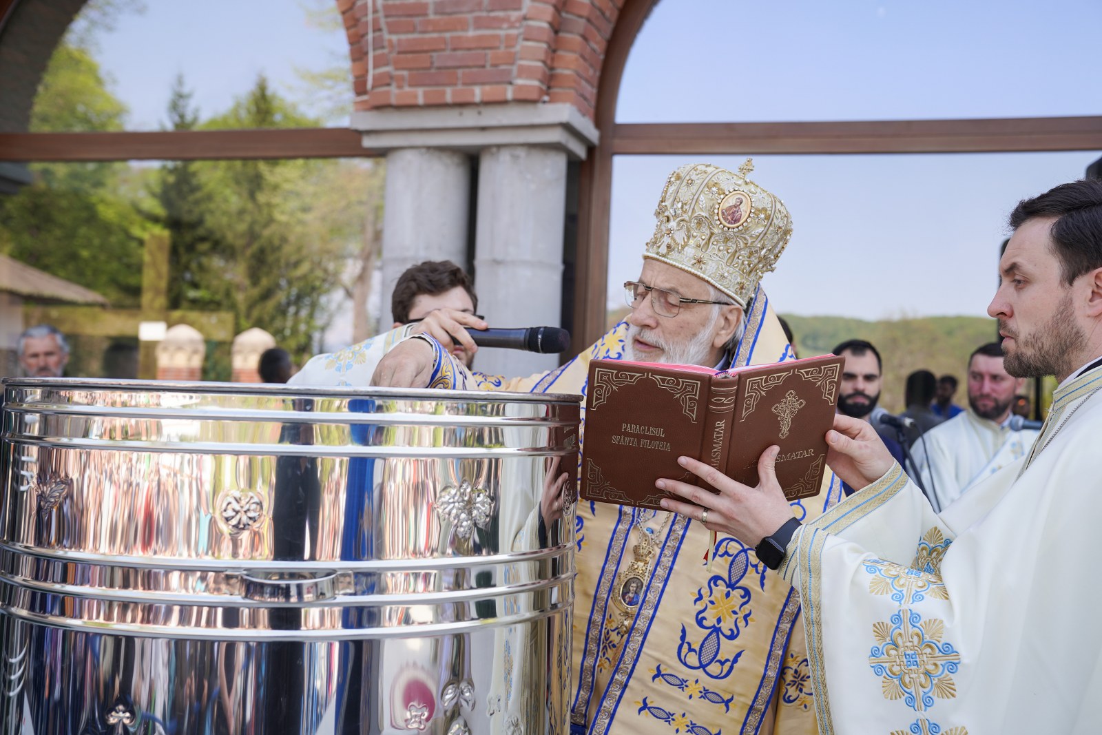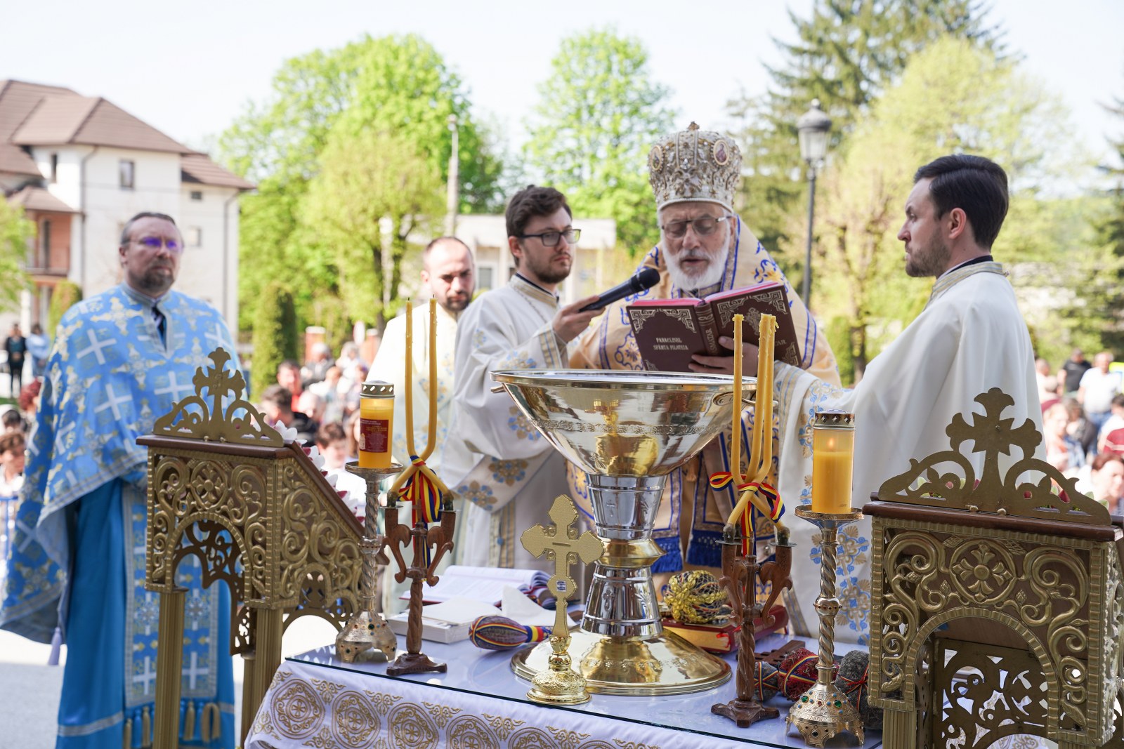 După oficierea Sfintei Liturghii, Chiriarhul Eparhiei a săvârșit slujba de sfinţire a apei pe esplanada din fața Catedralei Arhiepiscopale. Credincioșii prezenți au luat din apa sfințită, având încredere că Maica Domnului este grabnic ajutătoare pentru toți cei aflați în suferință.