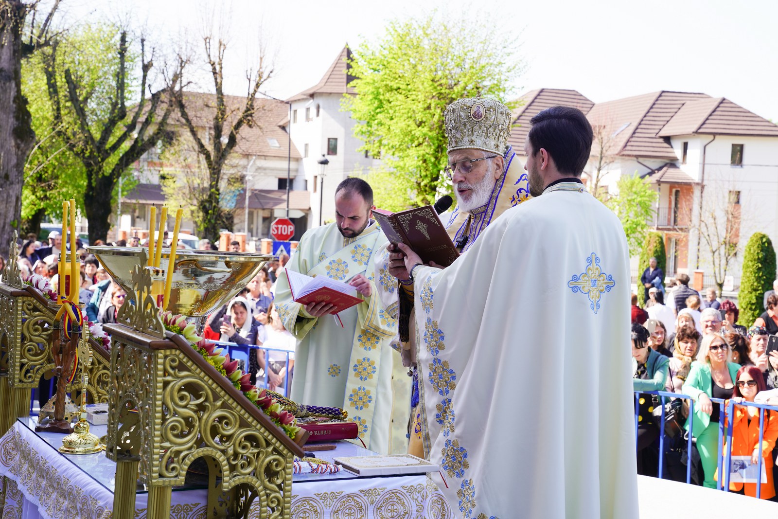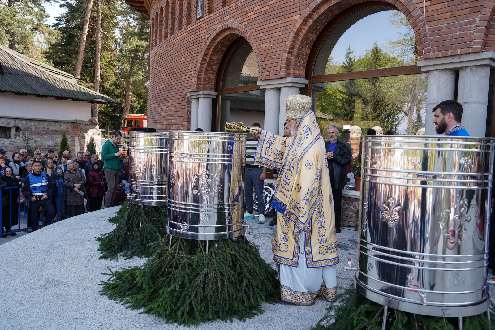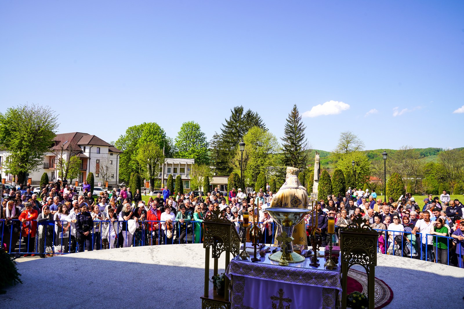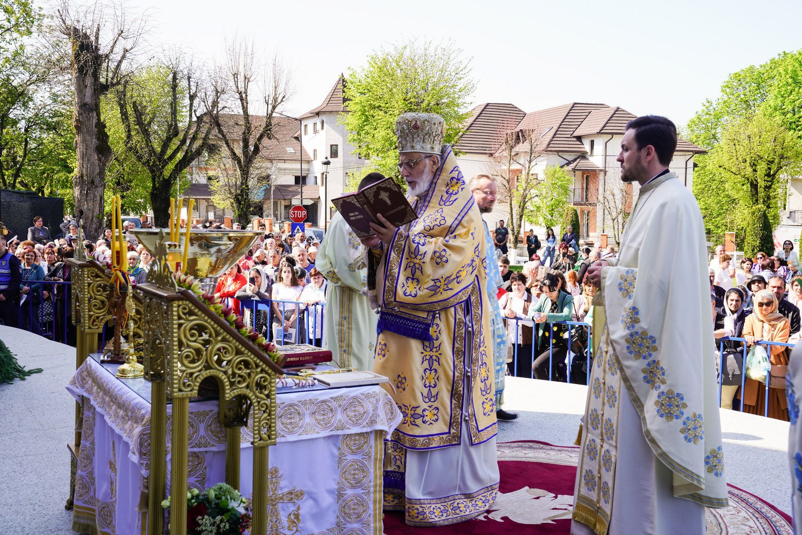 După oficierea Sfintei Liturghii, Chiriarhul Eparhiei a săvârșit slujba de sfinţire a apei pe esplanada din fața Catedralei Arhiepiscopale. Credincioșii prezenți au luat din apa sfințită, având încredere că Maica Domnului este grabnic ajutătoare pentru toți cei aflați în suferință.