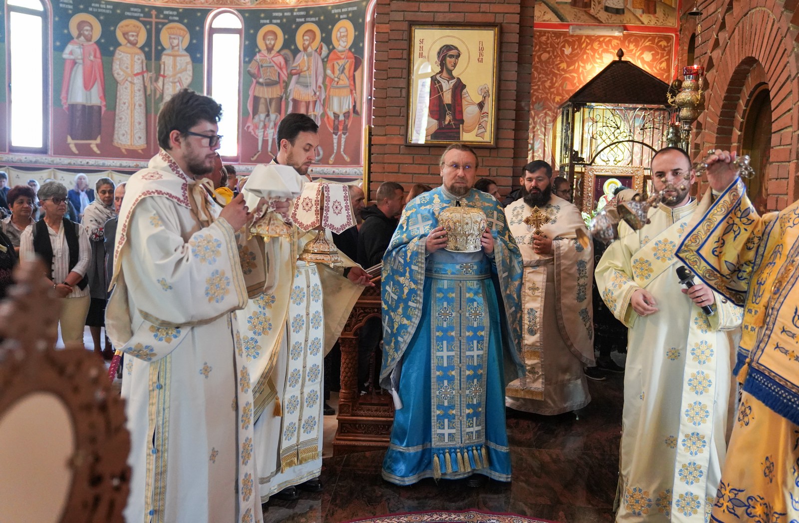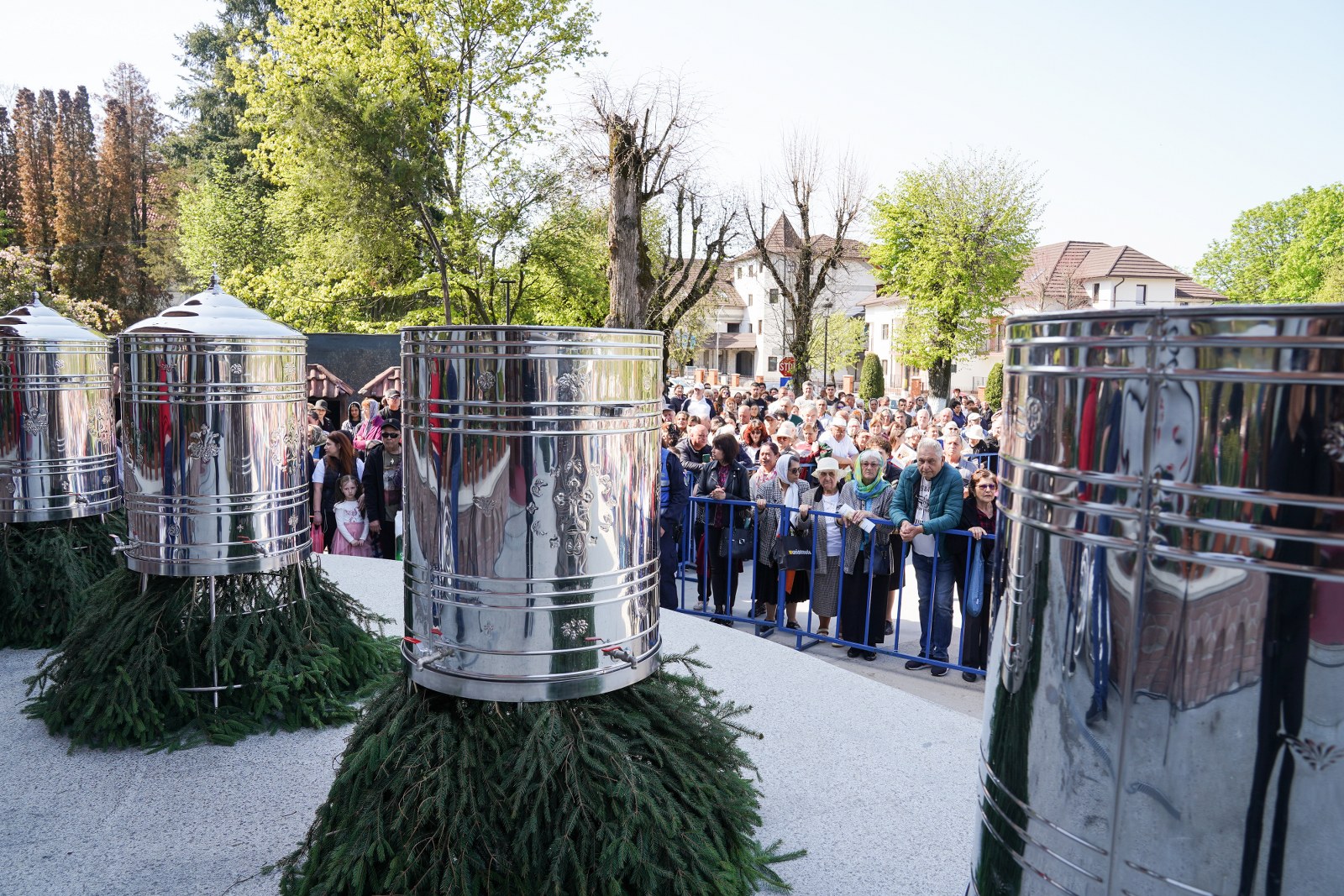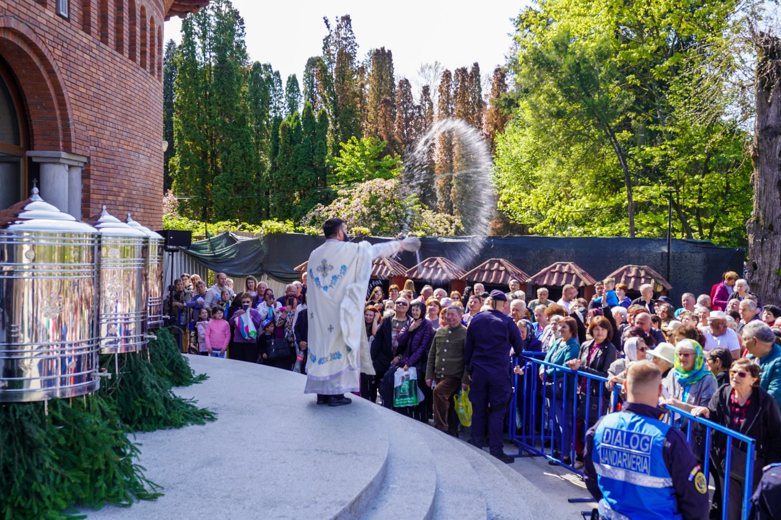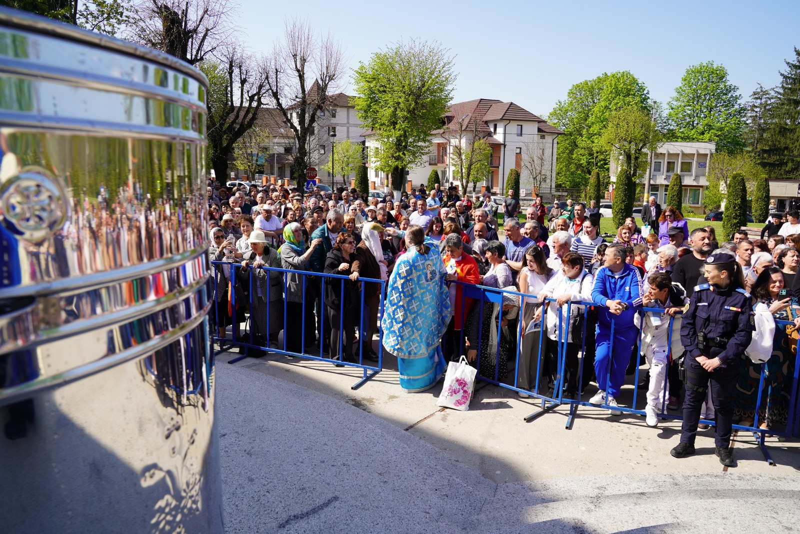 După oficierea Sfintei Liturghii, Chiriarhul Eparhiei a săvârșit slujba de sfinţire a apei pe esplanada din fața Catedralei Arhiepiscopale. Credincioșii prezenți au luat din apa sfințită, având încredere că Maica Domnului este grabnic ajutătoare pentru toți cei aflați în suferință.