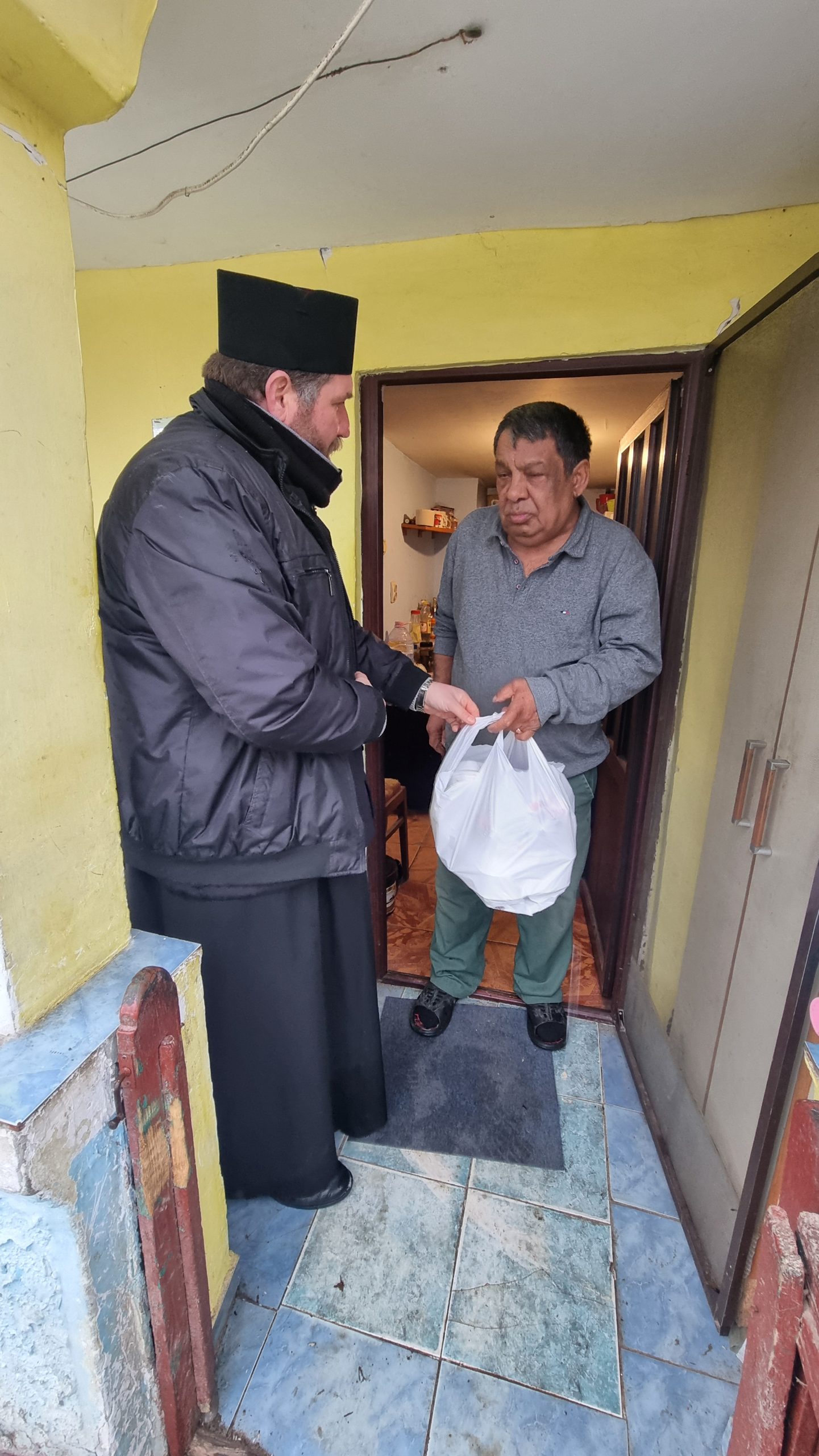 Părintele slujitor Dan Stancu de la parohia Glavacioc, protoieria Costești, a fost alături de o familie cu greutăți materiale, dăruind alimente pentru masa zilnică.
