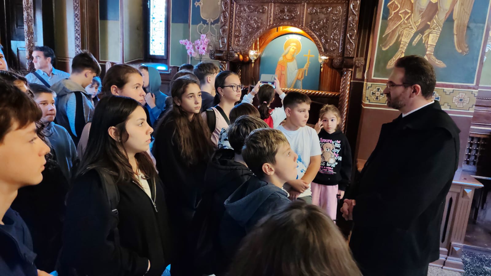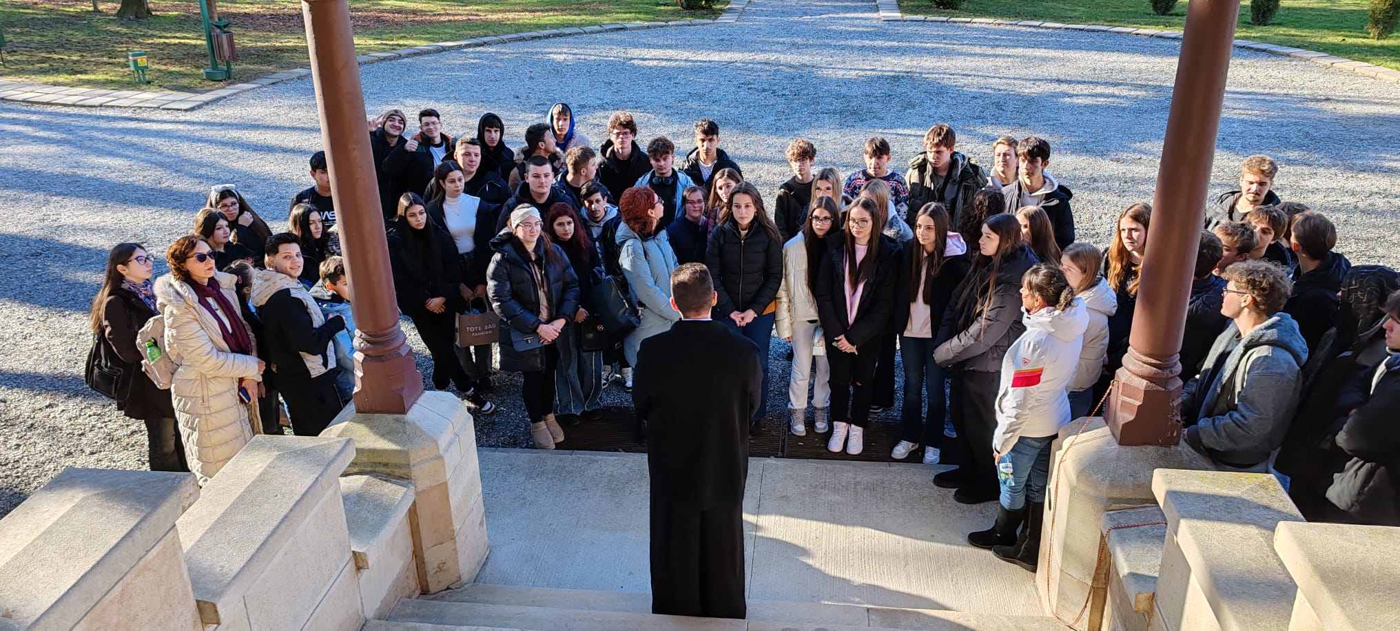Părintele Adrian Enache a prezentat tuturor oaspeților aspecte din istoria multiseculara a locului ,elemente legate de legenda Meșterului Manole în care se evidențiază mitul jertfei pentru creație precum și argumente ale continuității istoriei în acest spațiu eclesiastic,s-au rostit rugăciuni, dorindu-se și o întărire a legăturii dintre școală și Biserică ,piloni esențiali ai formării duhovnicești și intelectuale a tinerilor, aceștia constituind de fapt și temelia pe care se poate zidi o societate armonioasă unită în dragostea lui Dumnezeu .