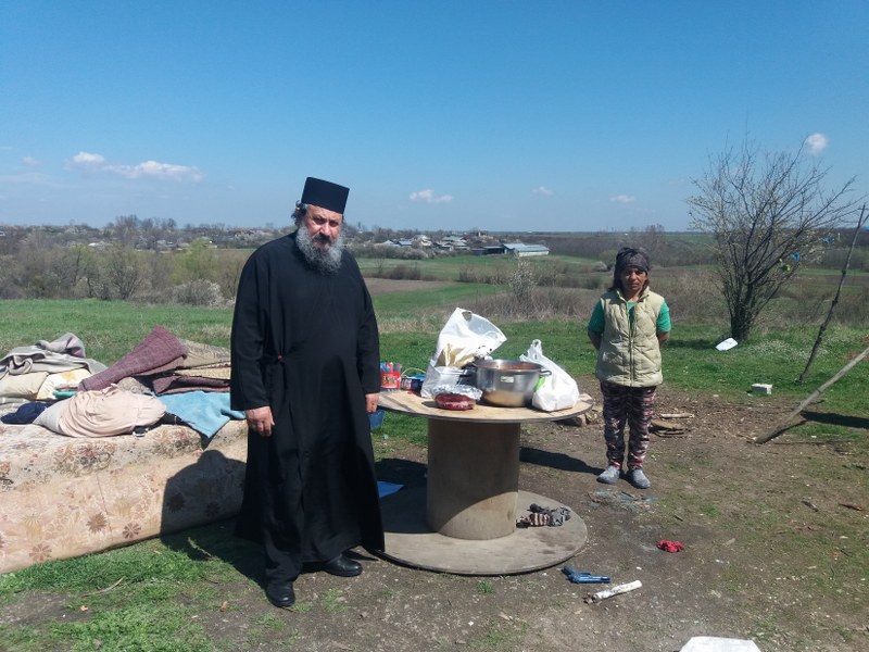 Părintele protosinghel Casian Crețu, starețul Mănăstirii Glavacioc, a venit în ajutorul unei familii defavorizate social, dăruind hrană caldă