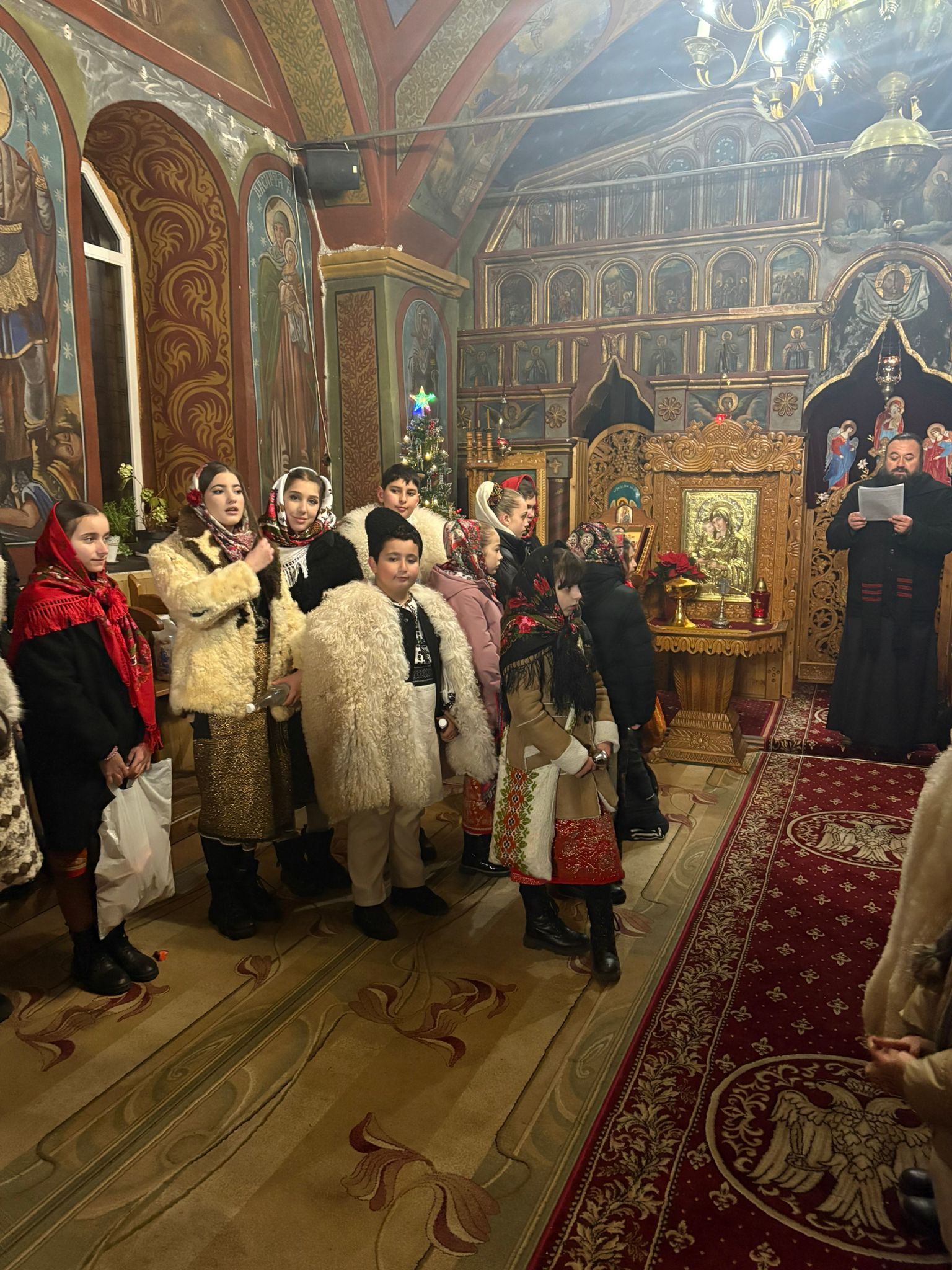 Însoțiți de preoții satului, paroh Nicu Daniel și Ioana Gheorghe, de doamna profesoară Ungheanu Mateescu Ionela, de enoriași și copii din parohie, colindătorii au pornit pe la case, spre biserică, unde au susținut un recital de colinde tradiționale, spre bucuria auditorilor.