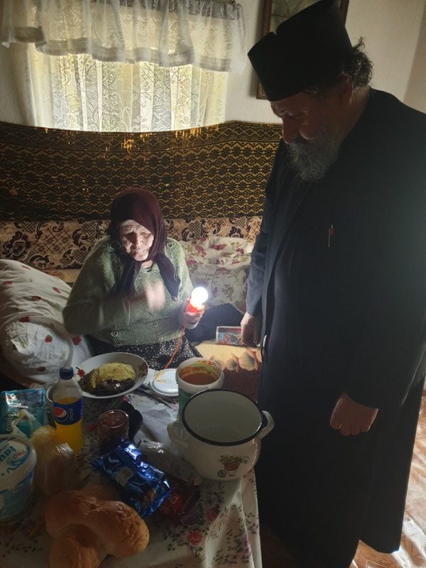 Părintele protosinghel Casian Crețu, starețul Mănăstirii Glavacioc, a vizitat câțiva bătrâni, mângâindu-le sufletele prin rugăciune și cuvânt de folos, dar și trupurile gârbovite de ani și suferințe, prin hrană caldă, zilnic.