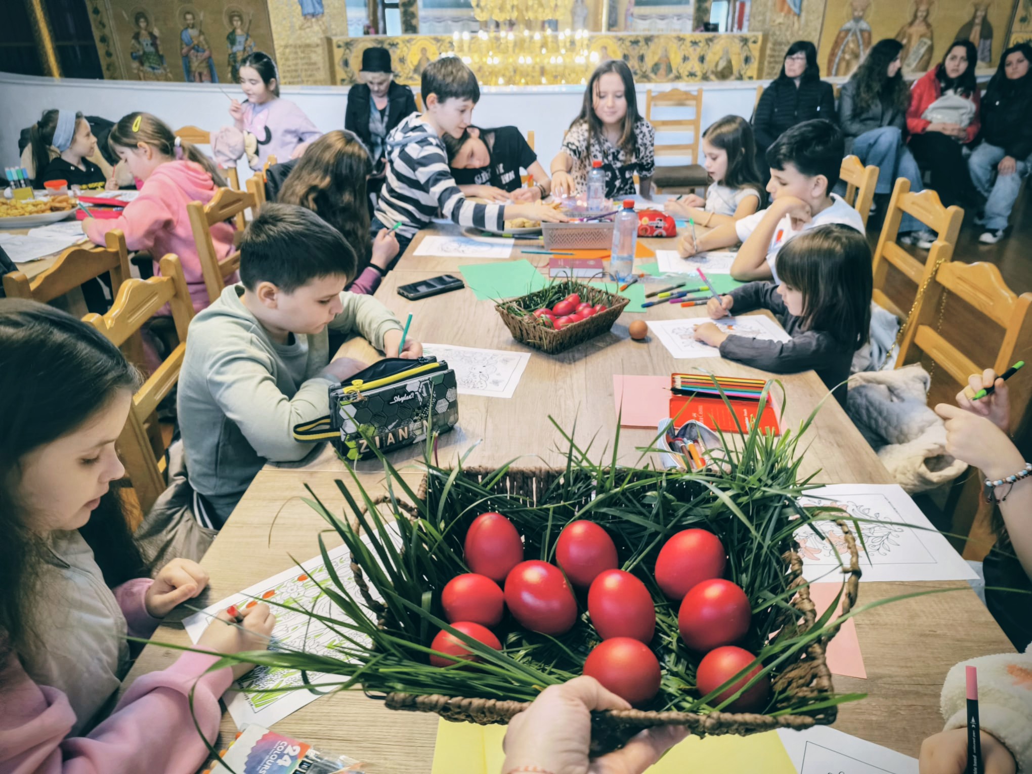 După partea teoretică, micii artiști și-au pus imaginația la treabă în cadrul unui atelier de creație plin de culoare. Masa de lucru a fost inundată de entuziasm, copiii realizând: planșe colorate reprezentând scene biblice specifice perioadei; ouă de Paști pictate, folosind diverse tehnici de desen; coșulețe artizanale pline cu ouă și simboluri pascale; decorațiuni tematice menite să aducă sărbătoarea în casele lor.