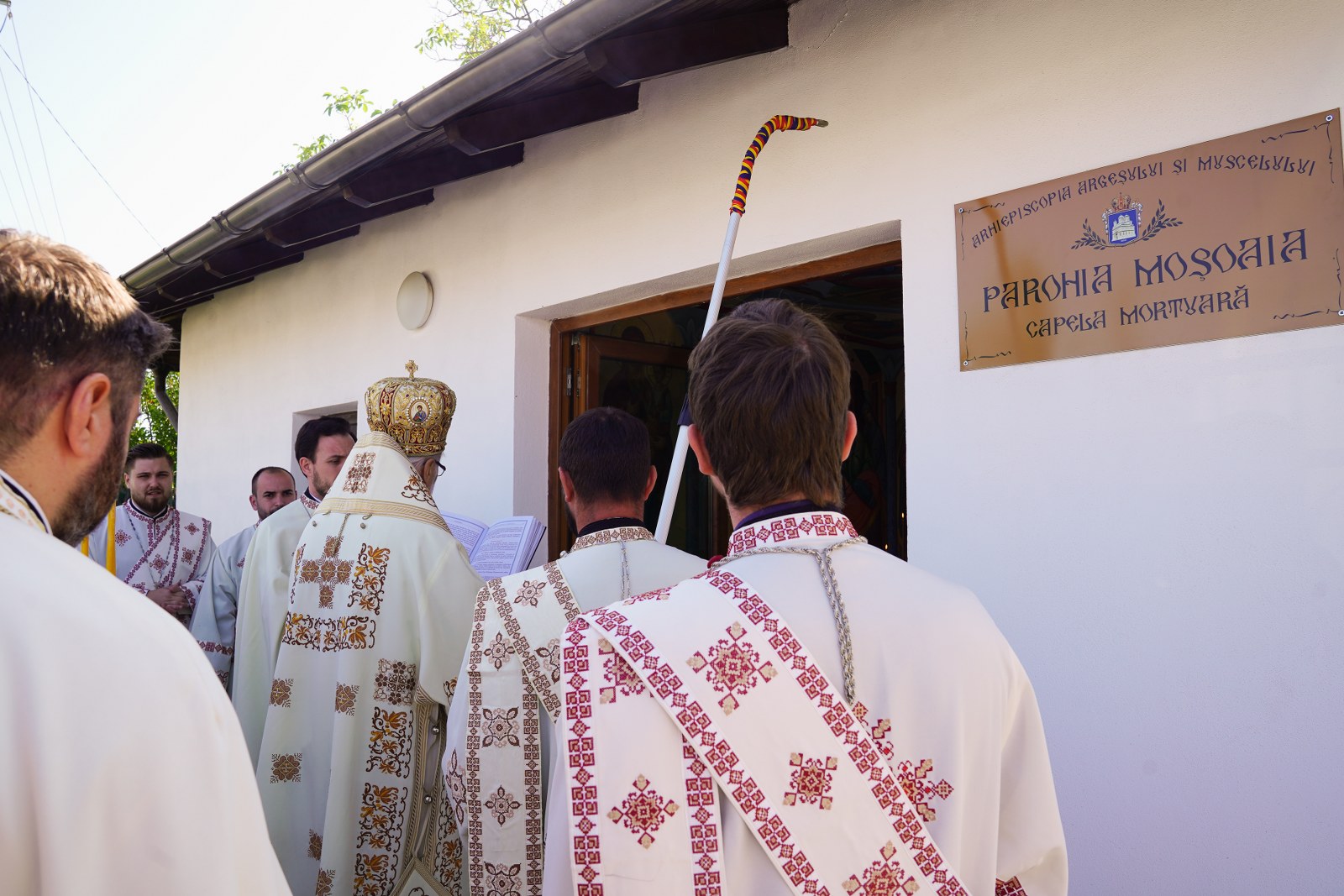 Credincioșii din parohia argeșeană Moșoaia, protopopiatul Pitesti, au avut astăzi bucuria de a-l avea în mijlocul lor pe Înaltpreasfințitul Părinte Arhiepiscop Calinic Argeșeanul. Cu această ocazie, Chiriarhul a săvârșit slujba de sfințire a noului complex de clădiri construite în curtea bisericii, ce cuprinde: capelă mortuară, așezământ social și cancelarie parohială. Tot acum a fost sfințit și noul mozaic realizat pe fațada bisericii.