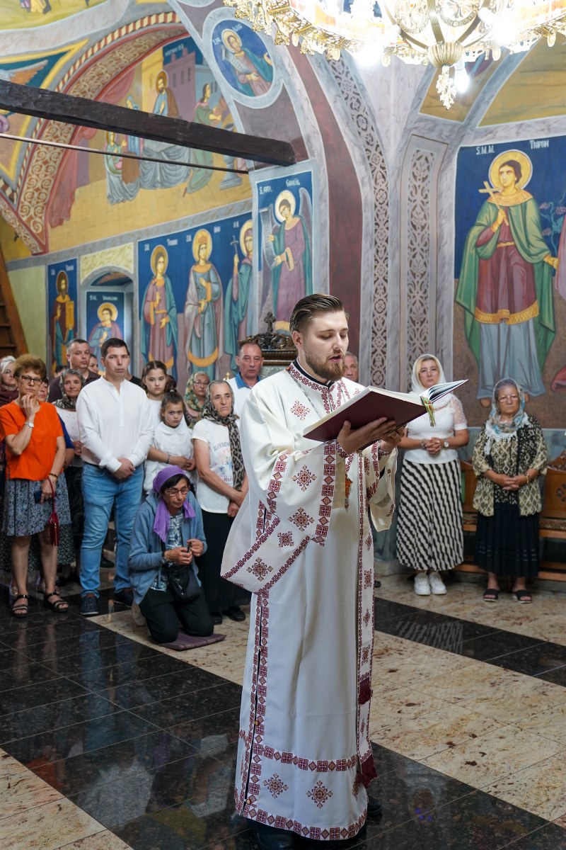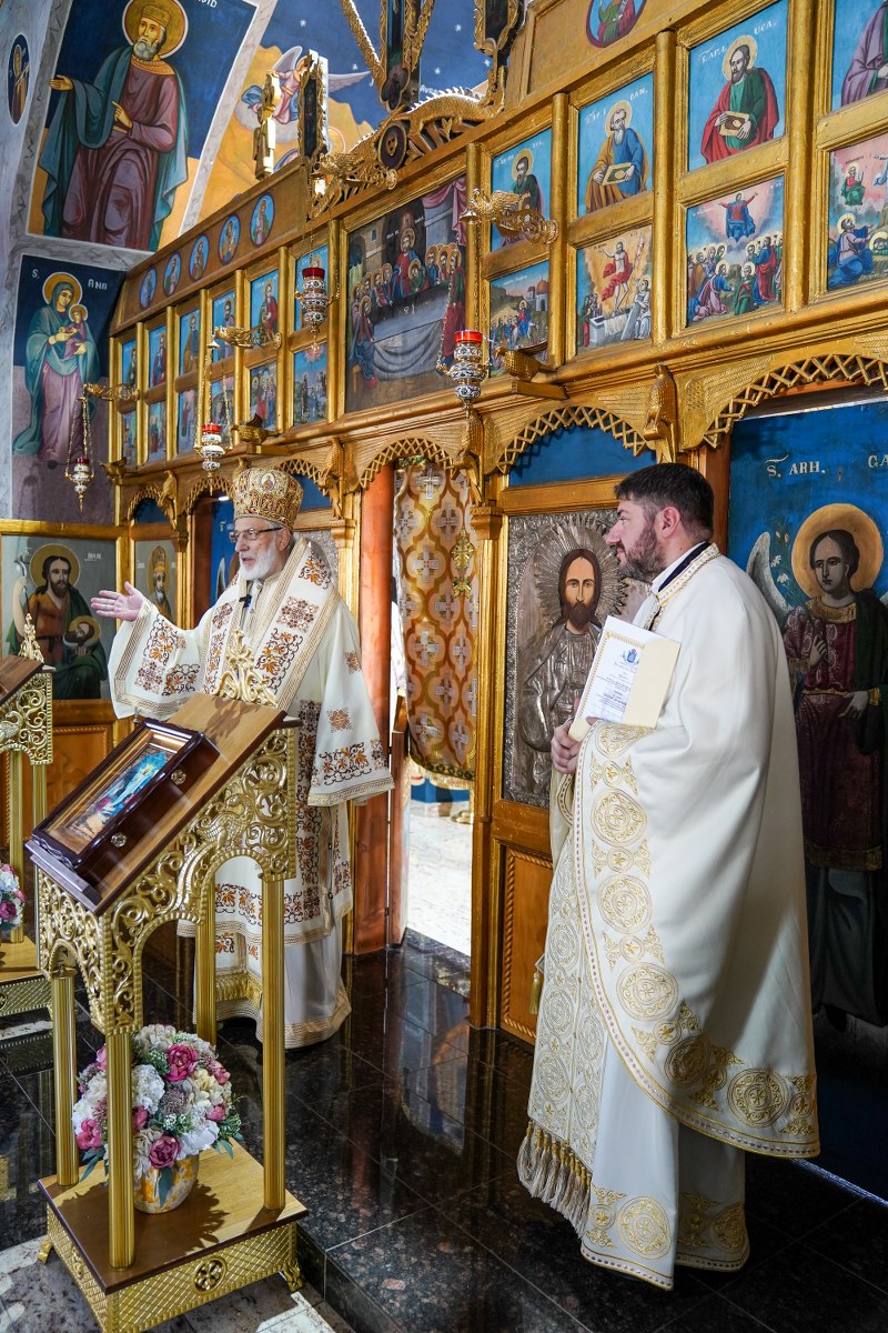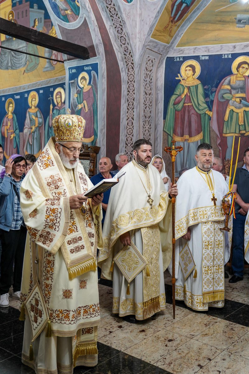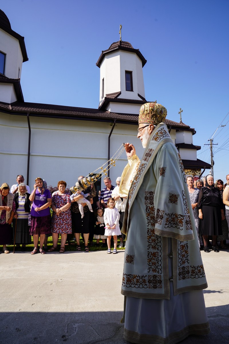 Chiriarhul Eparhiei a rostit un cuvânt de învățătură despre însemnătatea acestei duminici închinată Sfinților Români, amintind celor prezenți că bunătatea este virtutea care ne deschide ușa împărăției lui Dumnezeu. Totodată, Înaltpreasfinția Sa a vorbit despre vrednicia credincioșilor din parohia Moșoaia și a părintelui paroh Andrei Ponov, care au reușit în ultimii șapte ani să realizeze lucrări foarte importante la biserica satului.