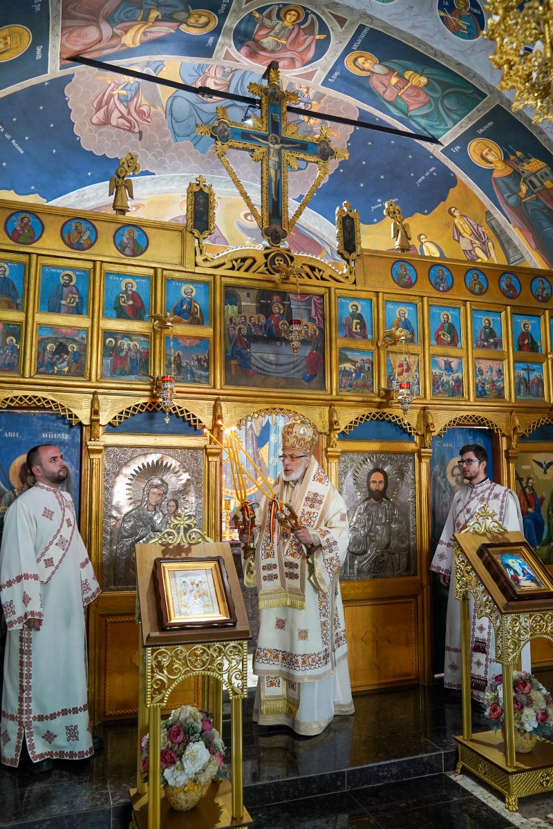 După acest moment, Ierarhul Argeșean a oficiat Sfânta Liturghie în biserica parohială, în prezența autorităților locale din comuna Moșoaia, a ctitorilor și enoriașilor din parohie.