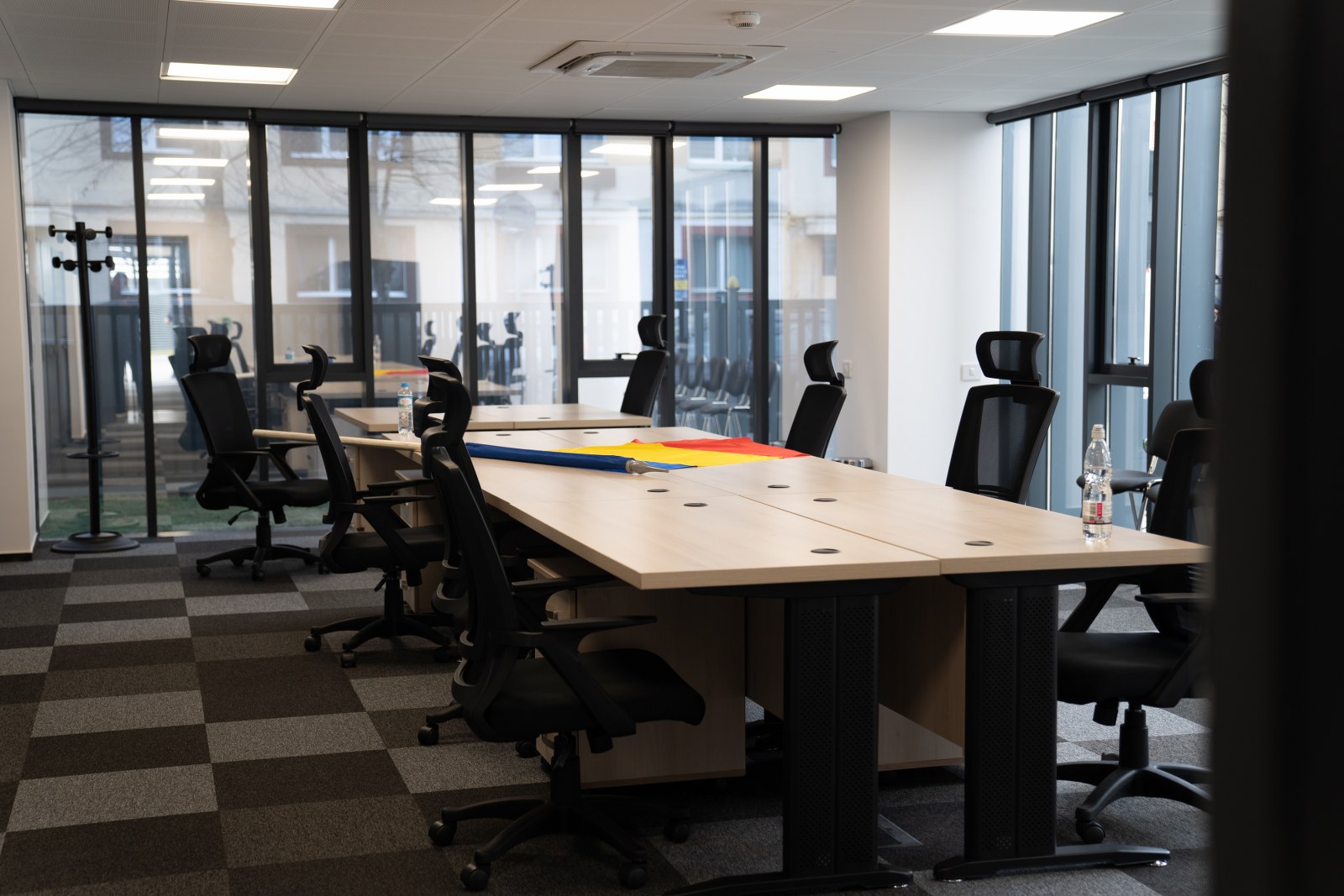 Etajele superioare sunt destinate birourilor, iar pe acoperiș au fost montate panouri solare.