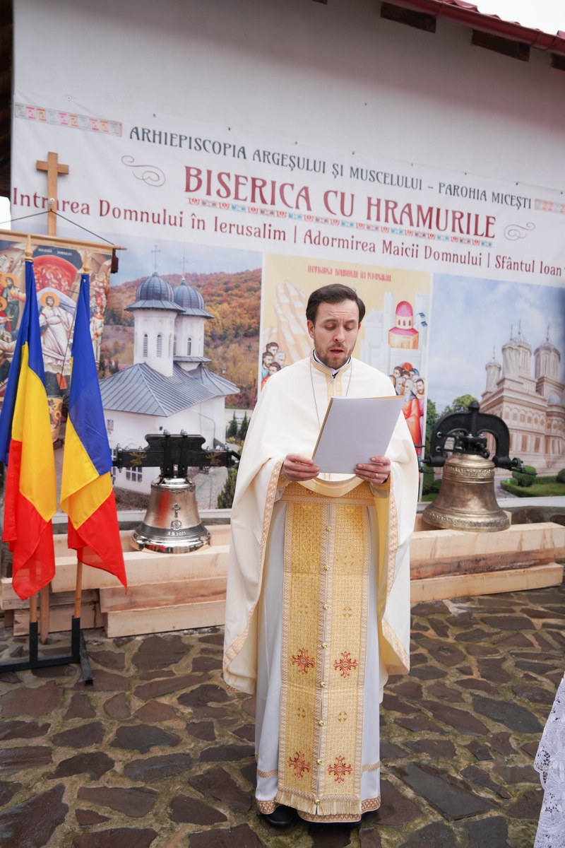 După încheierea Sfintei Liturghii, s-a oficiat slujba de sfințire a celor trei clopote noi, așezate în curtea bisericii. Noile clopote au fost realizate de catre echipa dl Radu Blotor, lucrare sustinuta financiar de catre parohia Micesti, familia doamnei Badea Andreea si de catre dl Dan Rădulescu.