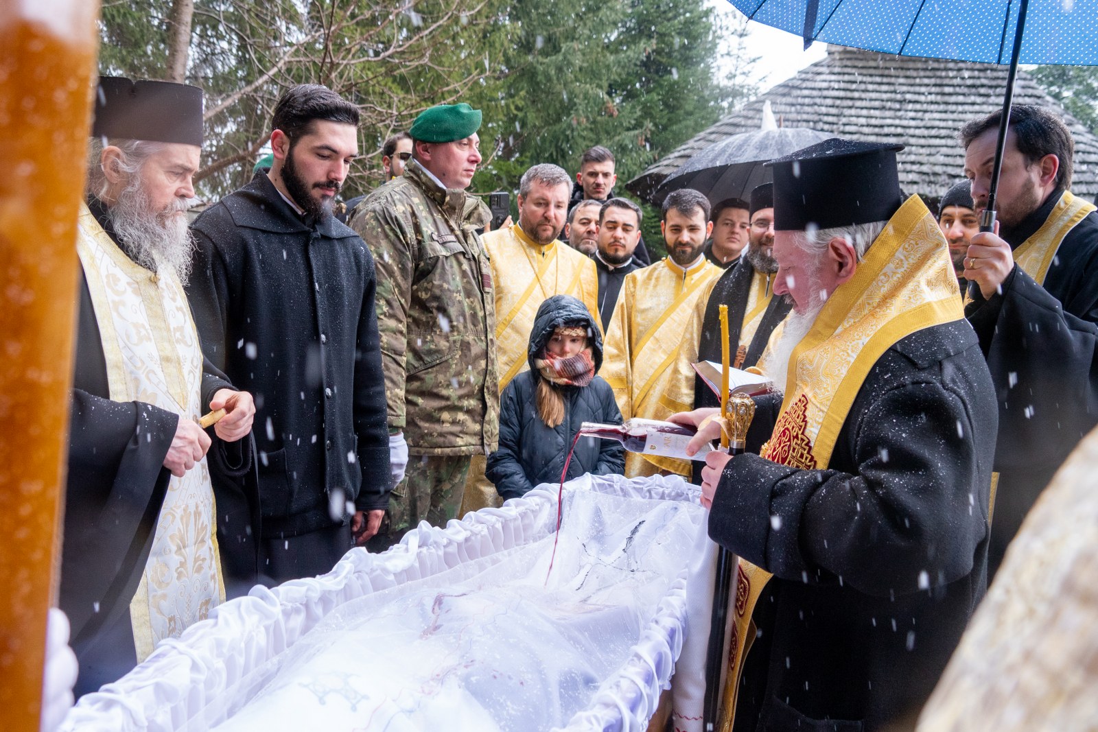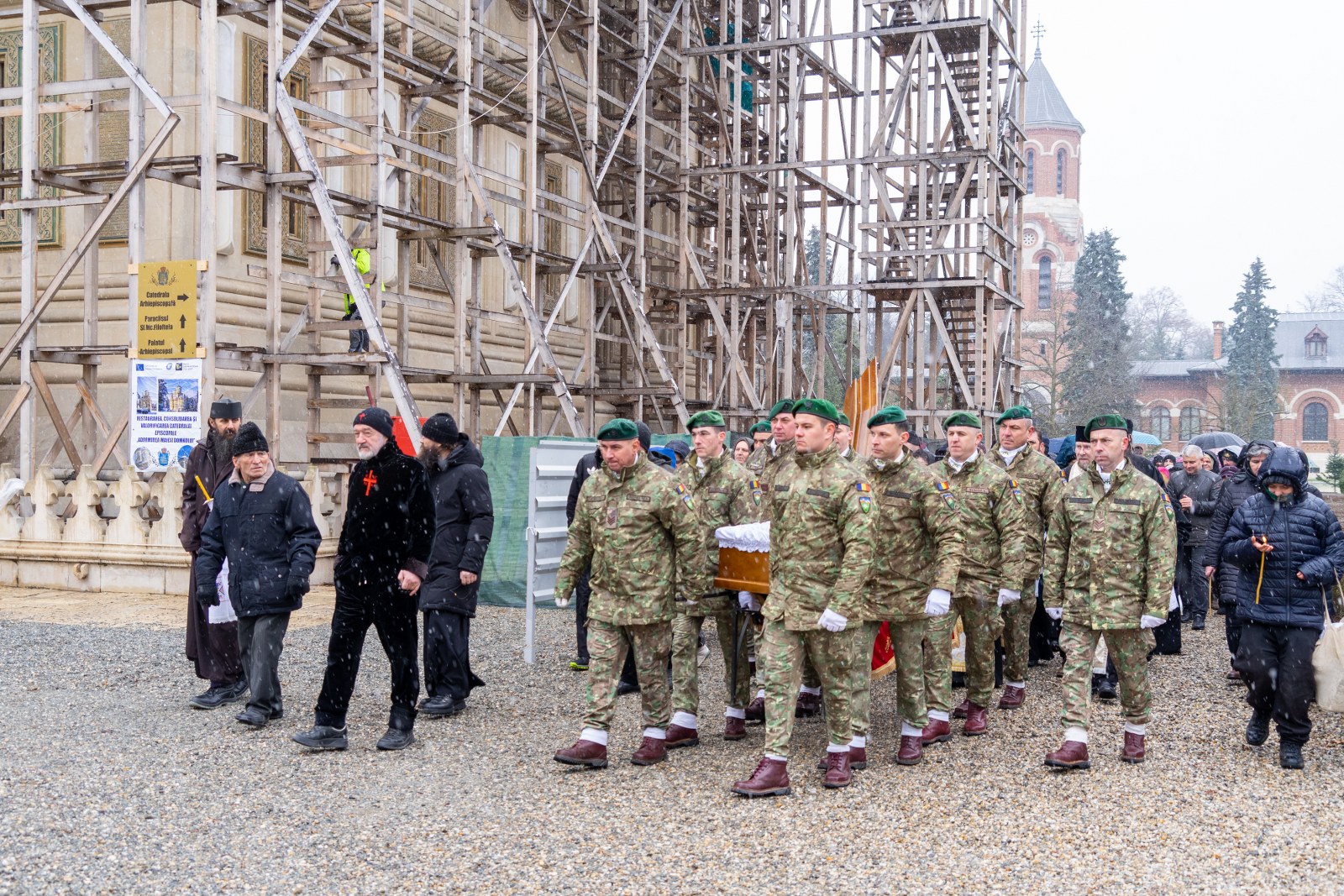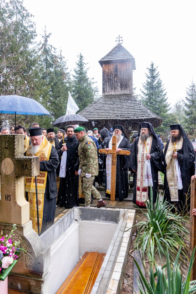 La final, sicriul cu trupul neînsufleţit, purtat de militarii Batalionului 33 Vânători de Munte „Posada” din Curtea de Argeș, a fost depus în aşteptarea învierii de obşte în cimitirul Mănăstirii Curtea de Argeş cu onoruri militare, în prezenţa numerosului sobor de slujitori şi a unei impresionante mulţimi de oameni veniţi să înalţe rugăciune pentru sufletul celui ce le‑a fost duhovnic şi îndrumător.
