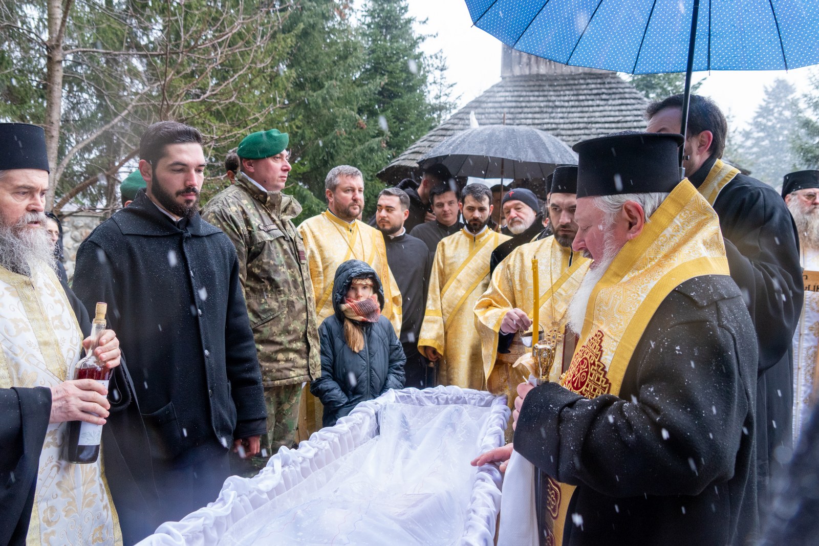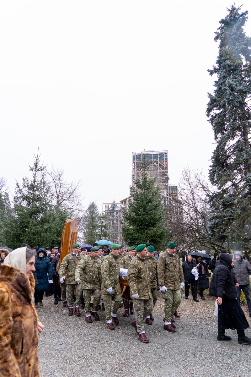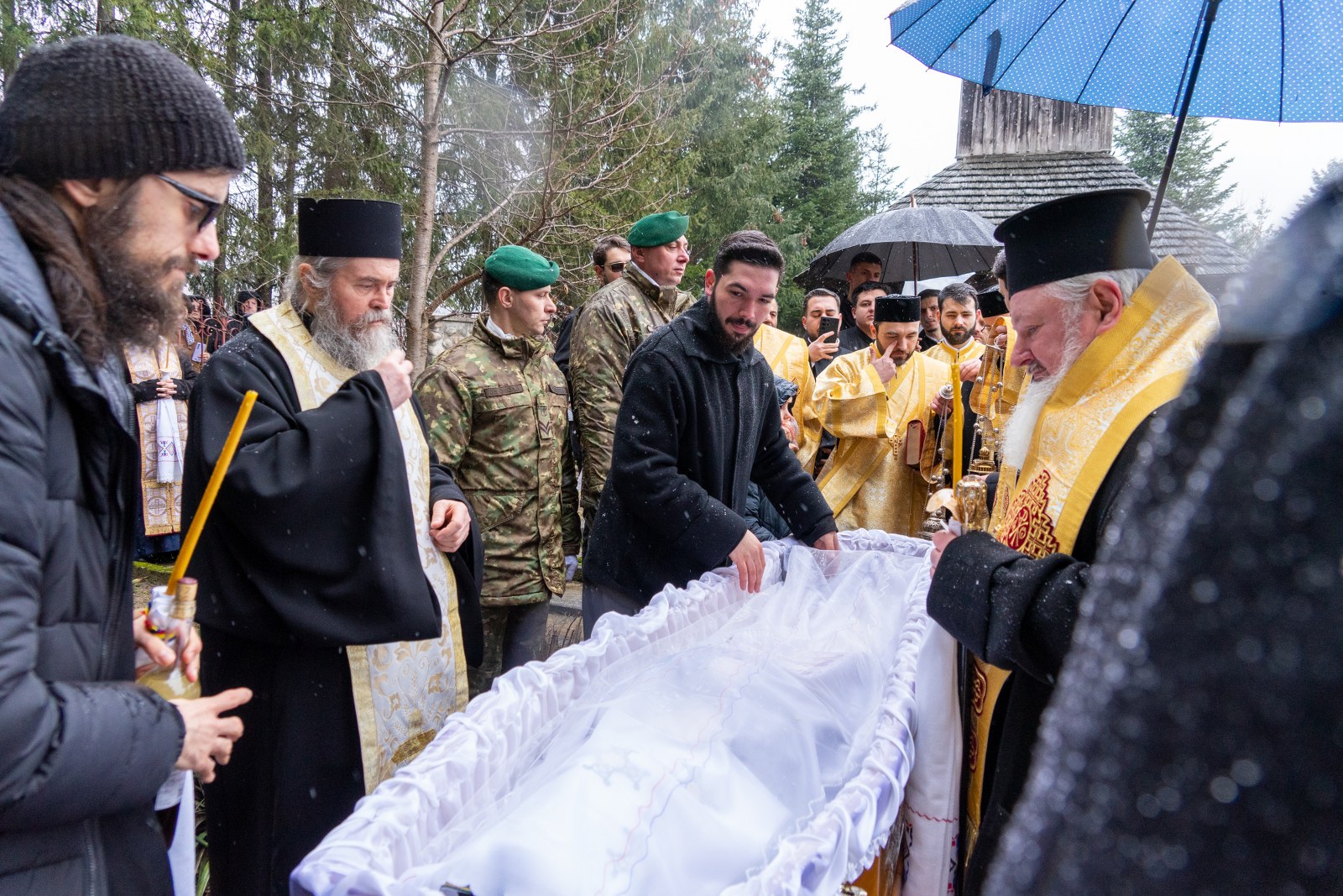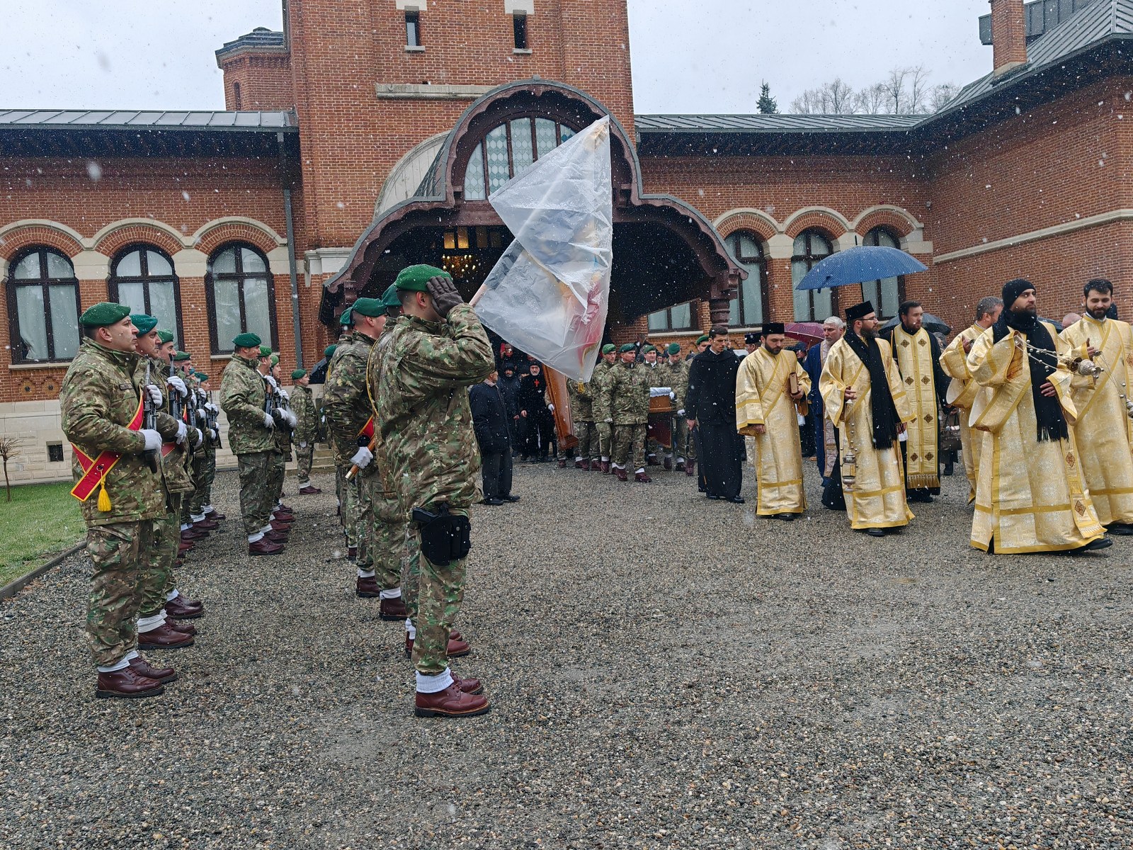 La final, sicriul cu trupul neînsufleţit, purtat de militarii Batalionului 33 Vânători de Munte „Posada” din Curtea de Argeș, a fost depus în aşteptarea învierii de obşte în cimitirul Mănăstirii Curtea de Argeş cu onoruri militare, în prezenţa numerosului sobor de slujitori şi a unei impresionante mulţimi de oameni veniţi să înalţe rugăciune pentru sufletul celui ce le‑a fost duhovnic şi îndrumător.