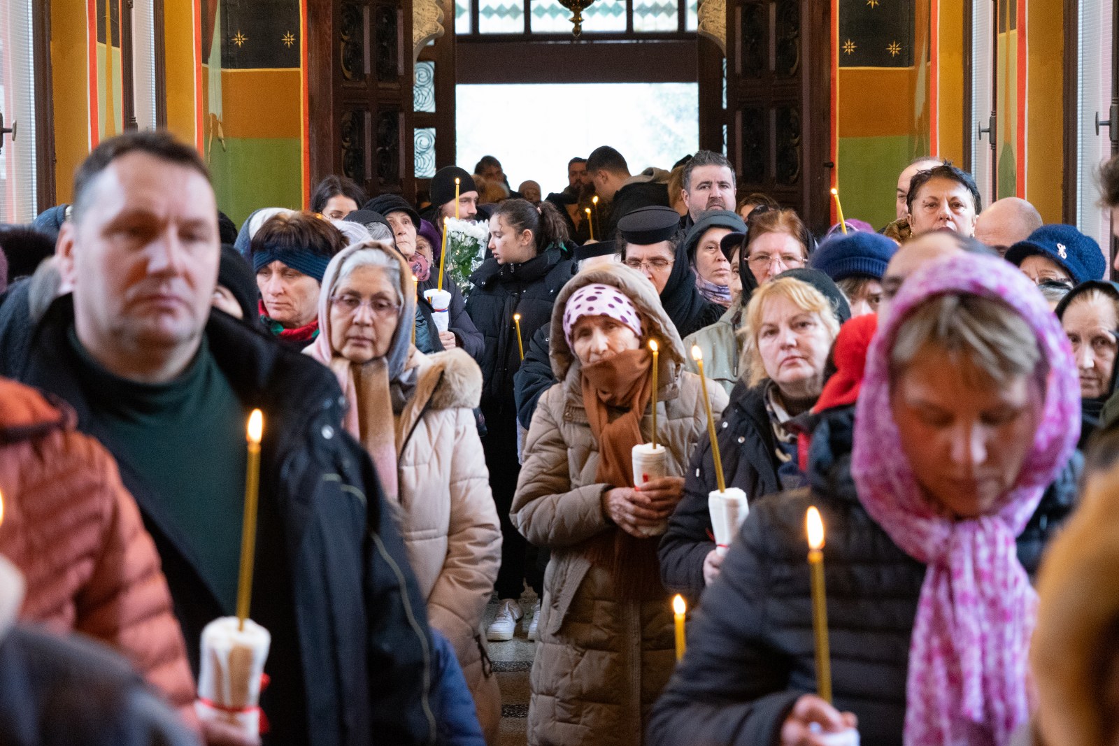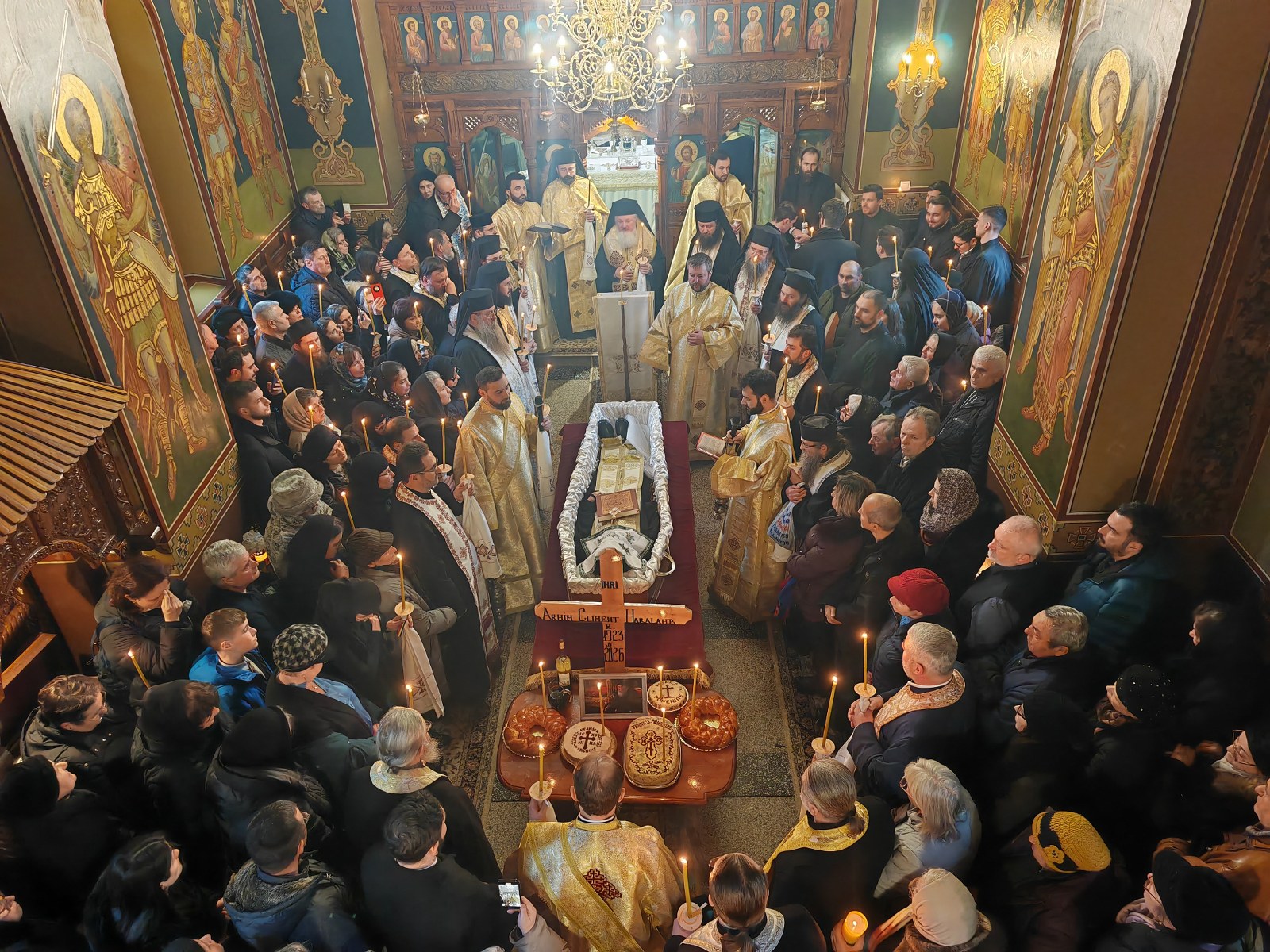 Slujba a fost oficiată de Preasfinţitul Părinte Varlaam Ploieşteanul, delegatul Preafericitului Părinte Patriarh Daniel și de Înaltpreasfințitul Părinte Calinic Argeșeanul, Arhiepiscop al Argeșului și Muscelului, dimpreună cu un numeros sobor de preoți și diaconi.
