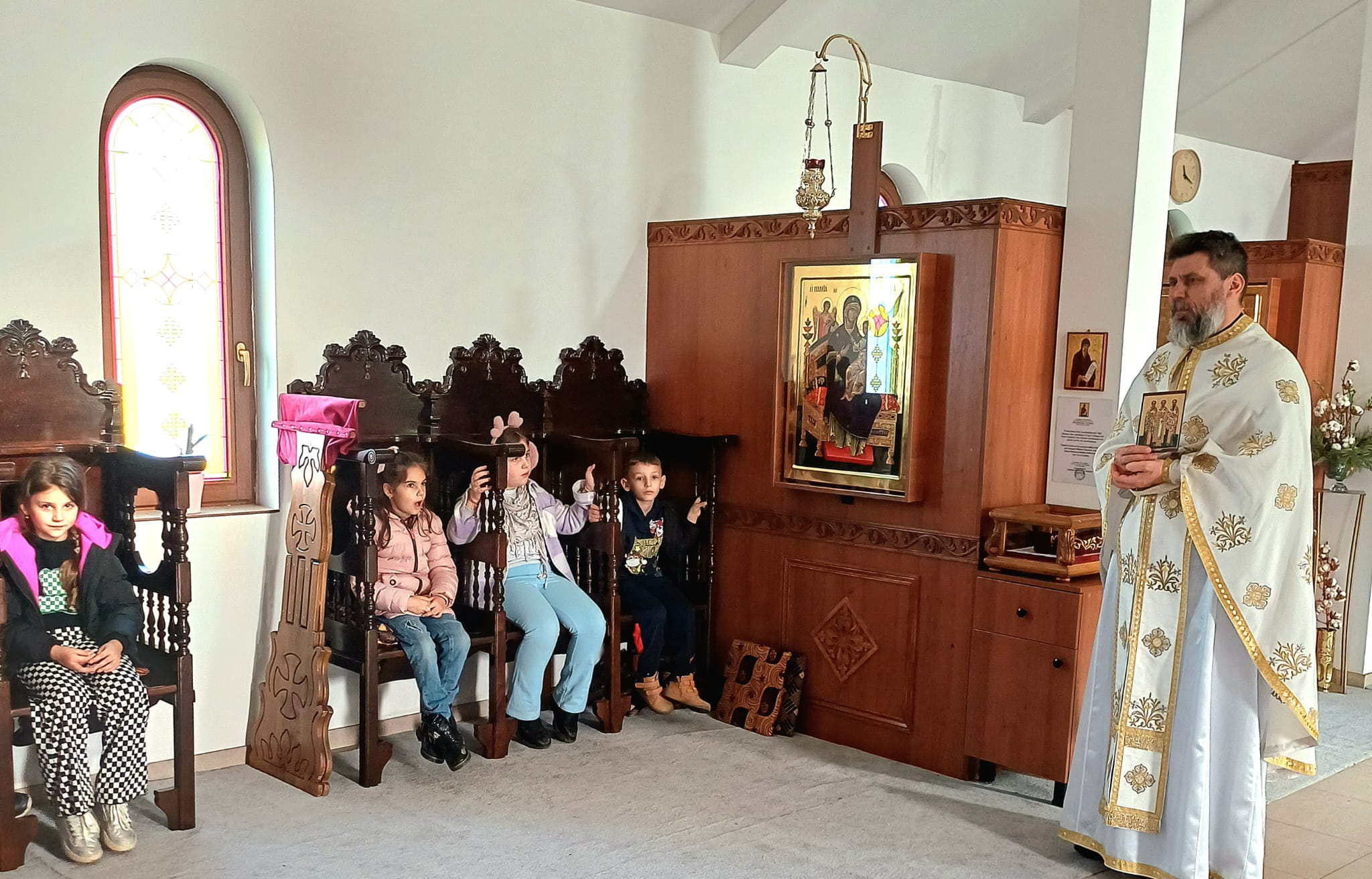 În continuare, Părintele Patriche Claudiu a susținut o scurtă cateheză, în care le-a vorbit elevilor despre modelul de iubire creat între oameni pe baza învățăturilor Domnului Iisus Hristos.