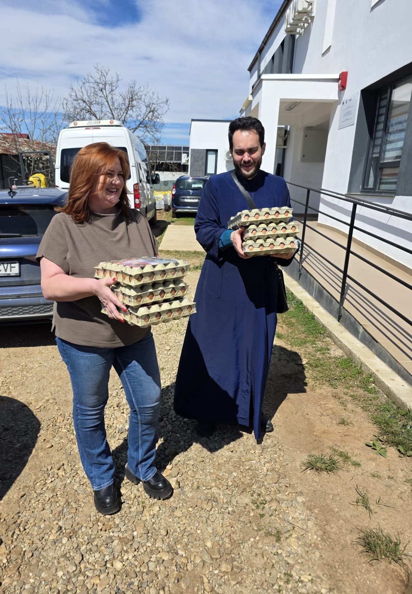 În același duh al milosteniei, un producător de alimente, a pus la dispoziție vopsea fără conservanți pentru ouăle de Paști și 200 de ouă, spre bucuria acestor copii.