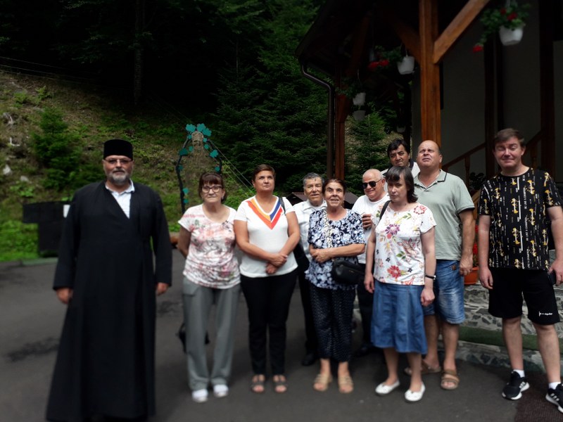 Părintele Constantin Radu Gabriel – slujitor la Paraclisul pentru nevăzători Sfinții Arhangheli Mihail și Gavriil, împreună cu doamna Martin Gabriel – Președintele Asociației Nevăzătorilor Argeș, au mers spre închinare și rugăciune cu un grup de 20 de credincioși.