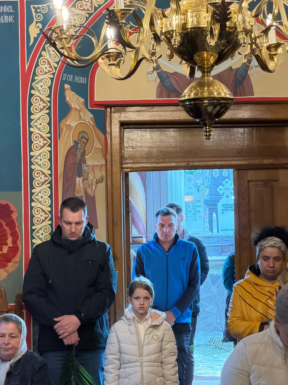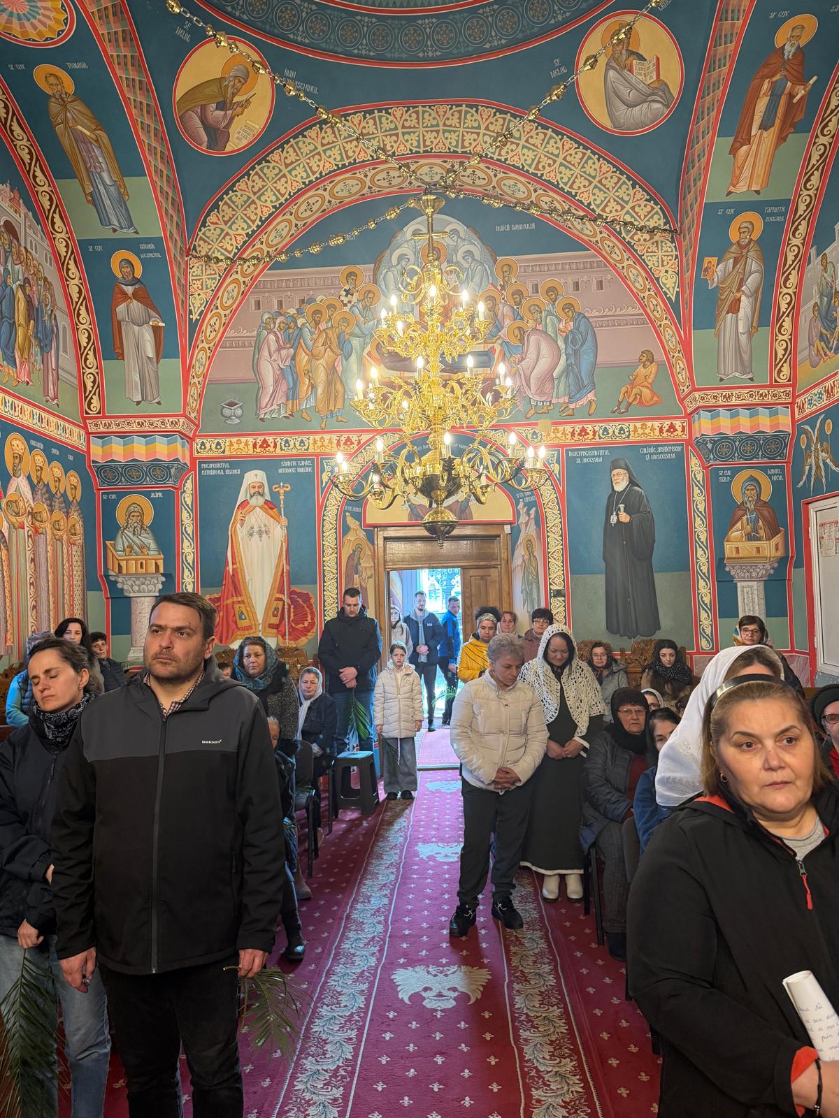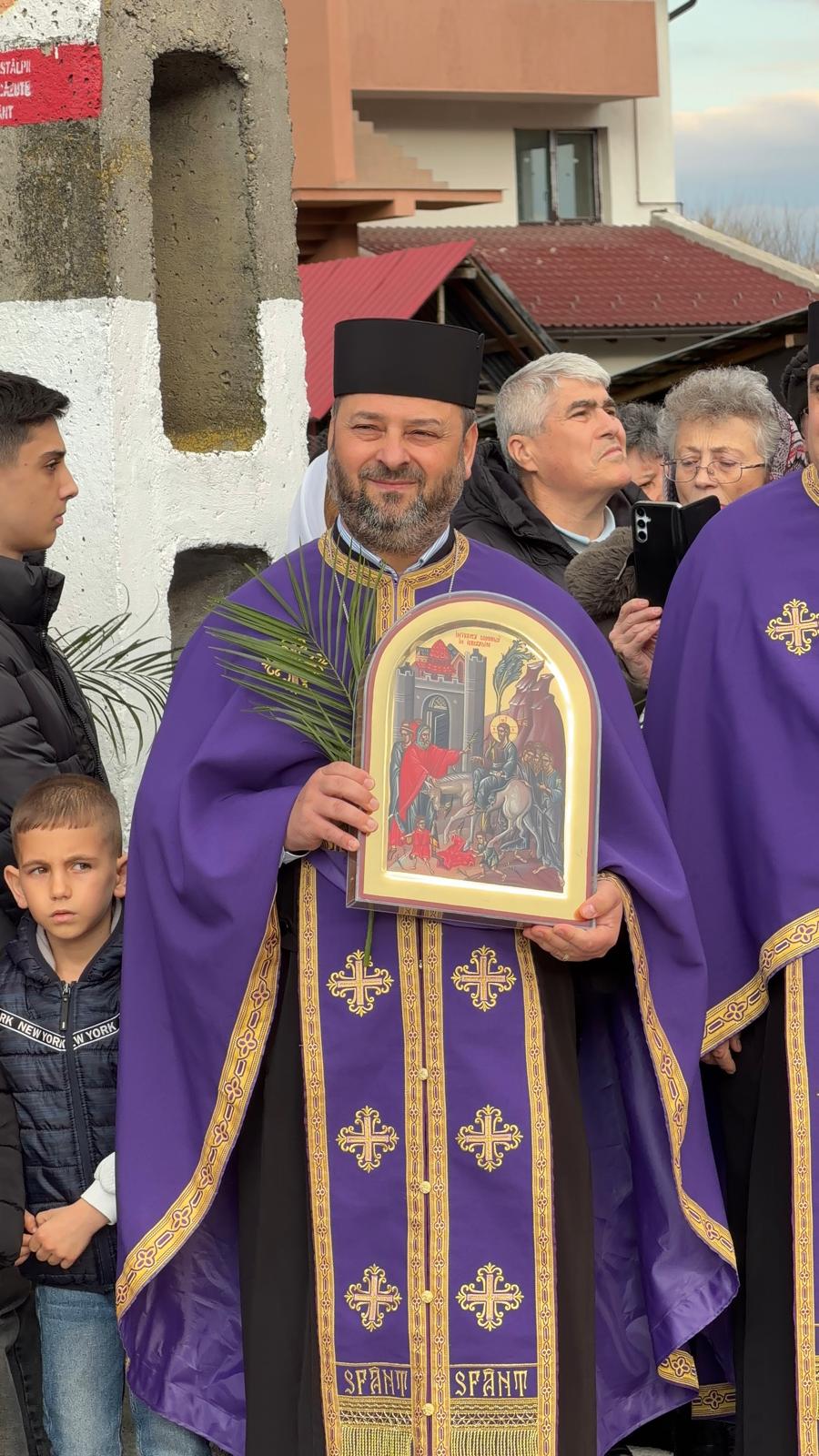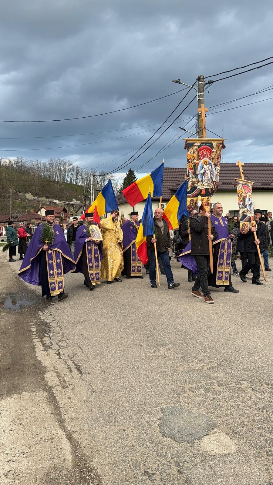 Preoții slujitori Robert Stan și Florin Păcioianu, înconjurați de numeroși credincioși au pornit cu ramuri de finic în mână și cântări bisericești, pornind de la o troiță reprezentativă a comunității către biserica parohială, unde au săvârșit slujba de seară.