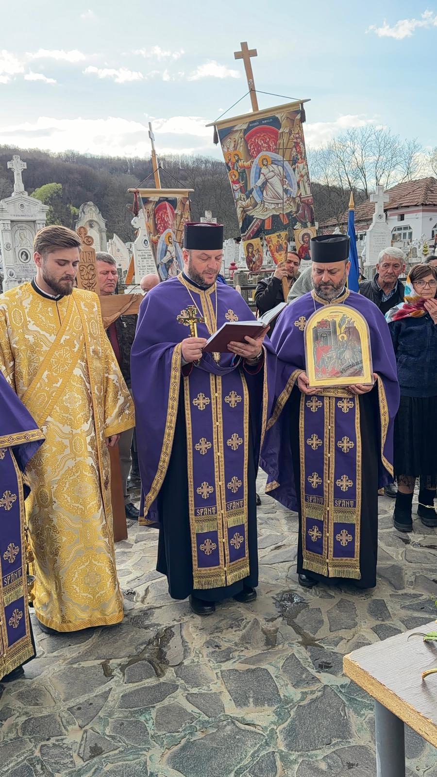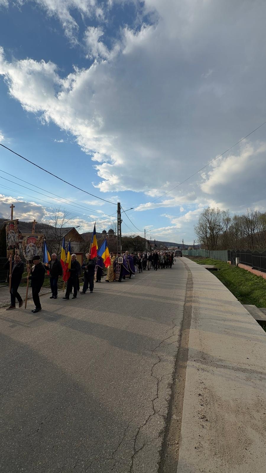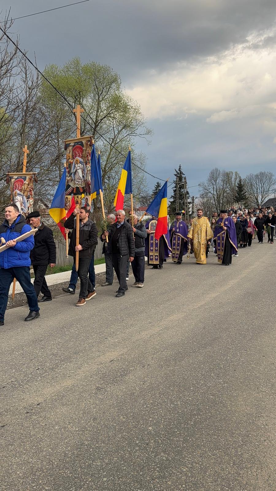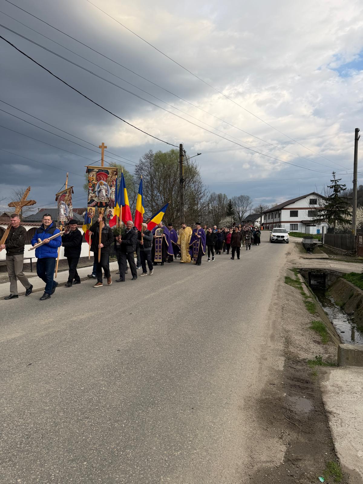 Preoții slujitori Robert Stan și Florin Păcioianu, înconjurați de numeroși credincioși au pornit cu ramuri de finic în mână și cântări bisericești, pornind de la o troiță reprezentativă a comunității către biserica parohială, unde au săvârșit slujba de seară.
