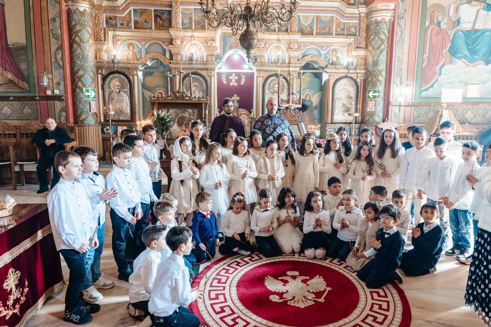 Copiii au fost coordonați de doamnele Ioana Camelia Gagiu, Florina Protopopescu, Dana Maria Nițu și Maria Pădurean, și au cântat pricesne închinate Sfintei Cruci.