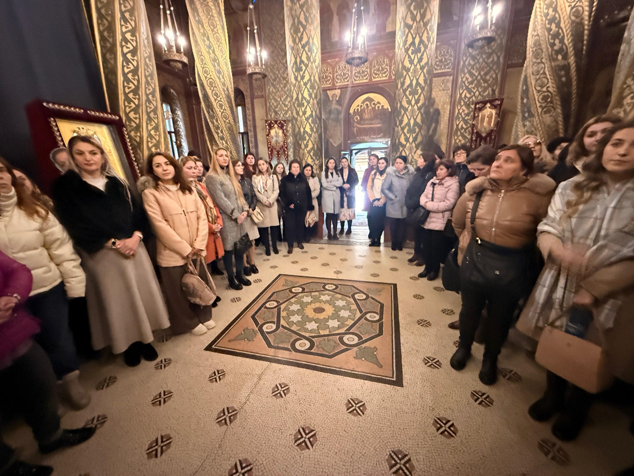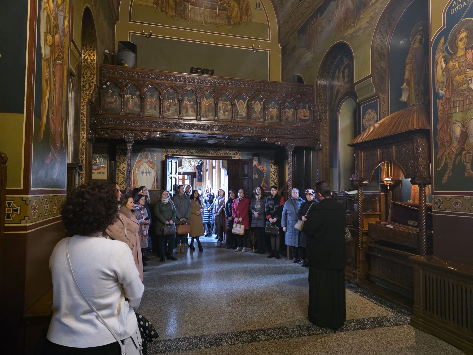 Părintele Adrian Enache i-a însoțit pe oaspeți în Sala Manole, unde este prezentată în pictură legenda Meșterului Manole, Paraclisul  ce a  adăpostit vreme de mai bine de 100 de ani racla cu Moaștele Sfintei  Mucenițe Filoteea, Muzeul Arhiepiscopal care deține o colecție impresionantă de obiecte de patrimoniu ce oferă o incursiune în istorie de cinci secole, demisolul, precum și Biserica din lemn. De-asemenea,cadrele didactice din învățământul preșcolar din  zona Curtea de Argeș,coordonator -Preot Florentin Ungurenus , au vizitat Catedrala Voievodală iar după aceea s-au bucurat de Paraclisul restaurat  recent.