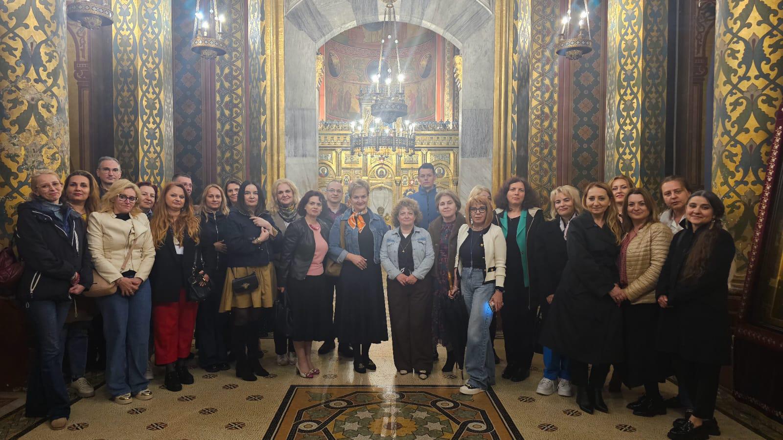 Cu binecuvântarea Înaltpreasfințitului Părinte Arhiepiscop Calinic Argeșeanul delegația a fost întâmpinată de părintele Adrian Enache, care i-a însoțit pe distinșii profesori în Catedrala Sfântului Voievod Neagoe Basarab -Domn al păcii și al culturii ,în Sala Manole din Palatul Mitropolitan ,Paraclisul Mănăstirii și Muzeul Arhiepiscopal ,prezentându-le aspecte din istoria locului.