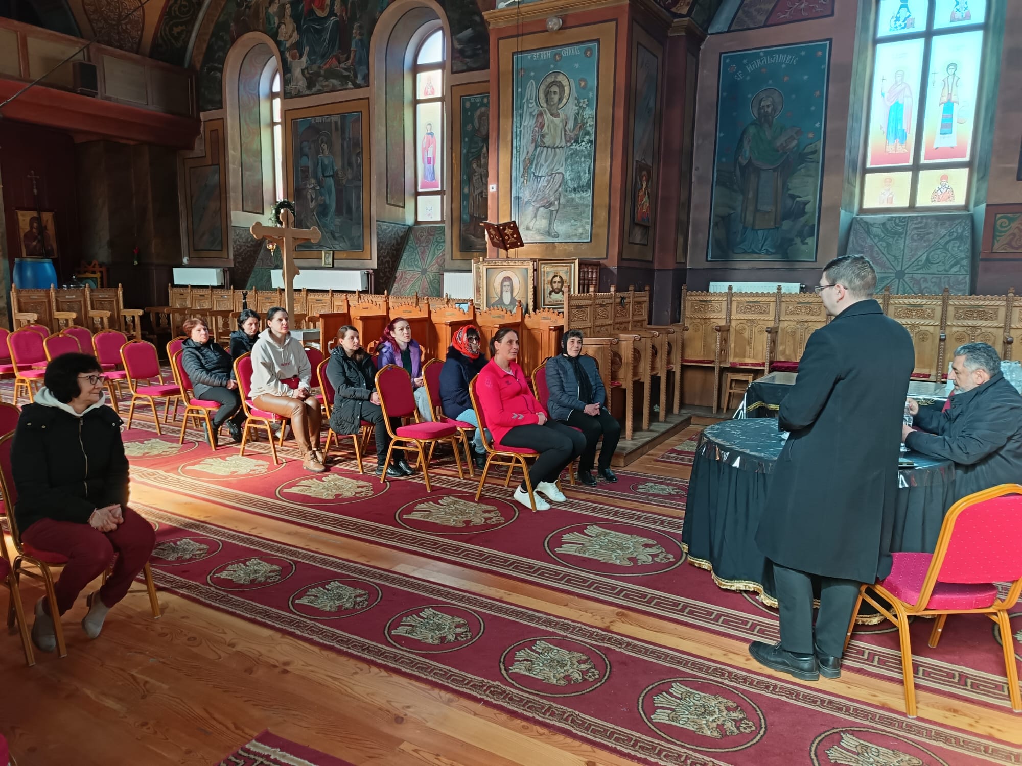 Prima sesiune din cadrul segmentului ,,Școala Părinților” s-a desfășurat cu binecuvântarea Înaltpreasfințitului Calinic și îndrumarea P. C. preot Dan Obrocea, consilier eparhial al Sectorului Învățământ și Activități cu Tineretul – Biroul de catehizare al Arhiepiscopiei Argeșului și Muscelului, la parohia Rucăr de Jos, Protoieria Câmpulung Muscel, în ziua de 9 martie 2026. Preotul slujitor Arsulescu Ion Sebastian, instructor socio-educațional 52 în cadrul Proiectului ,,Centrul de activități cu tineretul Sf. Ilie Tesviteanul”, a invitat la Sfânta Biserică, pe cei 15 părinți, selectați a face parte din grupul țintă al Proiectului. Activitatea a debutat în prezența P. C. Preot Prof. Univ. Dr. Constantin Pătuleanu – Expert educație parentală, și a d-lui Prof. Nicu Popa, specialist relații sociale, responsabil cu programul “Școala Părinților ” din cadrul proiectului Centrul de activități cu tineretul Sf. Ilie Tesviteanul “, prin rostirea în comun a rugăciunii ,,Tatăl nostru”.