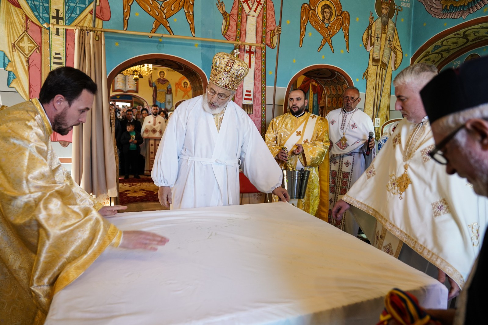 Slujba de resfințire a fost oficiată de Înaltpreasfințitul Părinte Calinic Argeșeanul, Arhiepiscop al Argeșului și Muscelului, înconjurat de un sobor de preoți și diaconi. Cu acest prilej, s-a săvârșit un parastas pentru ctitorii, slujitorii și binefăcătorii sfântului locaș, care au trecut la Domnul.