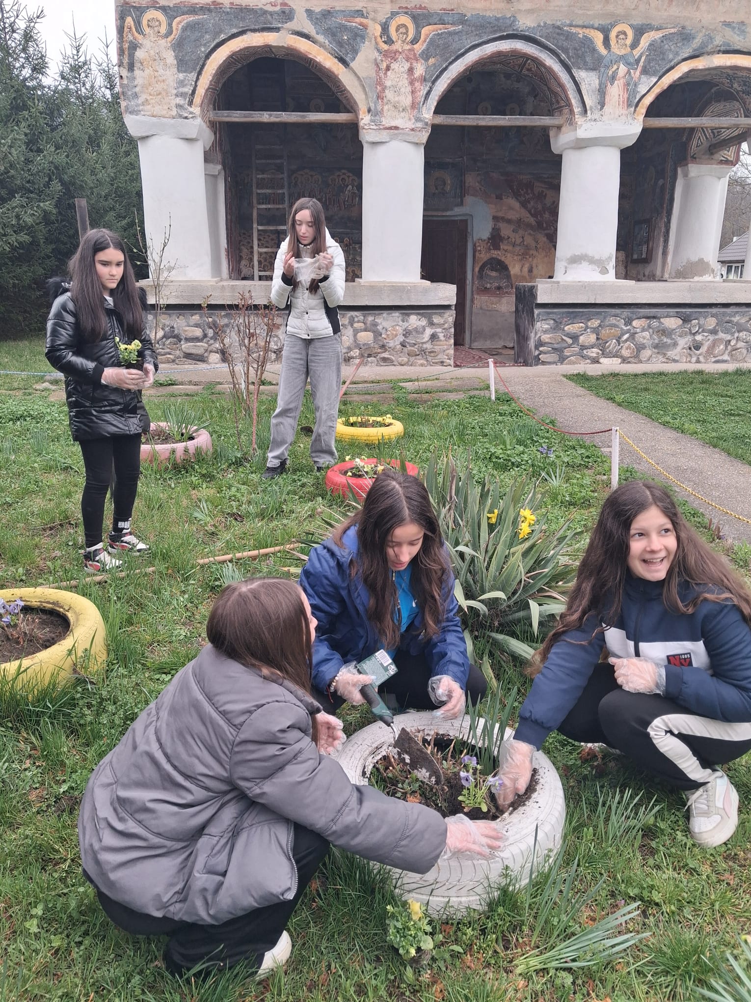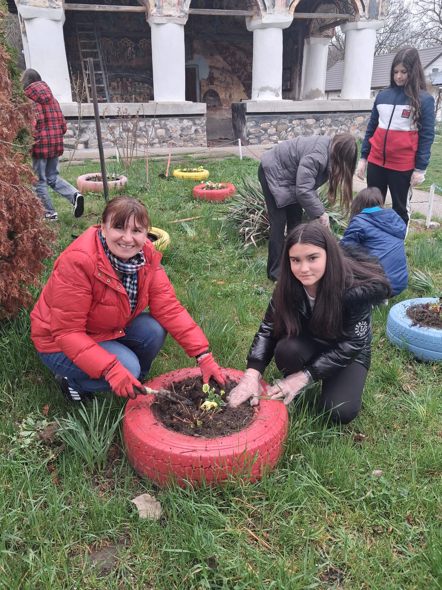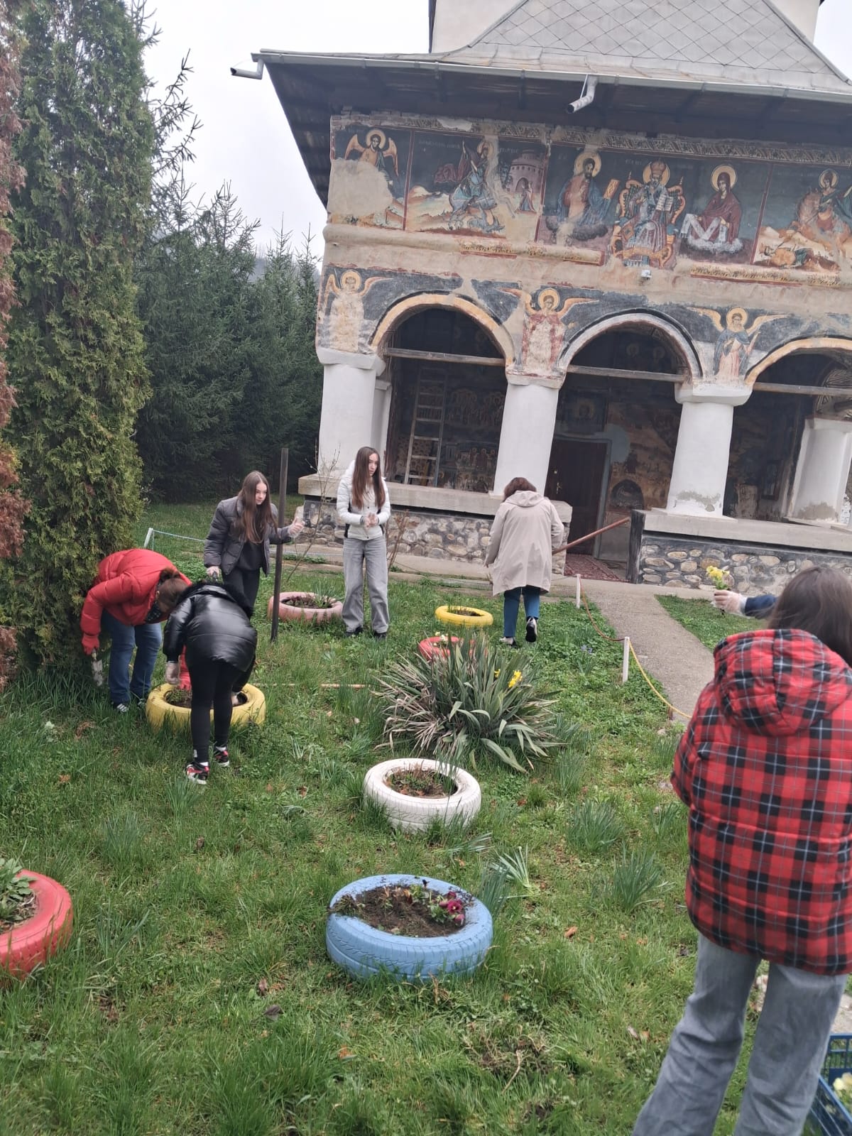 Continuarea activității în plan practic, prin acțiunea „Să înfrumusețăm curtea Bisericii”, a transpus în mod concret principiile discutate anterior, oferind elevilor oportunitatea de a transforma reflecția în faptă. Participarea elevilor, însoțiți de doamna profesoară de religie Ana Maria Sabie și de părinți, la plantarea de flori în incinta Bisericii „Sfântul Nicolae” din Ciofrângeni, a reprezentat mai mult decât o simplă activitate de voluntariat. Aceasta a devenit o veritabilă experiență de comuniune, în care efortul colectiv a fost orientat spre înfrumusețarea unui spațiu sacru, simbol al prezenței lui Dumnezeu în mijlocul comunității.