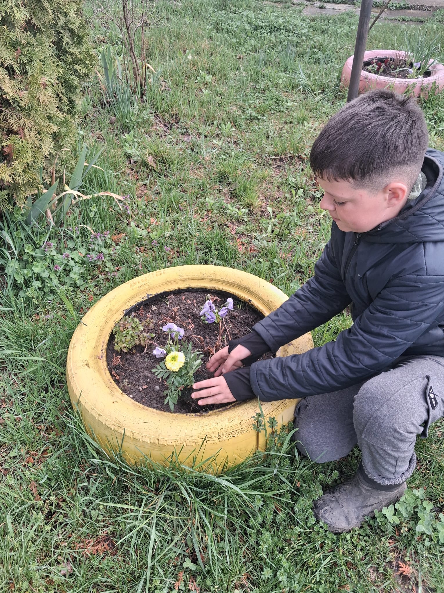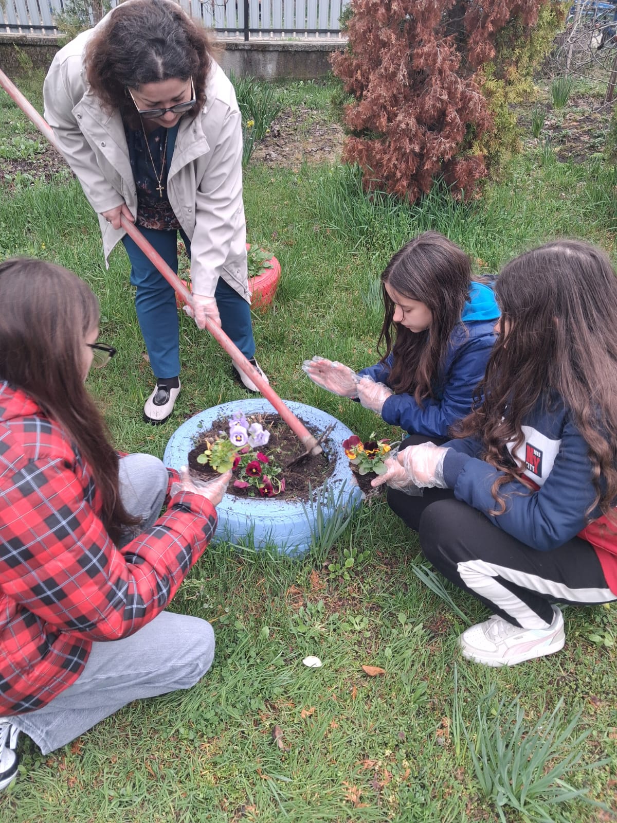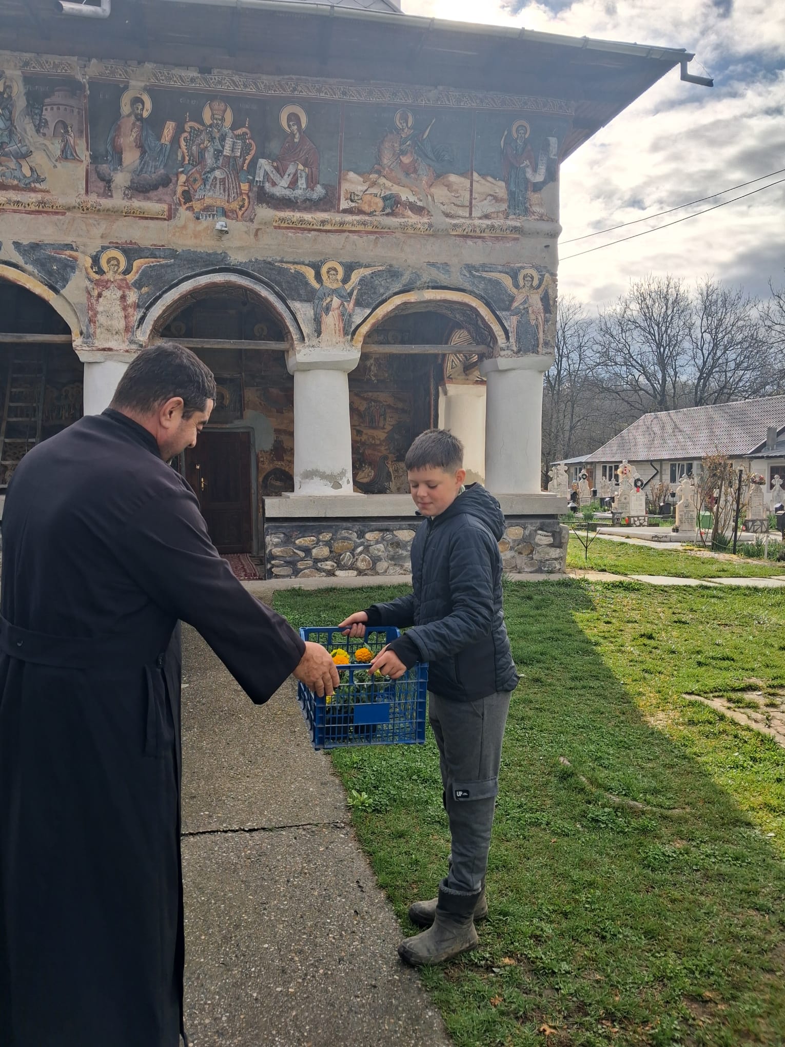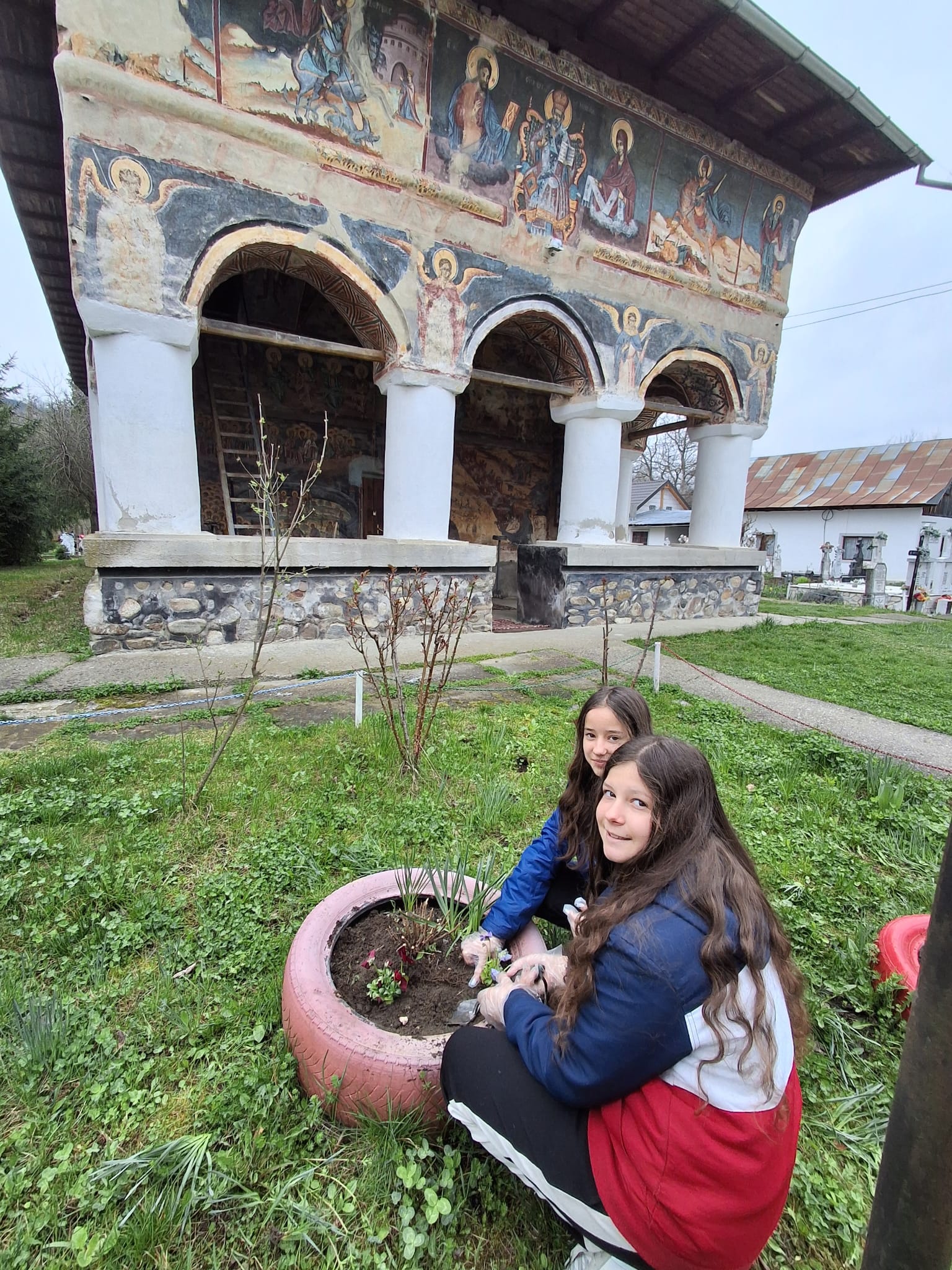 Continuarea activității în plan practic, prin acțiunea „Să înfrumusețăm curtea Bisericii”, a transpus în mod concret principiile discutate anterior, oferind elevilor oportunitatea de a transforma reflecția în faptă. Participarea elevilor, însoțiți de doamna profesoară de religie Ana Maria Sabie și de părinți, la plantarea de flori în incinta Bisericii „Sfântul Nicolae” din Ciofrângeni, a reprezentat mai mult decât o simplă activitate de voluntariat. Aceasta a devenit o veritabilă experiență de comuniune, în care efortul colectiv a fost orientat spre înfrumusețarea unui spațiu sacru, simbol al prezenței lui Dumnezeu în mijlocul comunității.