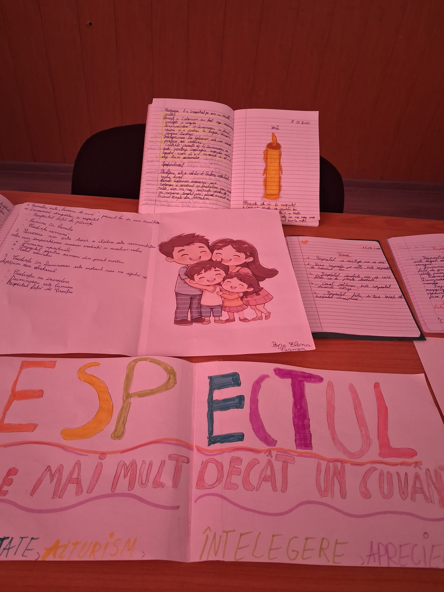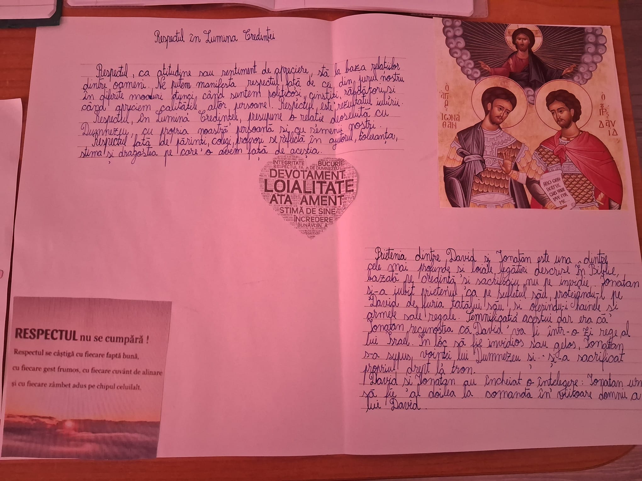 Prima etapă a activității, centrată pe prezentarea proiectelor religioase cu tema „Respectul în lumina credinței”, a evidențiat capacitatea elevilor de a înțelege și de a interioriza o virtute fundamentală a vieții creștine. Respectul, ca expresie a iubirii aproapelui și a recunoașterii demnității fiecărei persoane, își găsește temeiul în învățătura evanghelică, unde omul este chemat să devină chip viu al iubirii divine. Prin elaborarea și prezentarea acestor proiecte, elevii au fost provocați să reflecteze asupra modului în care respectul se manifestă în relațiile familiale, școlare și comunitare, conștientizând că această valoare nu reprezintă doar o normă socială, ci o exigență spirituală.