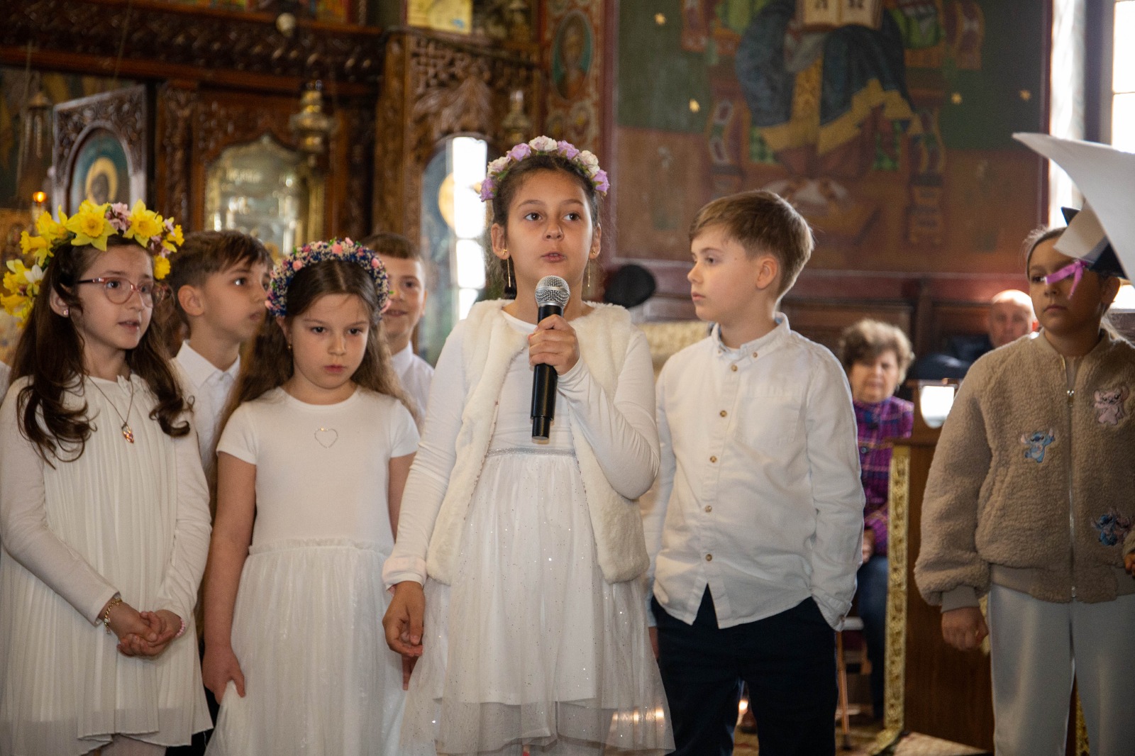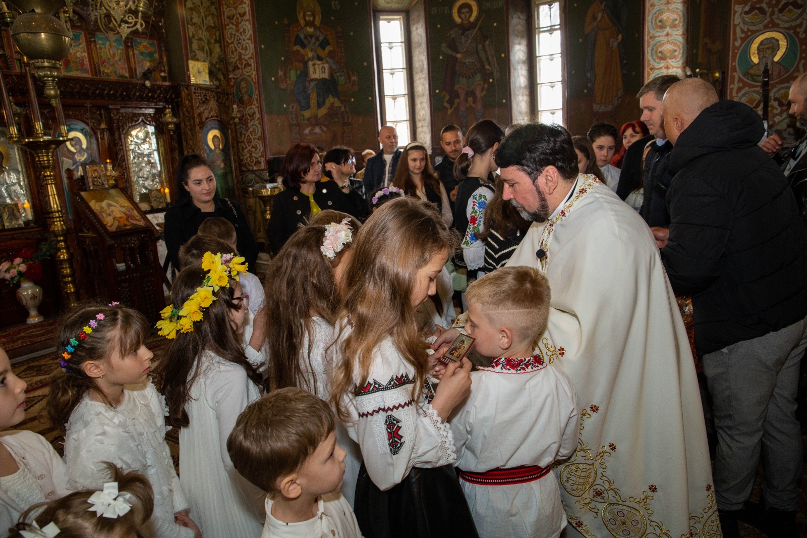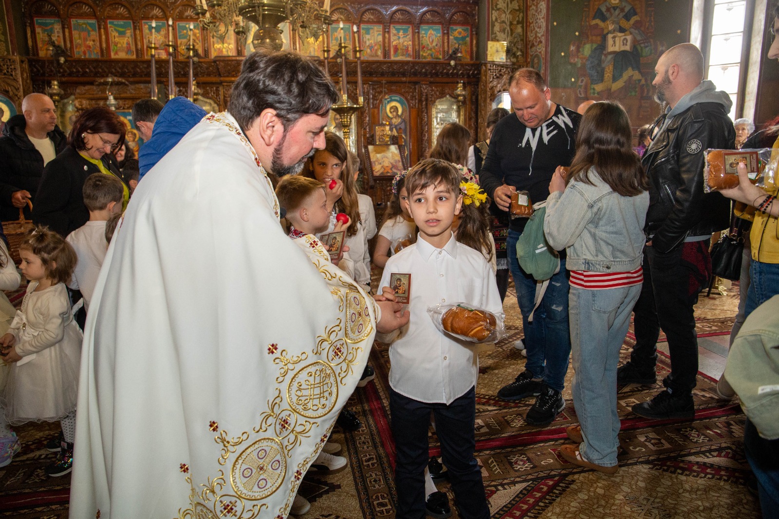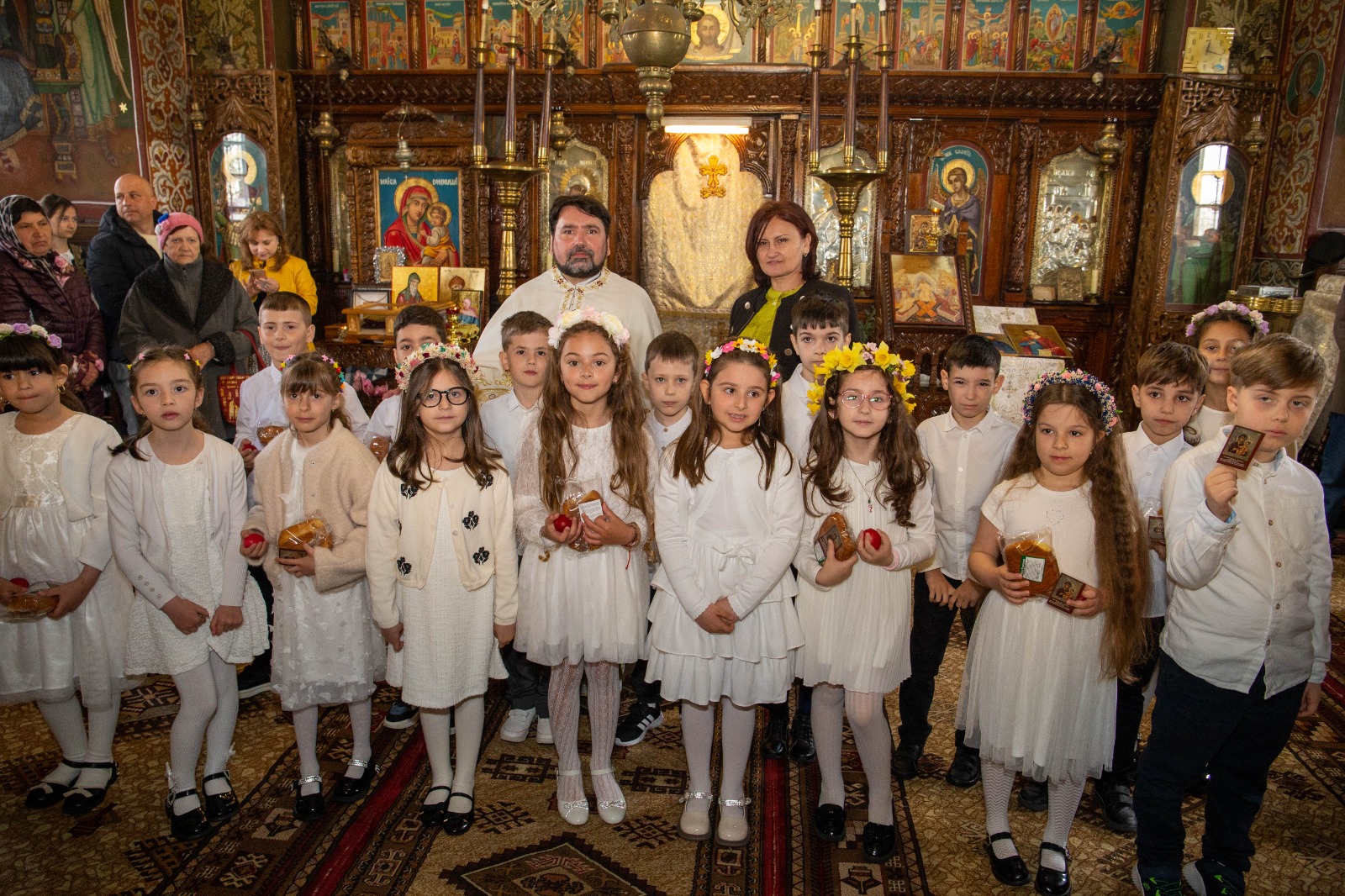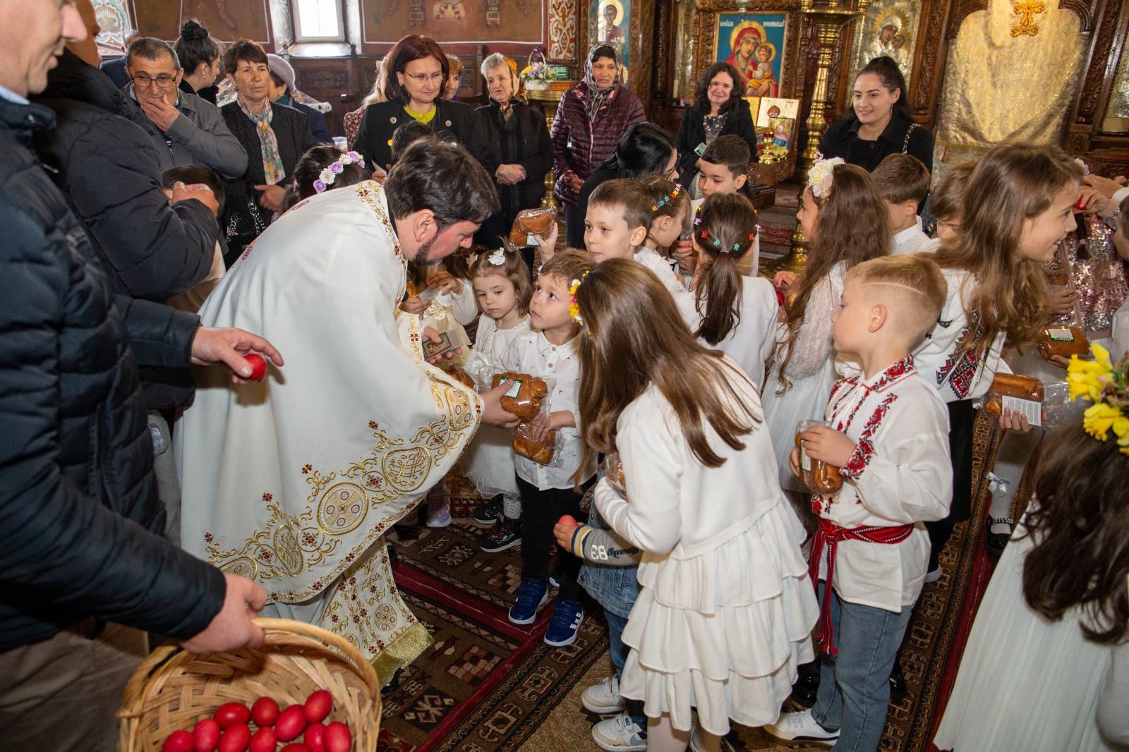La sfârșitul activității preotul slujitor Sîrbu Ion Cornel le-a vorbit copiilor despre însemnătatea Praznicului Împărătesc al Învierii și le-a oferit iconițe, ouă roșii și pască din partea parohiei.