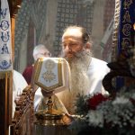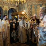 Ierarhul a săvârșit Sfânta Liturghie în biserica așezământului monahal, înconjurat de un sobor de preoți și diaconi, în prezența numeroșilor credincioși, care au venit să se roage și să primească Binecuvântare Arhierească.