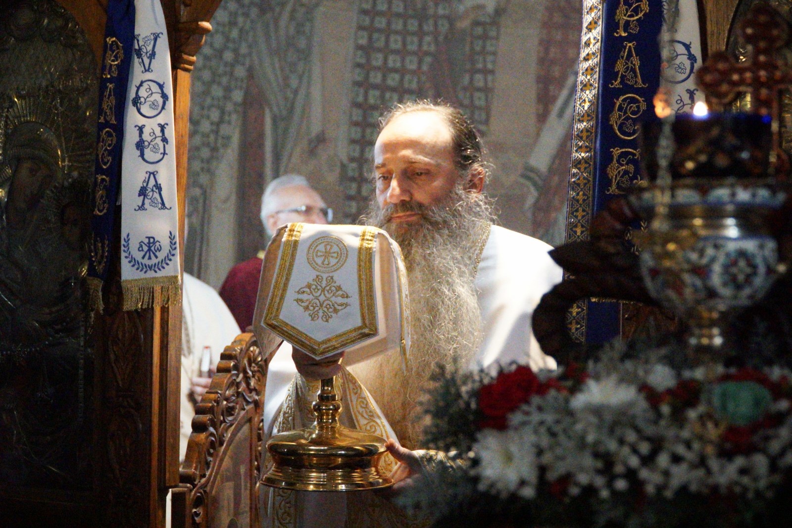 Ierarhul a săvârșit Sfânta Liturghie în biserica așezământului monahal, înconjurat de un sobor de preoți și diaconi, în prezența numeroșilor credincioși, care au venit să se roage și să primească Binecuvântare Arhierească.