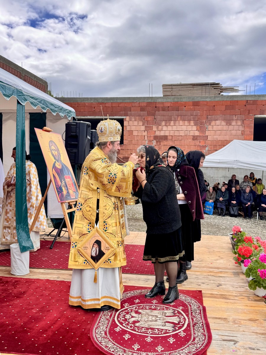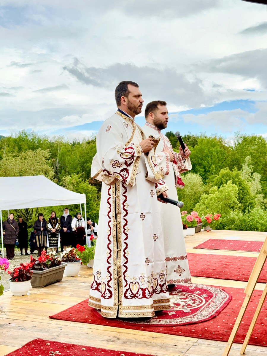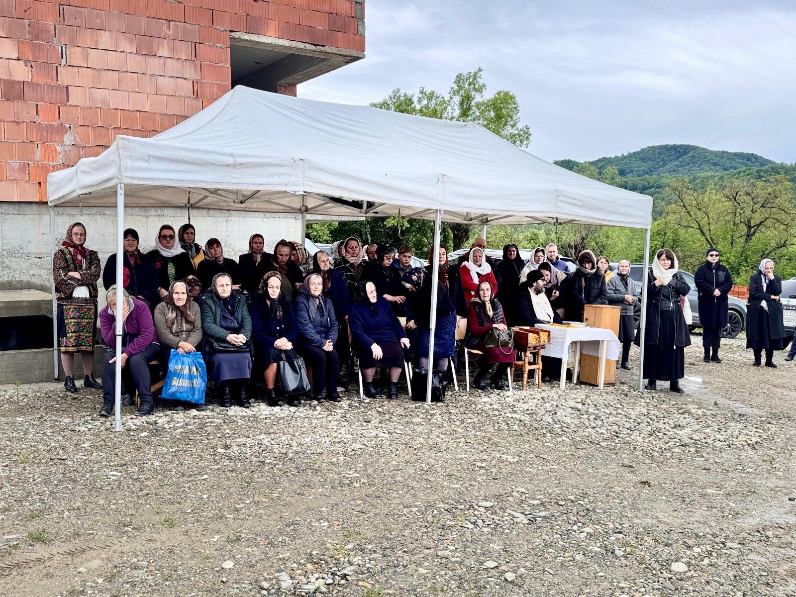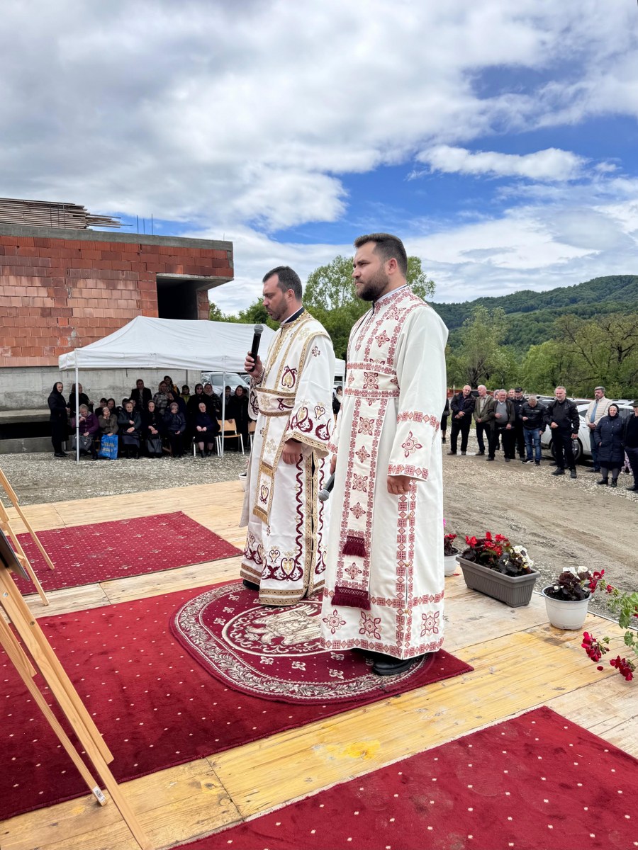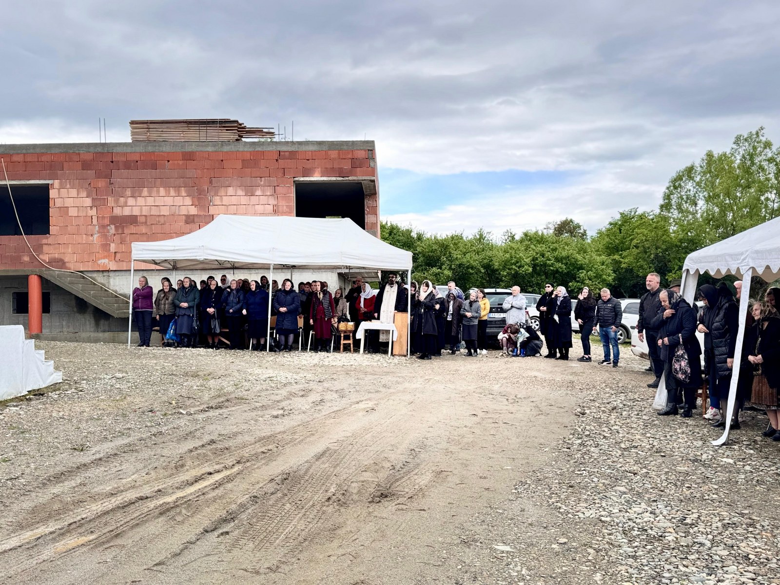 Pe o scenă special amenajată lângă locul construcției, Sfânta Liturghie a fost oficiată de Preasfințitul Siluan, Episcop al românilor ortodocși din Ungaria, împreună cu un sobor de preoți și diaconui.