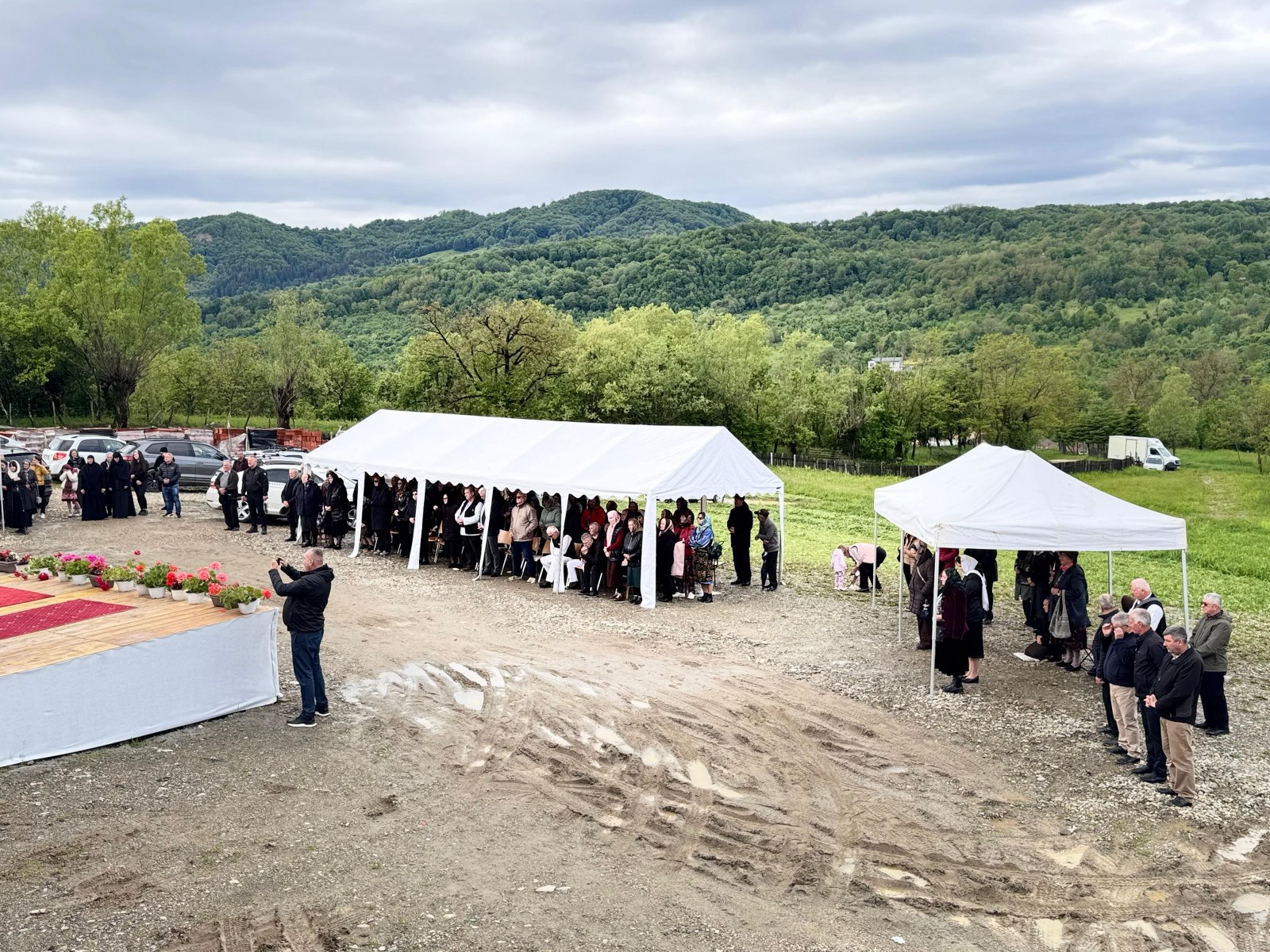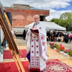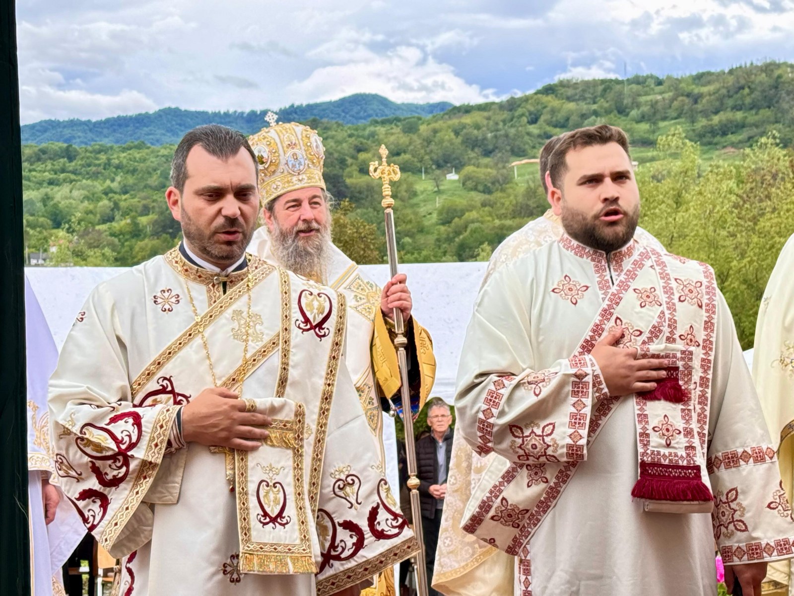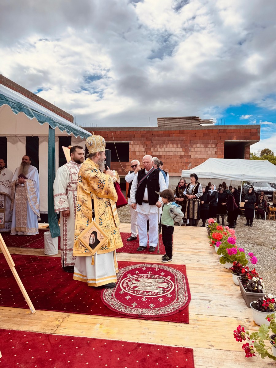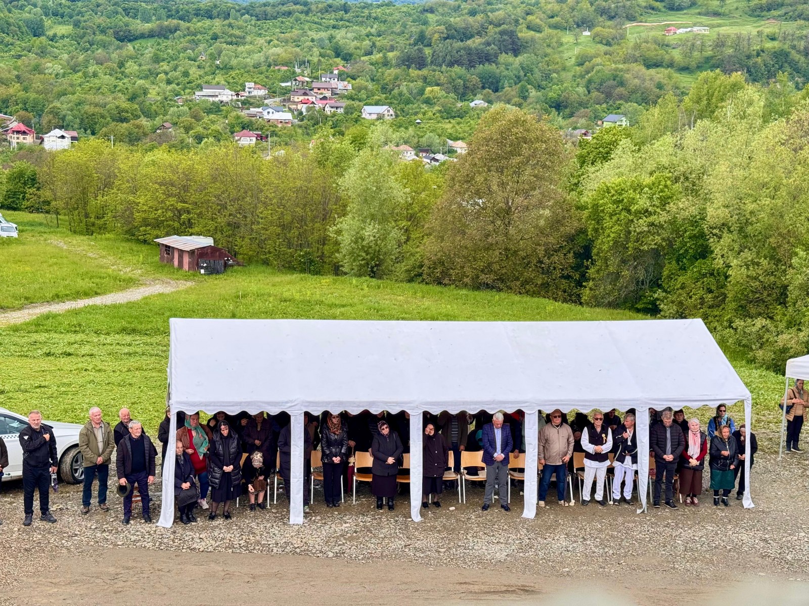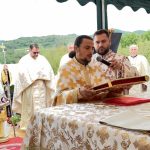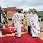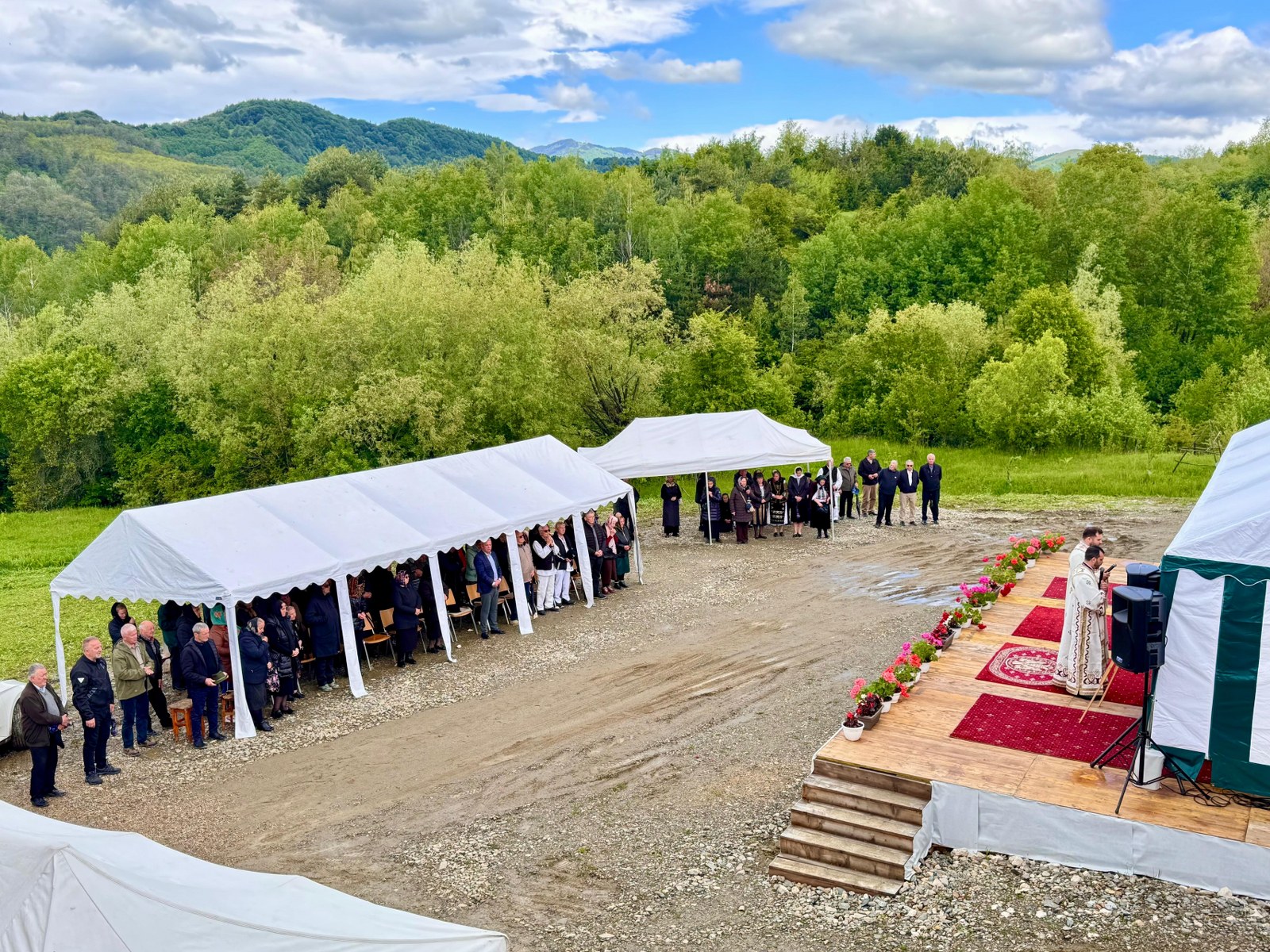 Pe o scenă special amenajată lângă locul construcției, Sfânta Liturghie a fost oficiată de Preasfințitul Siluan, Episcop al românilor ortodocși din Ungaria, împreună cu un sobor de preoți și diaconui.