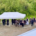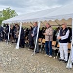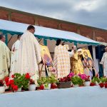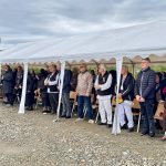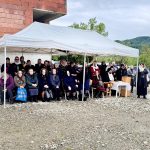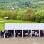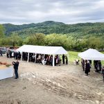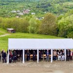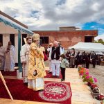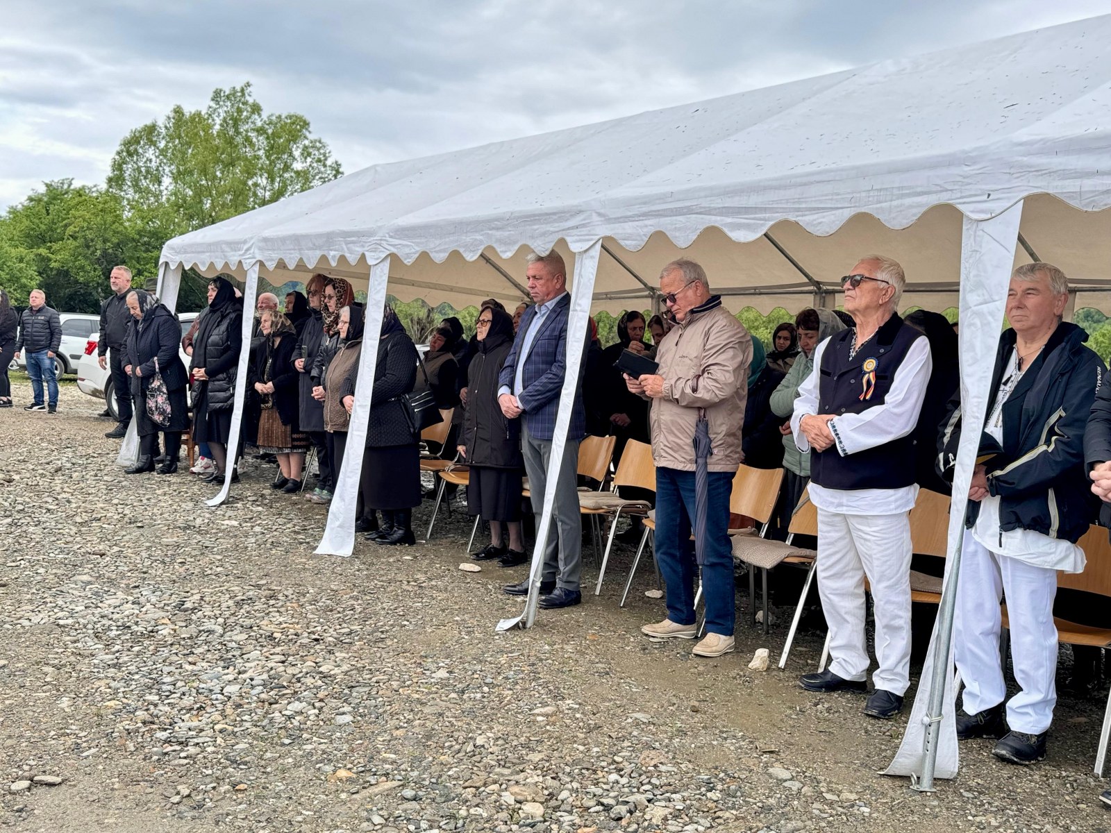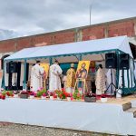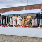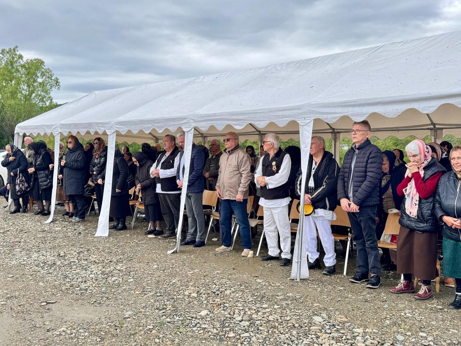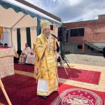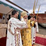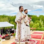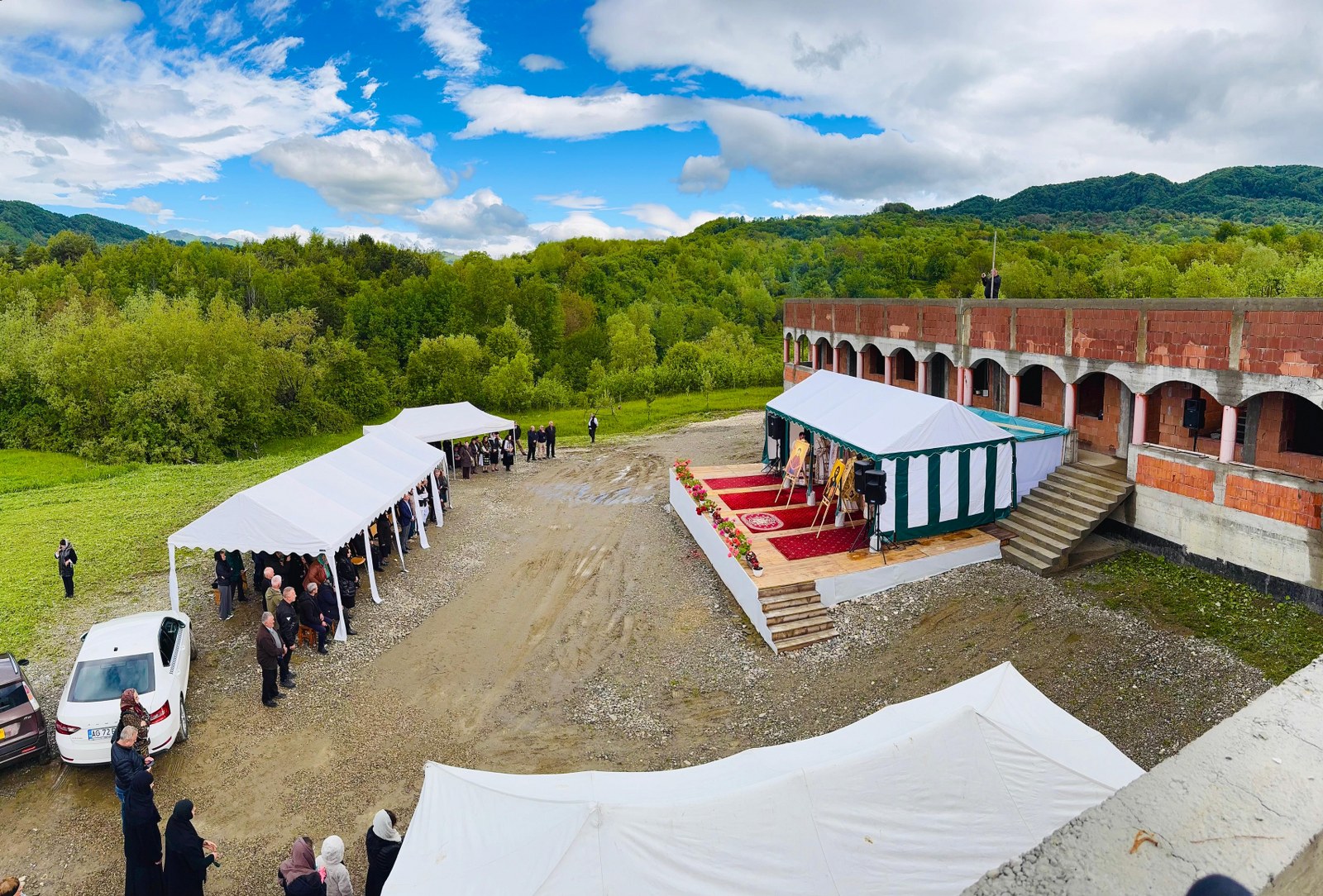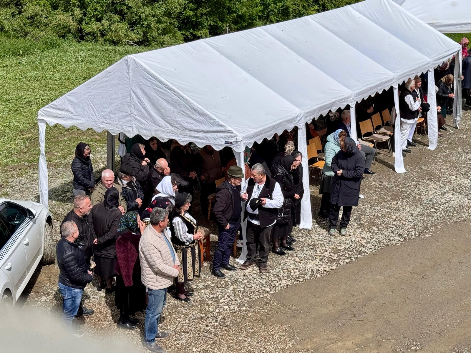 Pe o scenă special amenajată lângă locul construcției, Sfânta Liturghie a fost oficiată de Preasfințitul Siluan, Episcop al românilor ortodocși din Ungaria, împreună cu un sobor de preoți și diaconui.