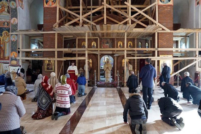 Chiriarhul Eparhiei a dorit să menționeze că lucrările de pictură executate în tehnica fresco în interiorul bisericii se apropie de finalizare, motiv pentru care peste 80% din schele au fost demontate.