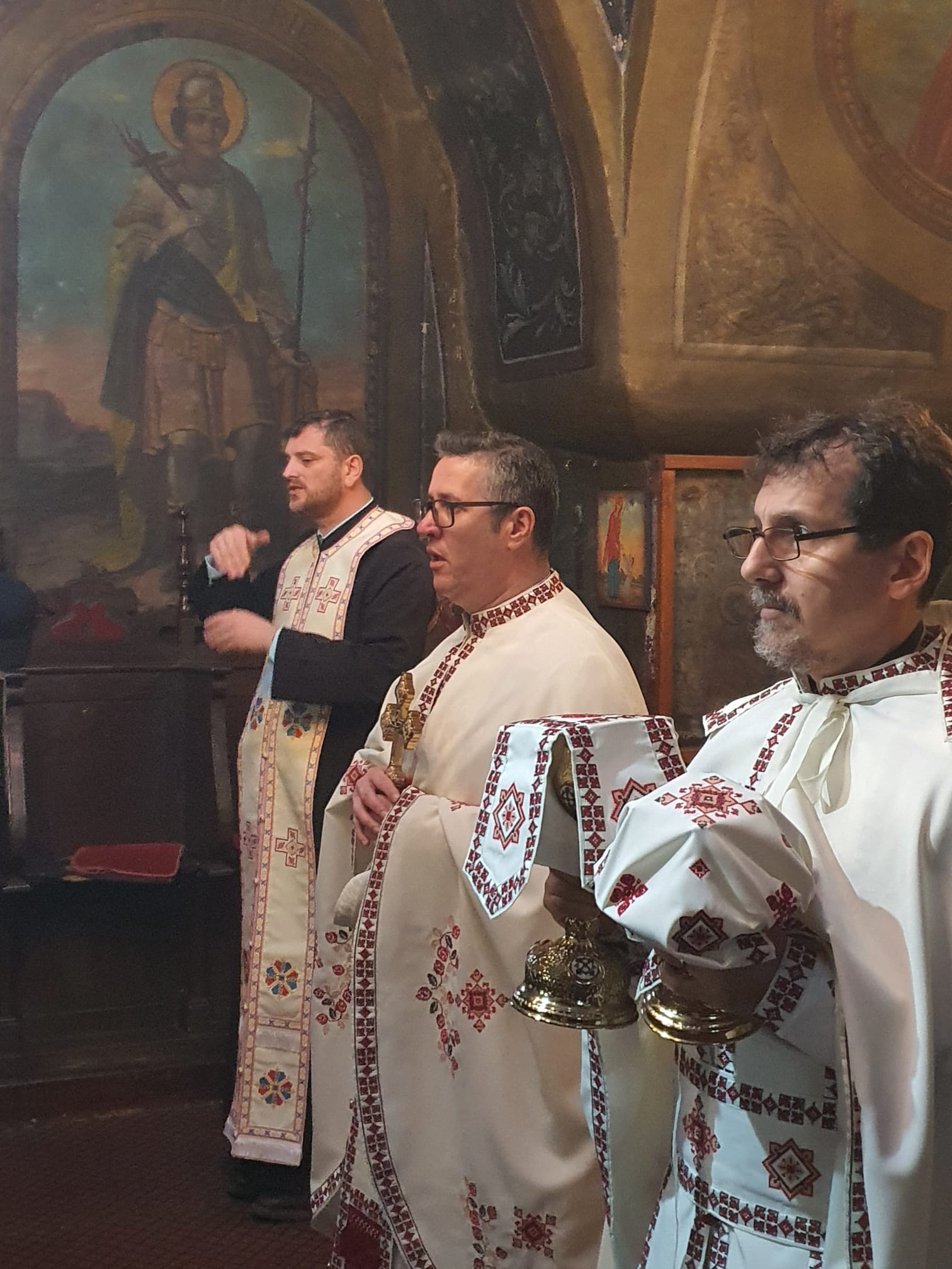 Preoții slujitori ai parohiei Marina, Ungureanu Marius și Grigorescu Ioan au slujit împreună cu părintele Istrate Cătălin – preot pentru persoane cu deficiențe de auz din Protoieria Mioveni, care a însoțit grupul de credincioși din Mioveni și Câmpulung Muscel.