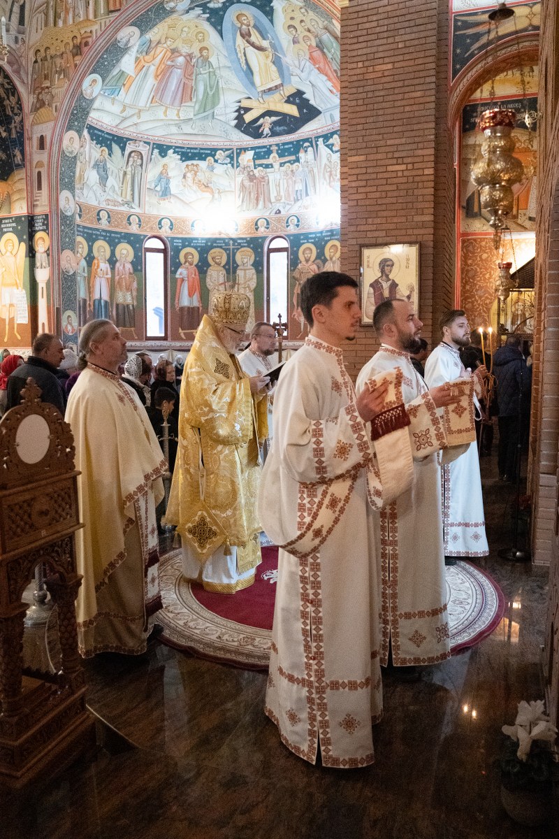 Sfânta Liturghie a fost săvârșită de Înaltpreasfintitul Părinte Calinic, Arhiepiscop al Argeșului și Muscelului, împreună cu un sobor de preoți și diaconi.