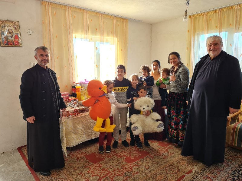 Preoții slujitori Mihai Gheorghe și Enescu Tiberiu de la parohia Rotărești, protoieria Pitești, au fost alături de o familie nevoiașă, dăruind hăinuțe, alimente și jucării, copiilor.